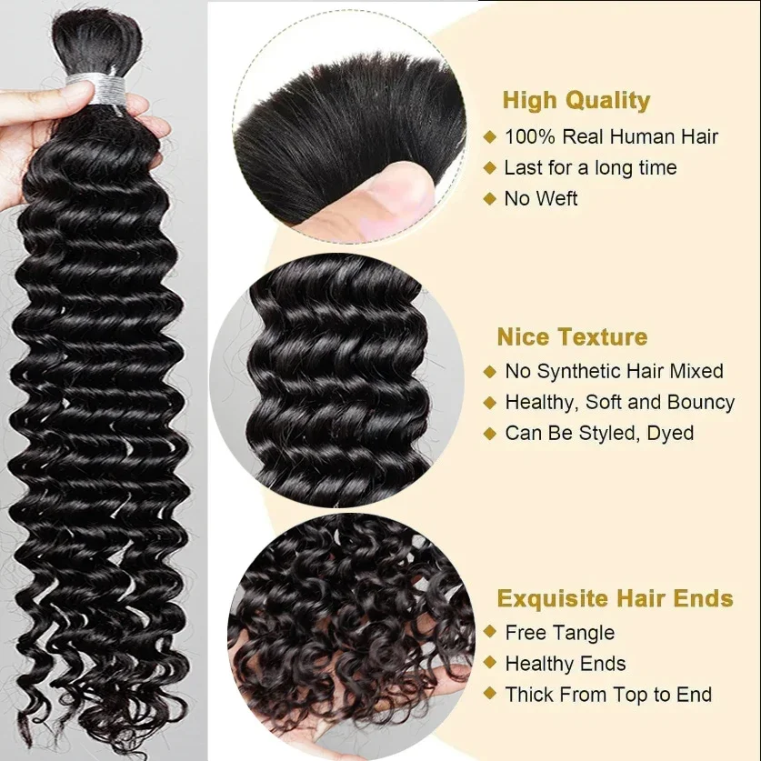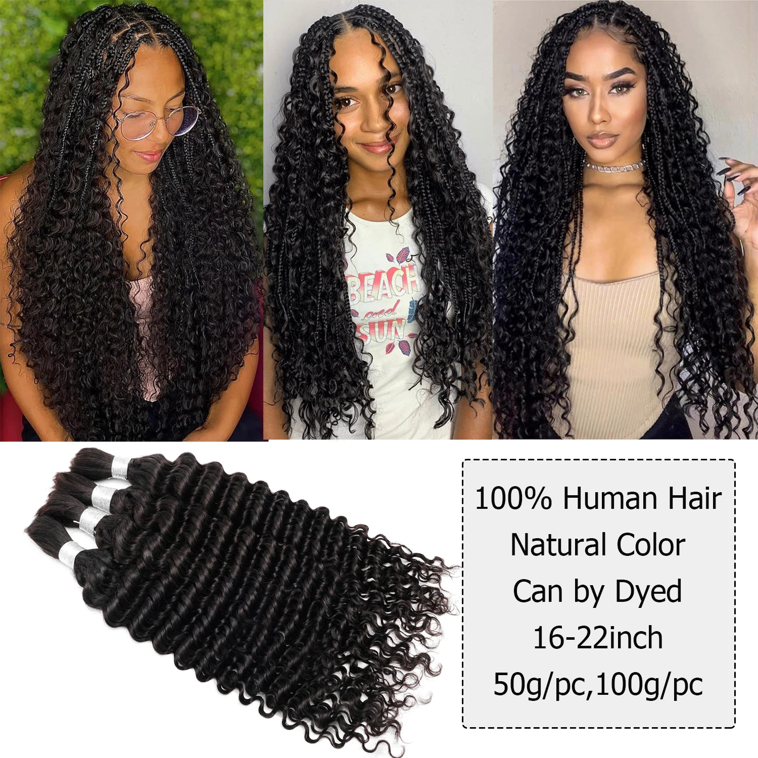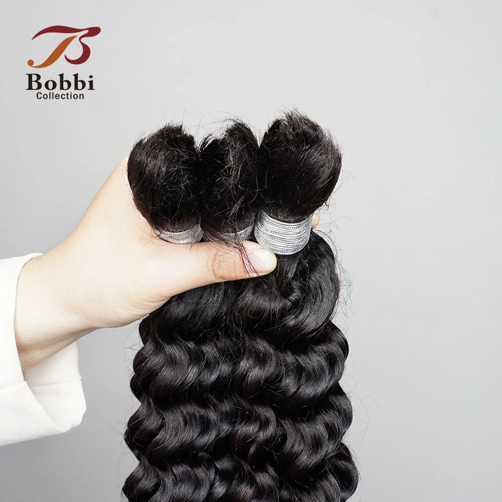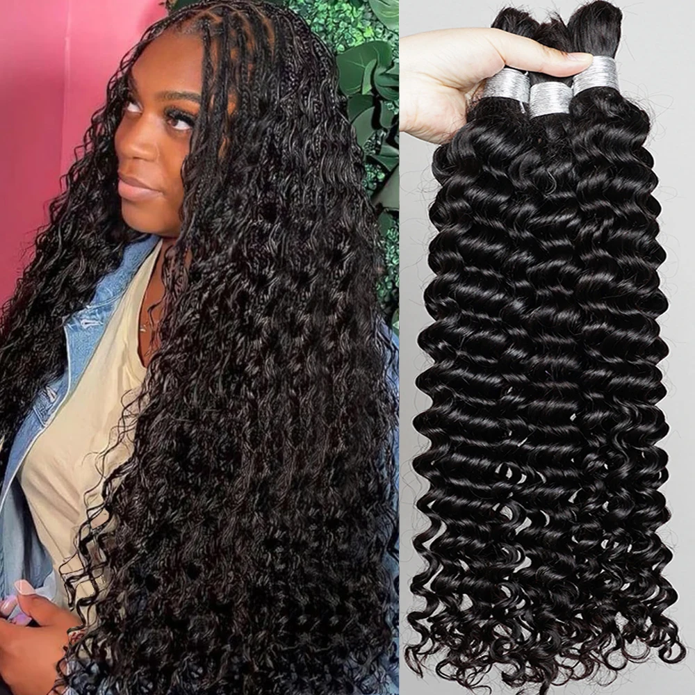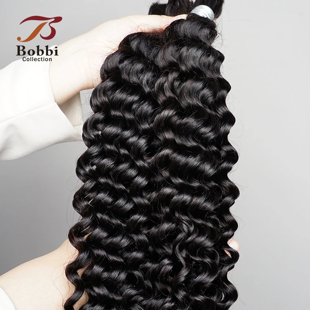 100% Human Hair Bulk for Braiding 1 Bundle Deep Wave Curly Natural Black Indian Remy Boho Braids Hair Bulk Extension Bobbi