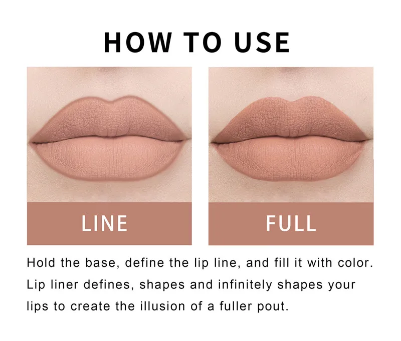 Lip liner pencil is soft, can shrink or enlarge lip shape, modify dark lip color