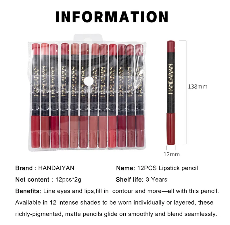 12 Colors Lip Liner Waterproof Matte Lipstick Pencil Contour Lip Makeup Sexy Red Long Lasting Moisturizer Lipliner Cosmetics
