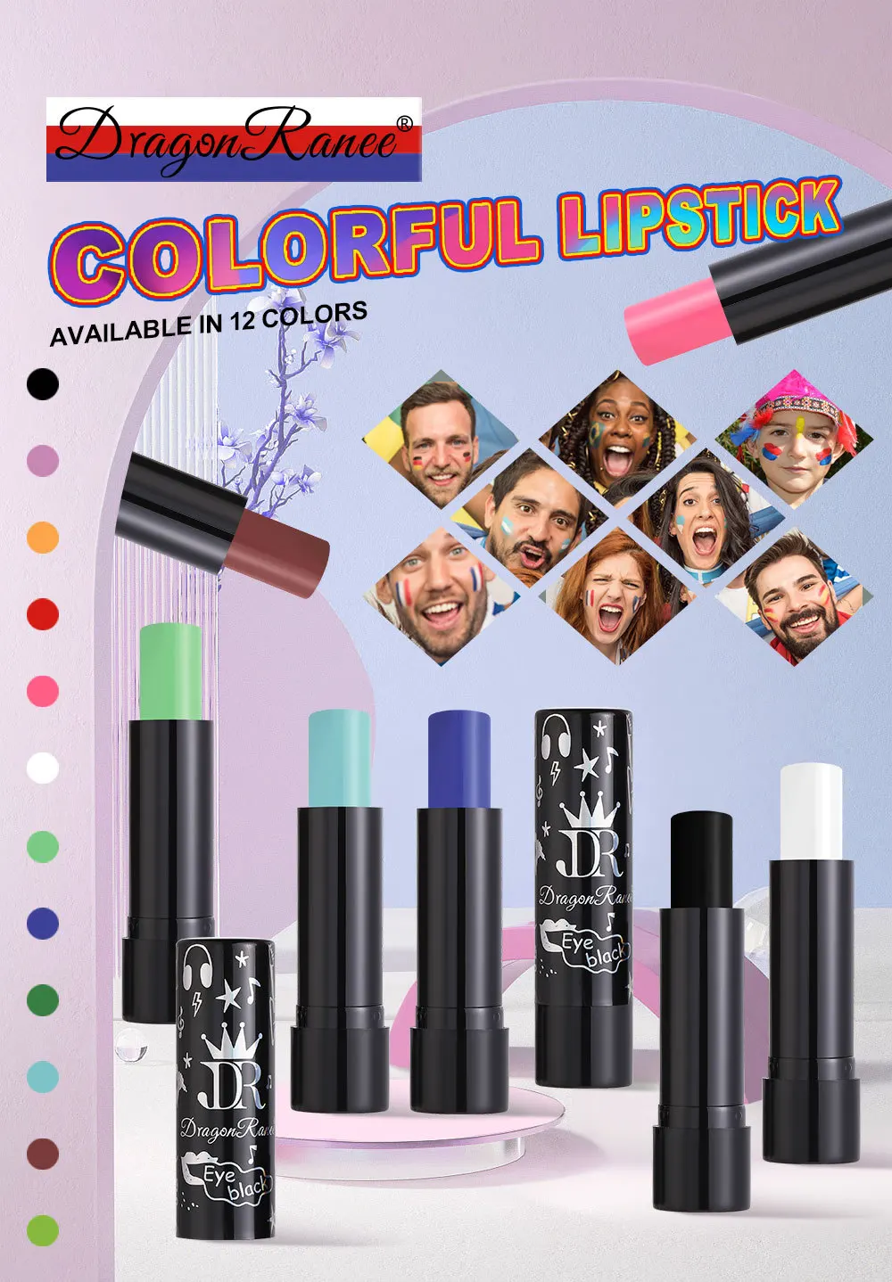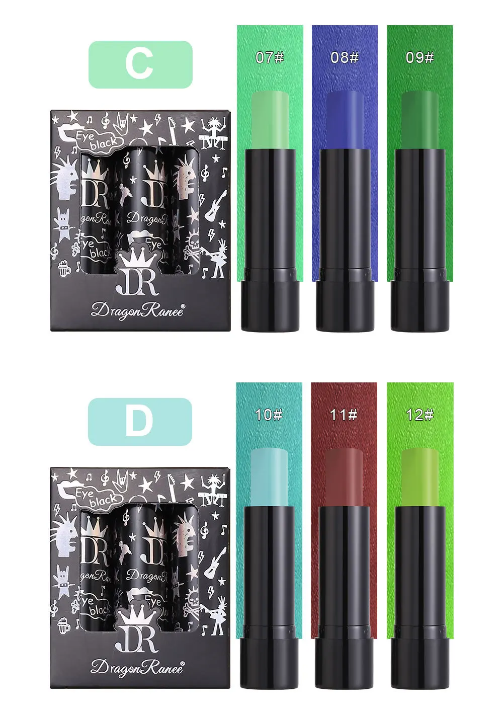 12 COLORS Matte Lipstick Long Lasting Face Painting Lipstick Purple Red Pink Green Black Lipsticks Halloween Cosmetics Make Up