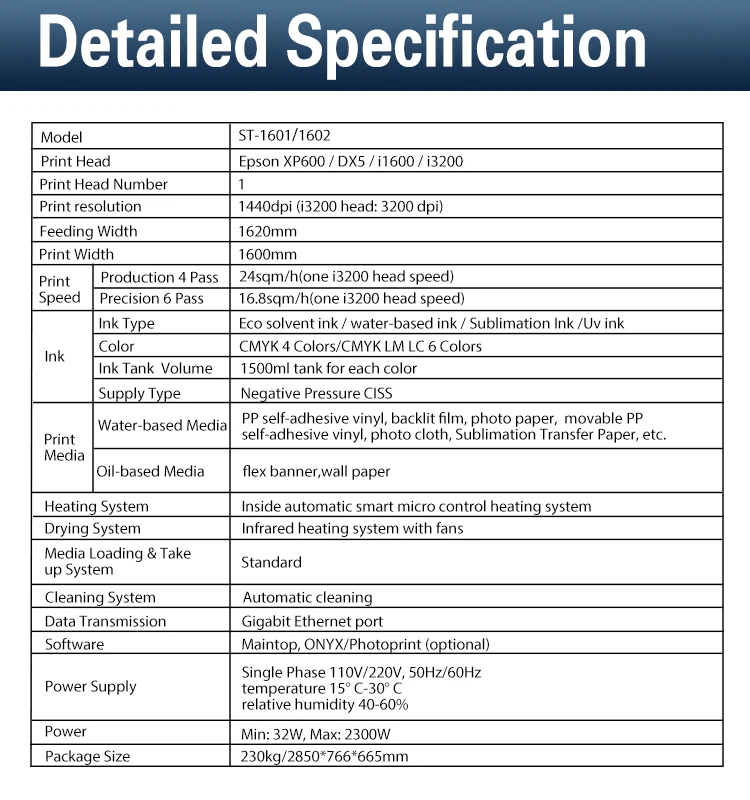 This printer is high value-performace ratio eco solvent / sublimation printers designed by Kinglocor. It is exported to more than 30 countries and regions and highly recognized by our overseas clients due to its affordable prices, fast printing speed and stable printing performance.