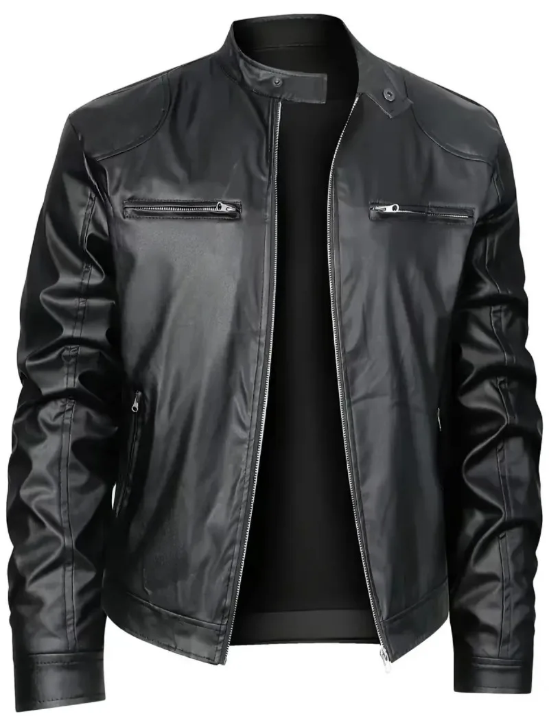 2024 High Quality Men's Slim Leather Jacket with Stand-up Collar Zipper Pocket Decorated Leather Biker Men's Coat