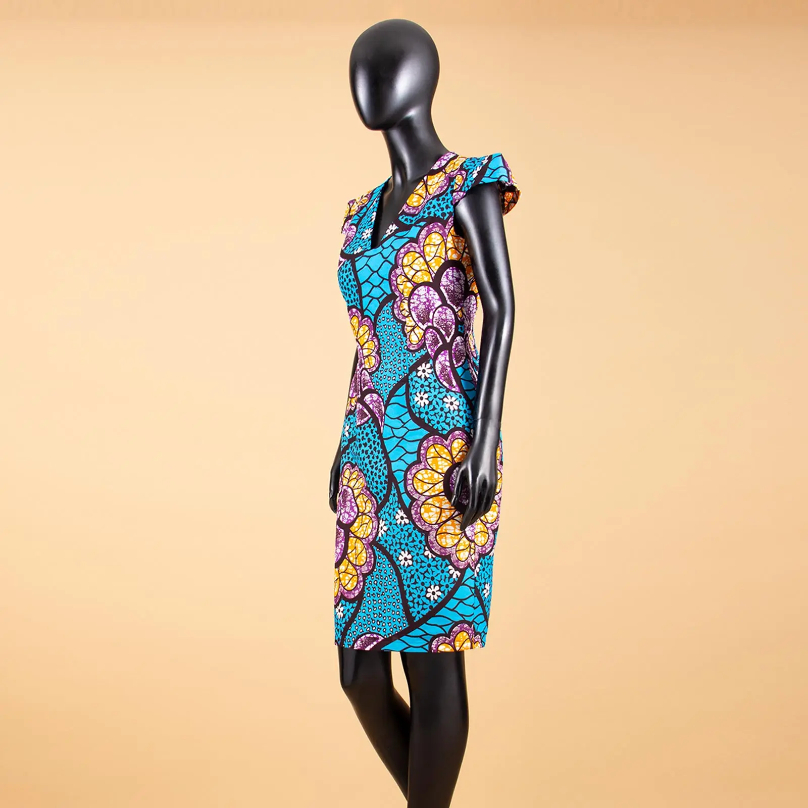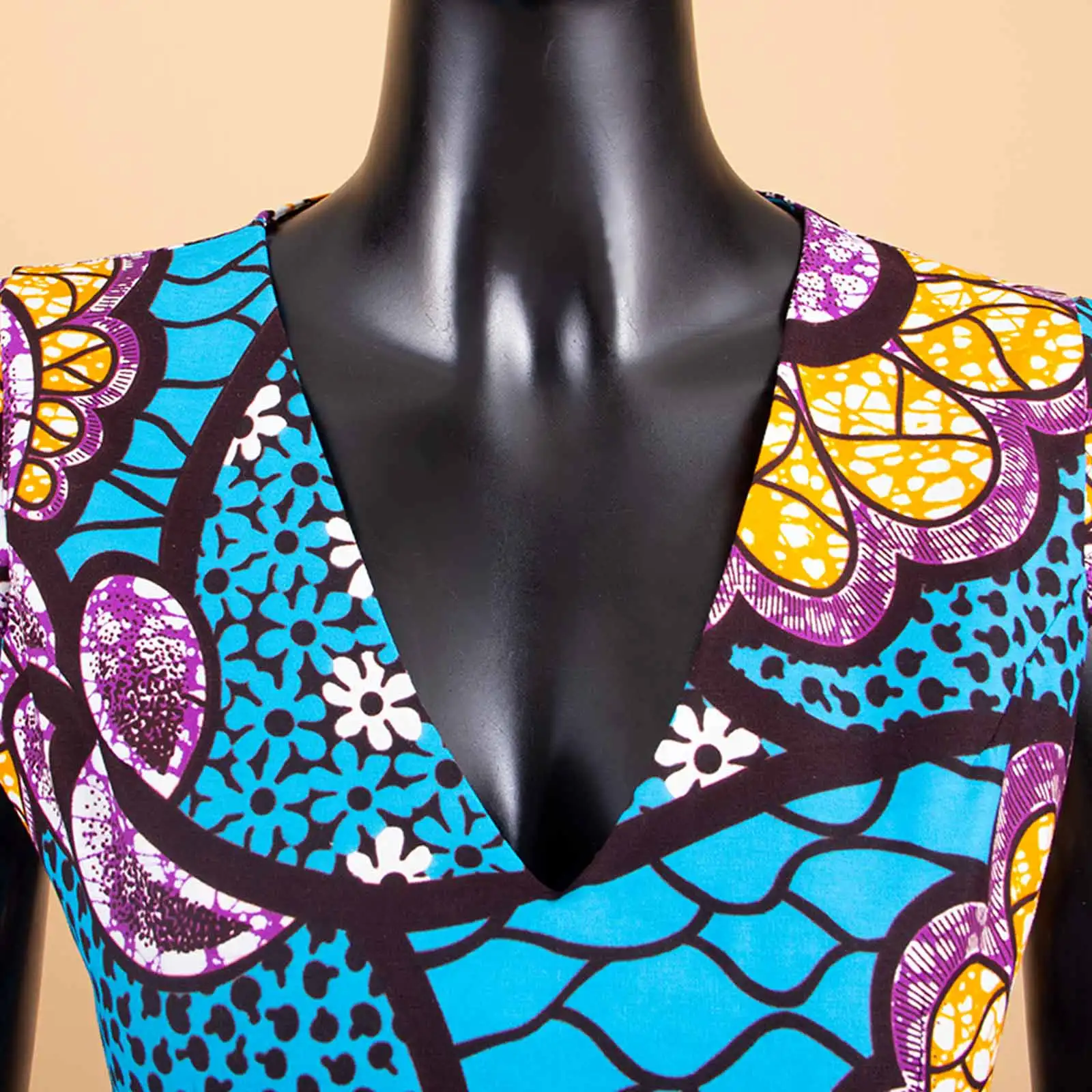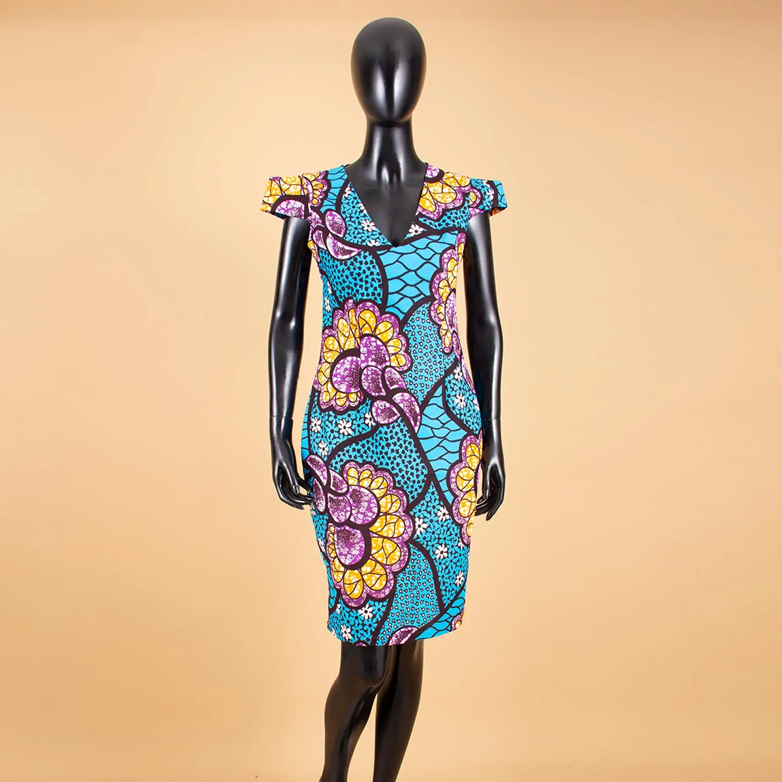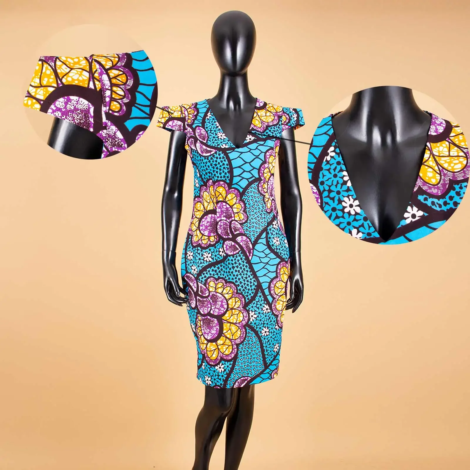 2025 African Dresses for Women Sleeveless V-neck Sexy Party Casual Print Elegant Dress for Lady Wax Attire Mini Dress A2125014
