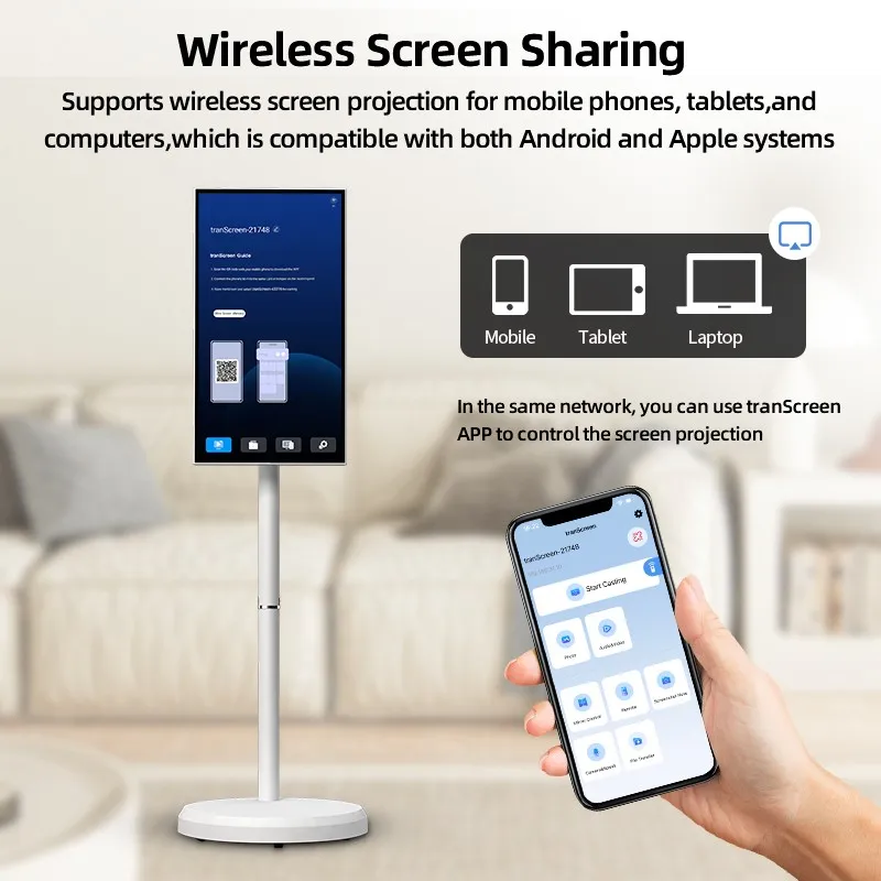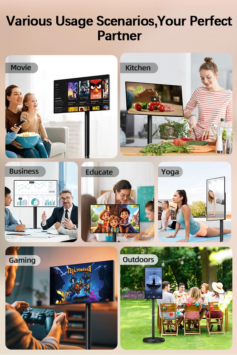 Touchscreen, Android system, built-in battery, easy to move — perfect for home, school, office, or retail.Your smart, portable screen starts here.