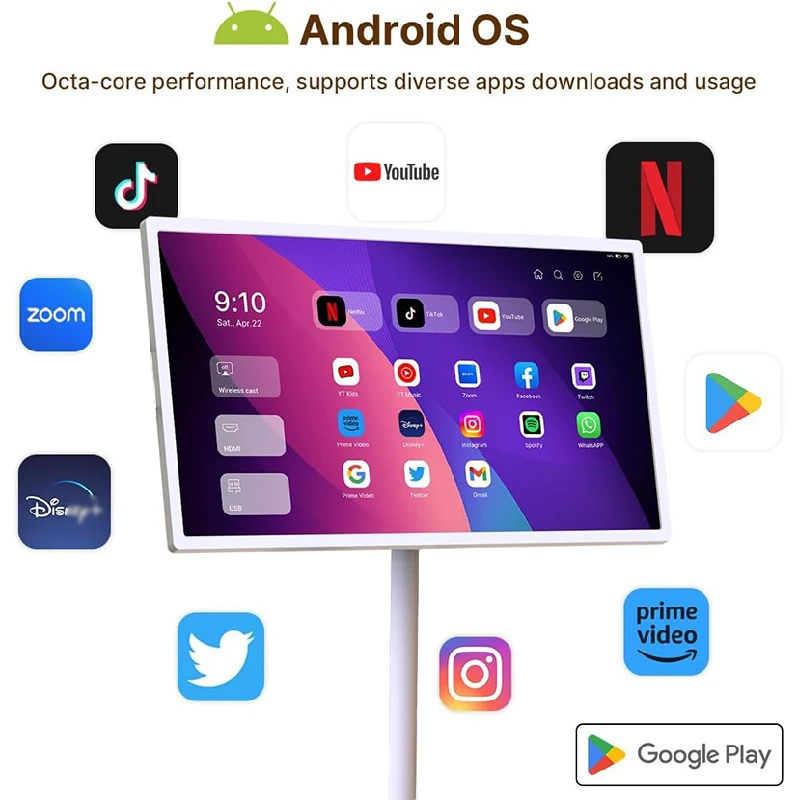 21.5 Inch Smart Display Outdoor Movable Mobile IPTV TV with Lcd Touch Screen Digital Signage Portable Smart Television