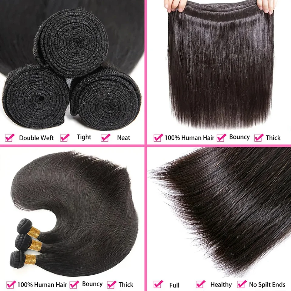 30 40 Inch Bone Straight Human Hair Weave Bundle Raw Virgin Unprocessed 100% Human Hair Extensions 1/3/4 Pcs Bundles Double Weft