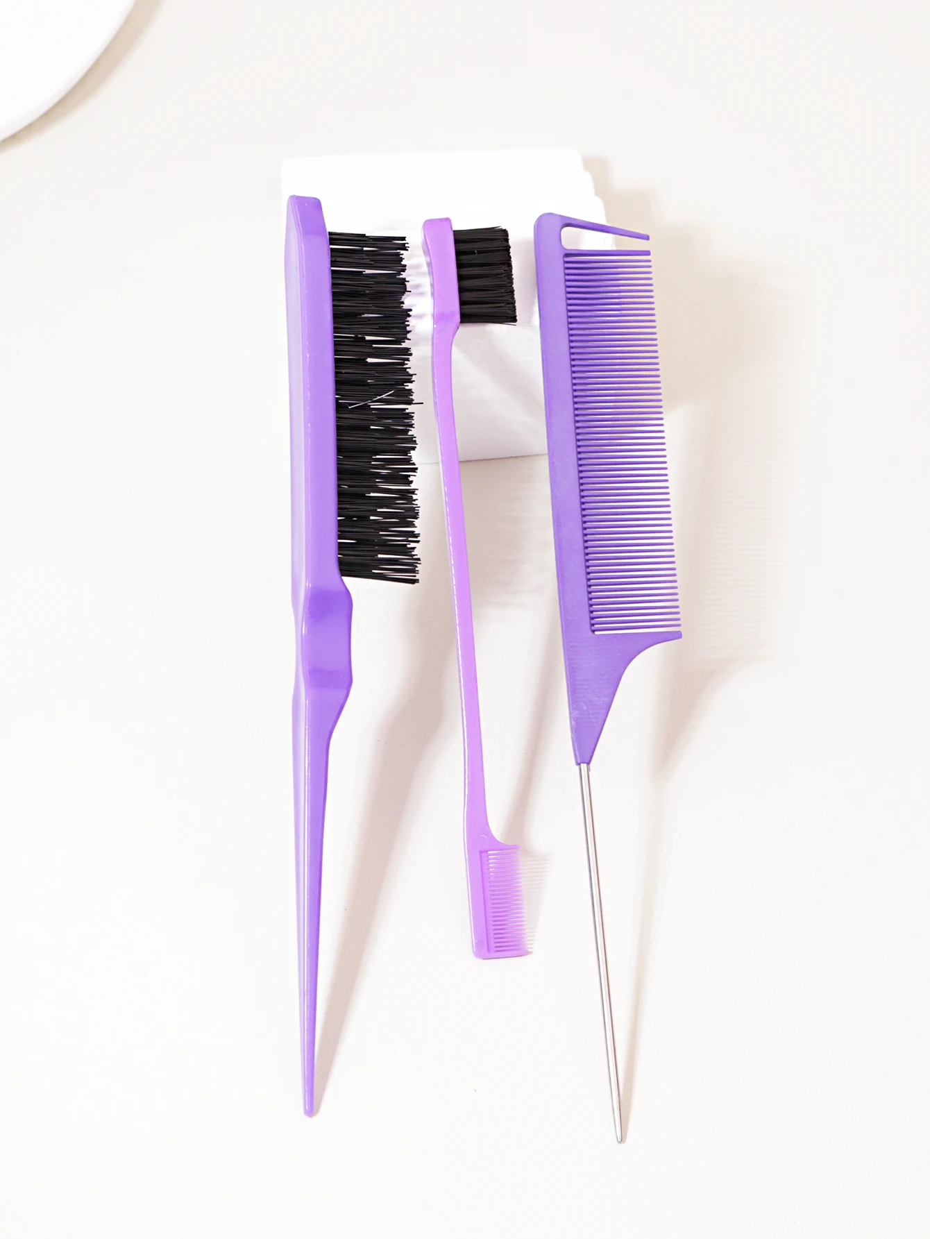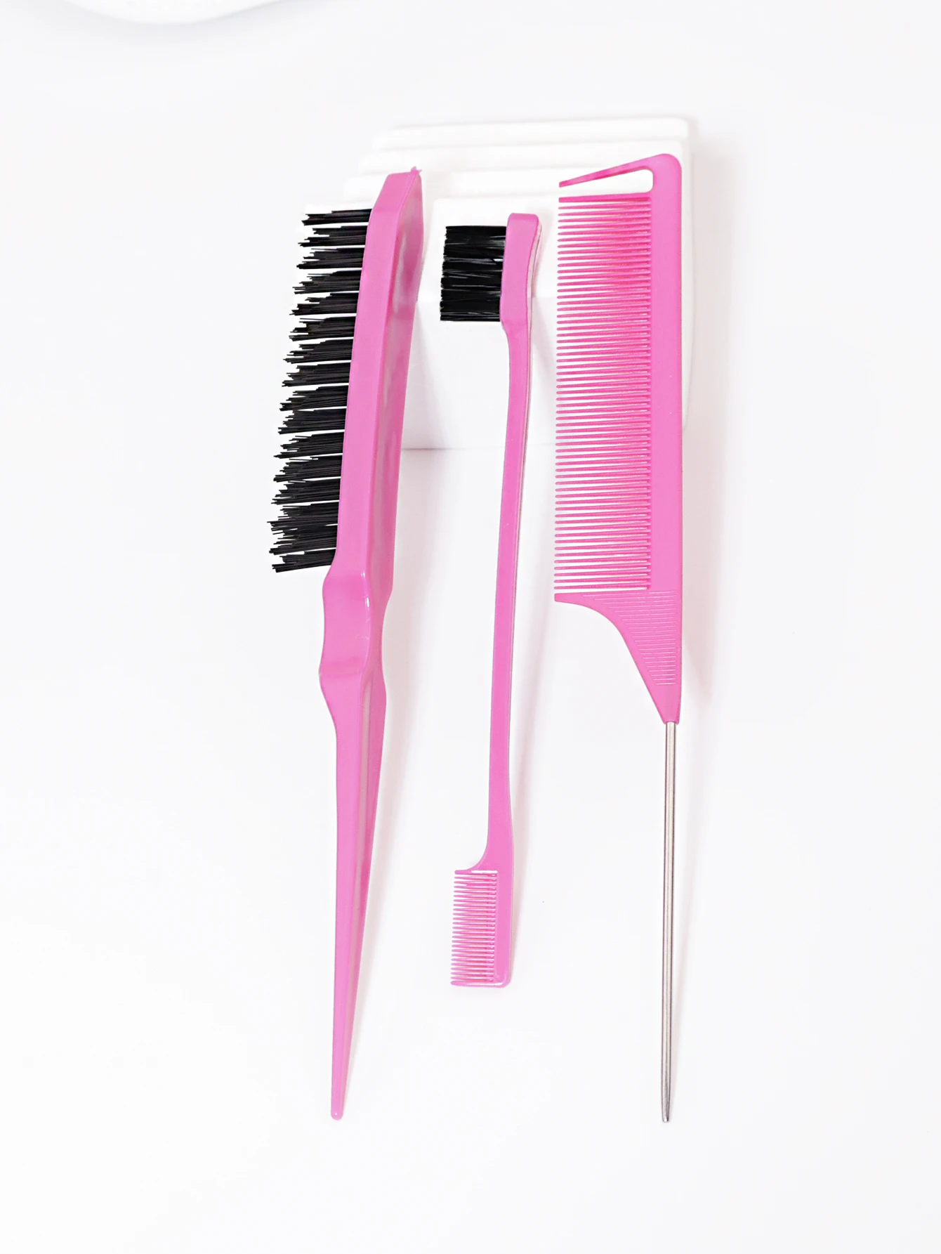 3pcs hair styling comb set with triple tear hair brush,mouse tail comb,edge hair brush,styling comb salon tool