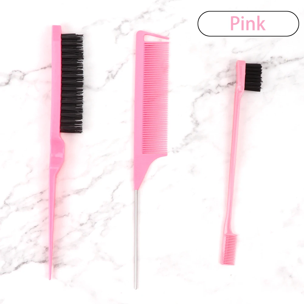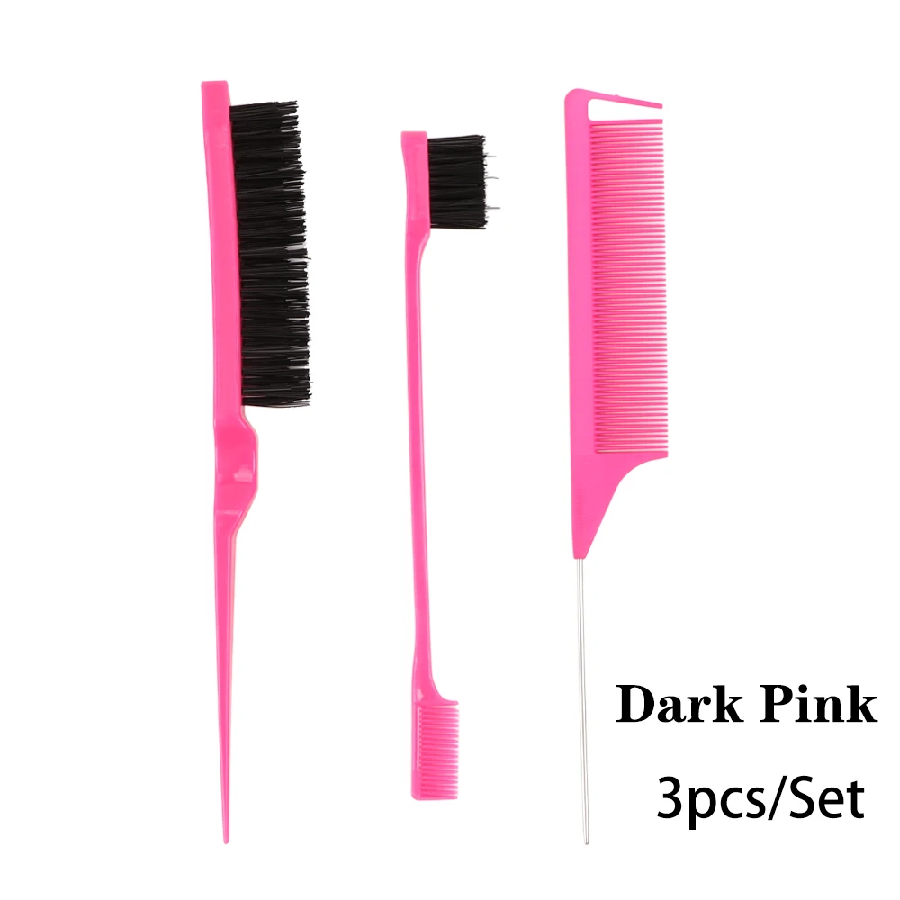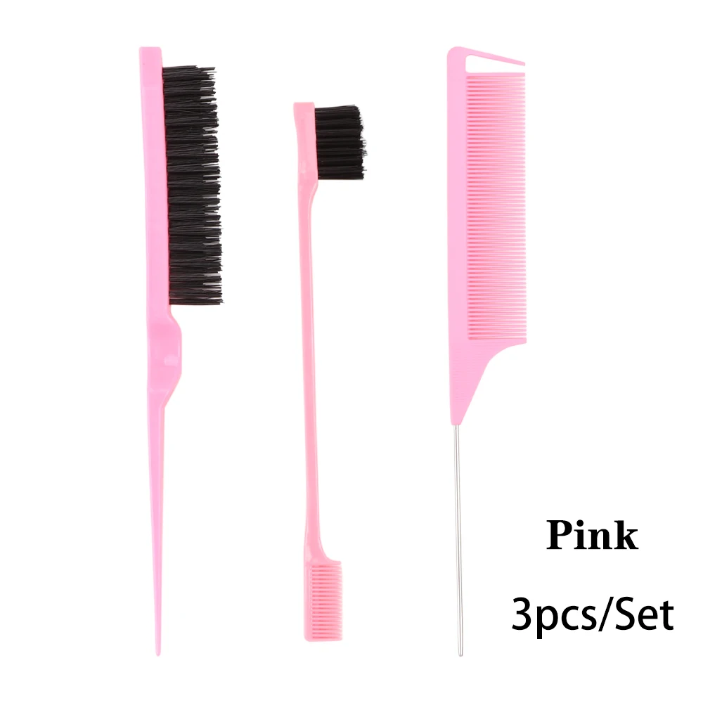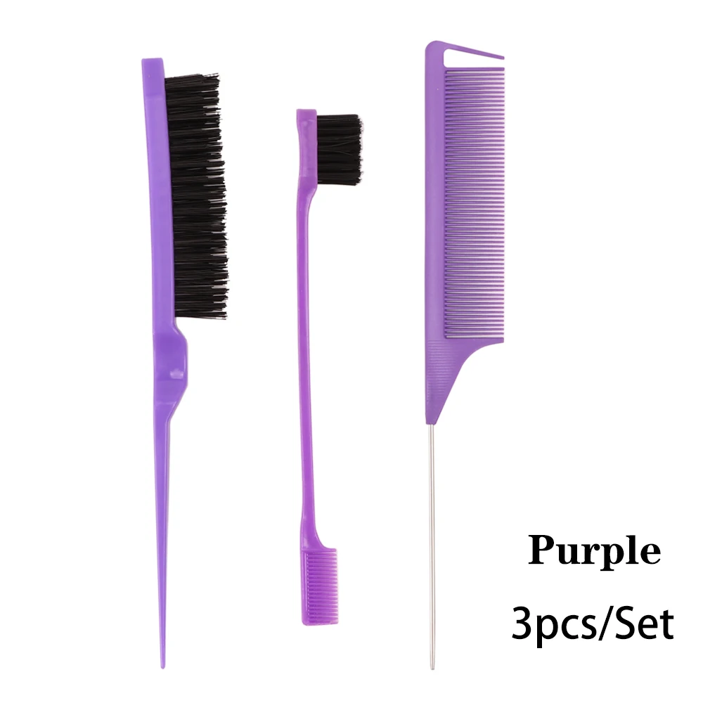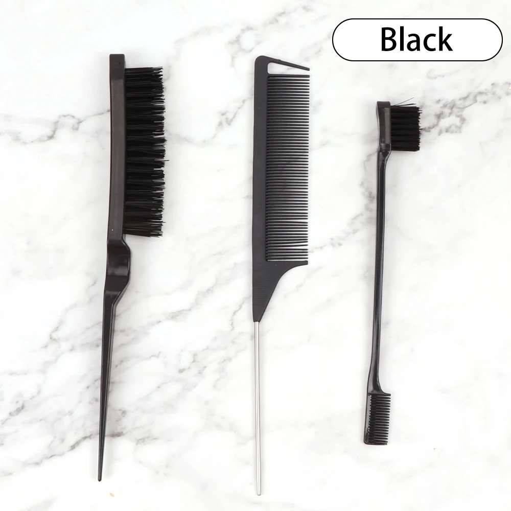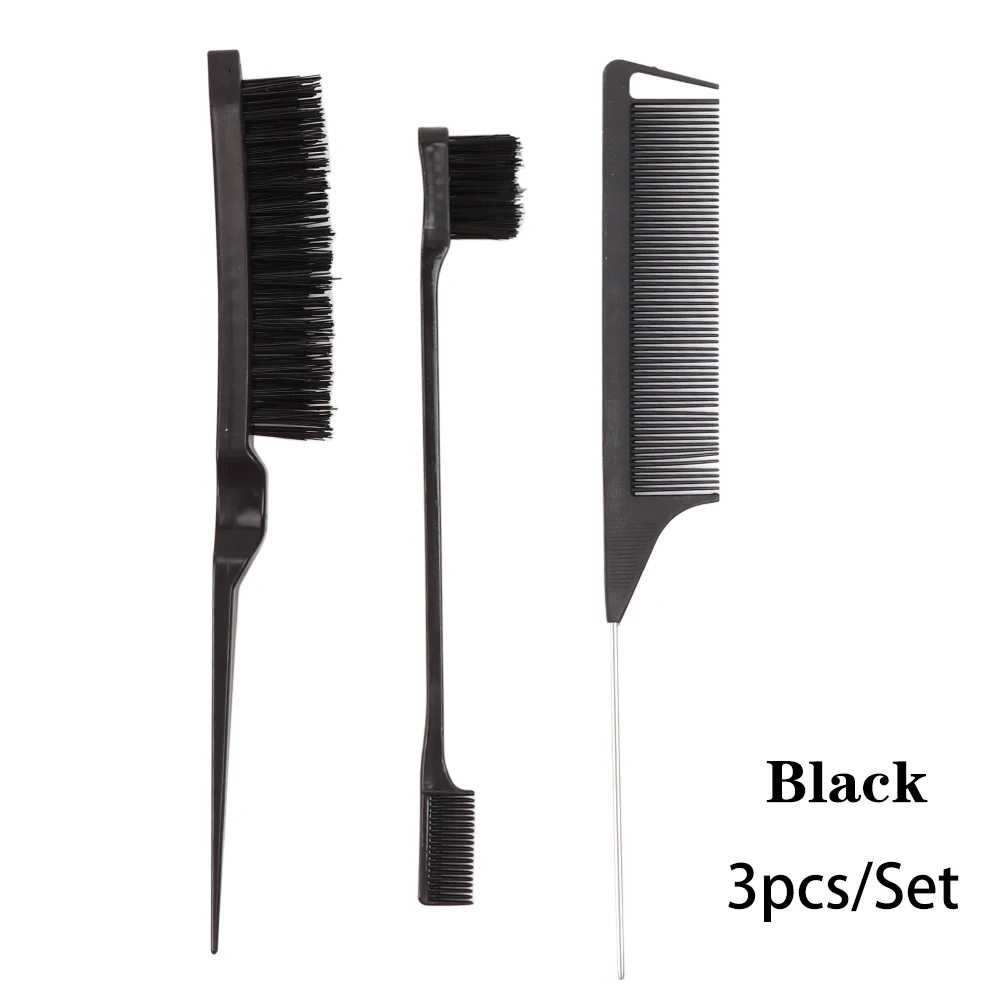 3Pcs Hair Styling Tools Edge Brush Rat Tail Comb Bristle Triple Row Styling Comb For Hair Styling Separating Combing & Coloring