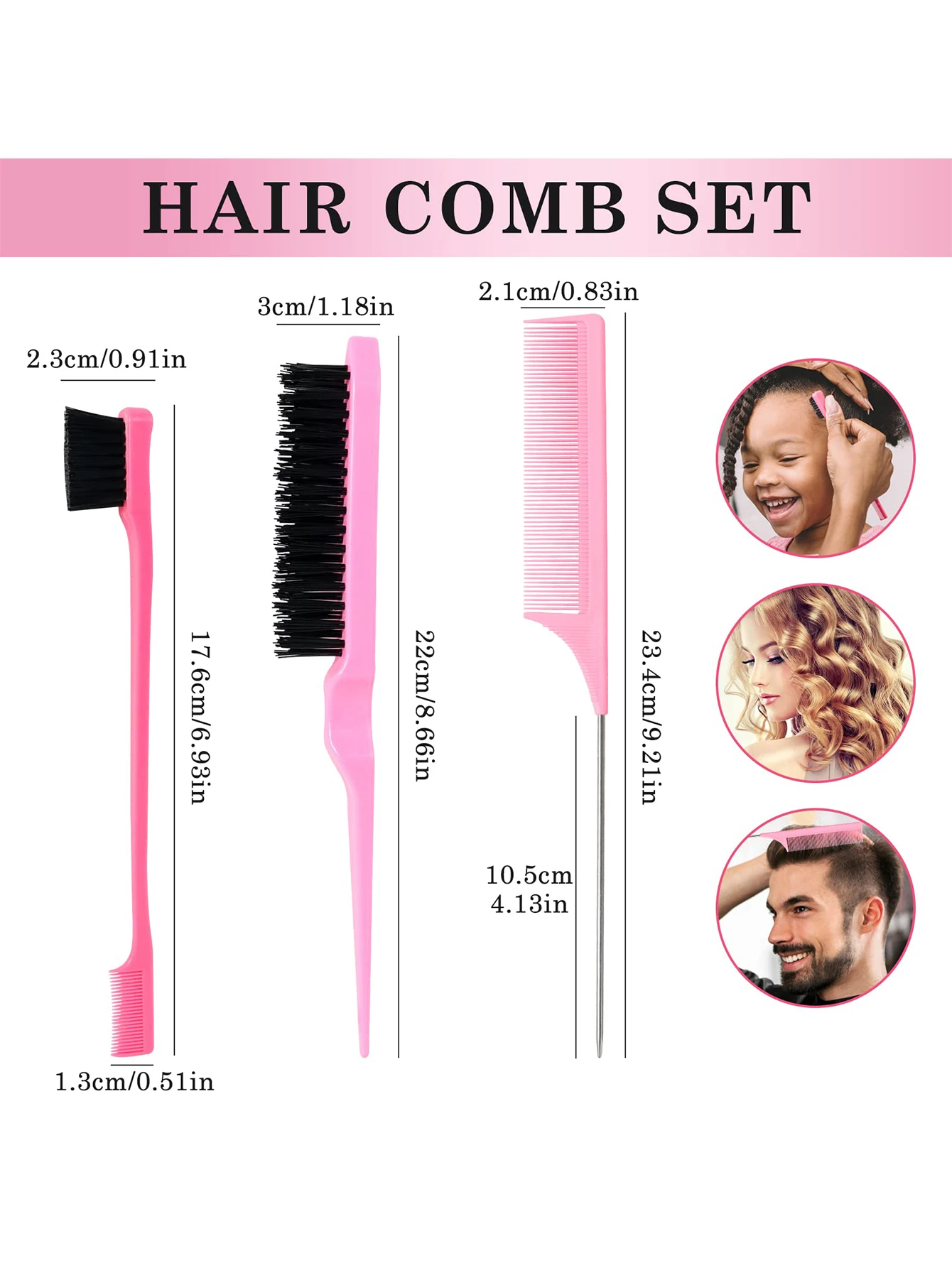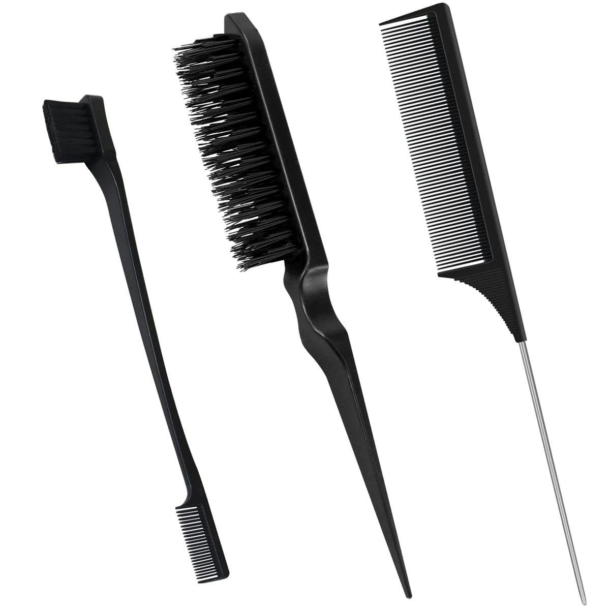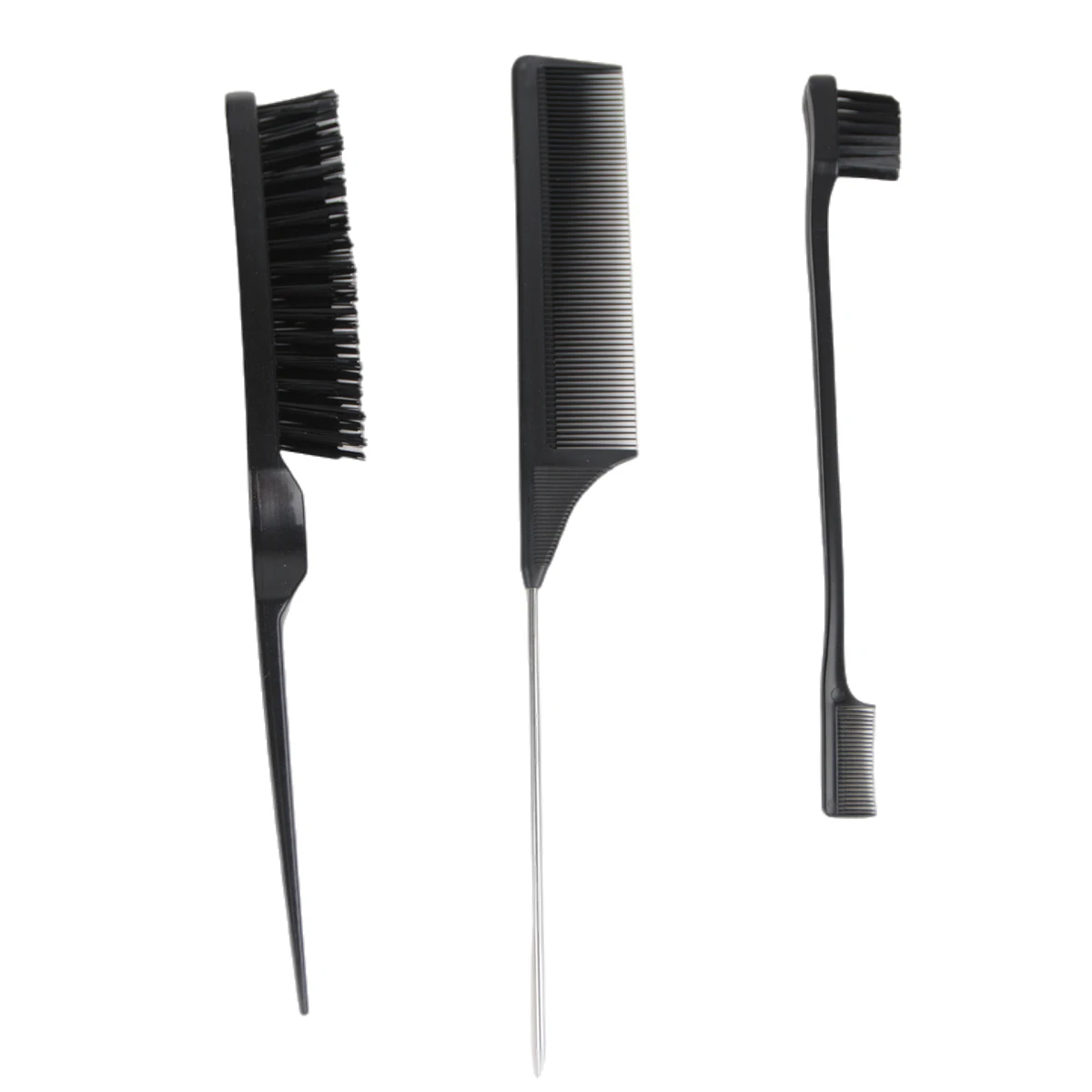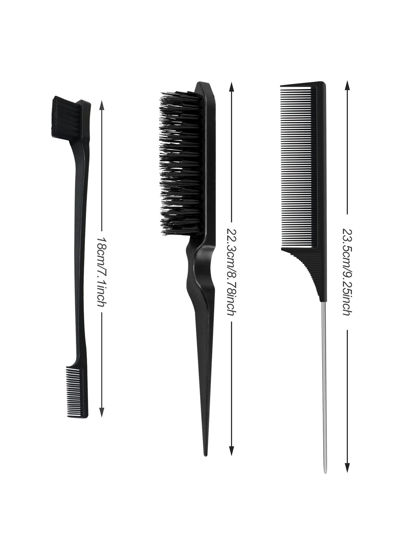 3Pcs Pro Styling Brush Kit - Teasing/Edge/Braiding Combs Set with Rat Tail & Loop Tools for Slick Back Hair & Updos