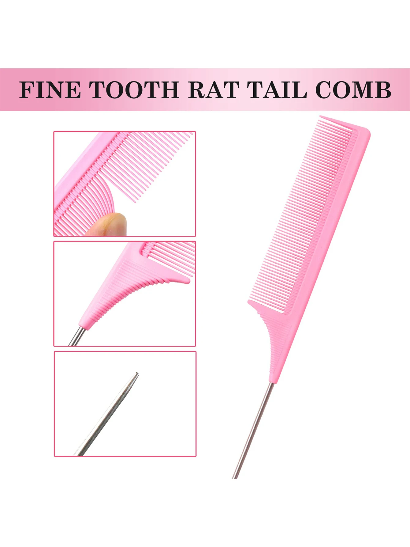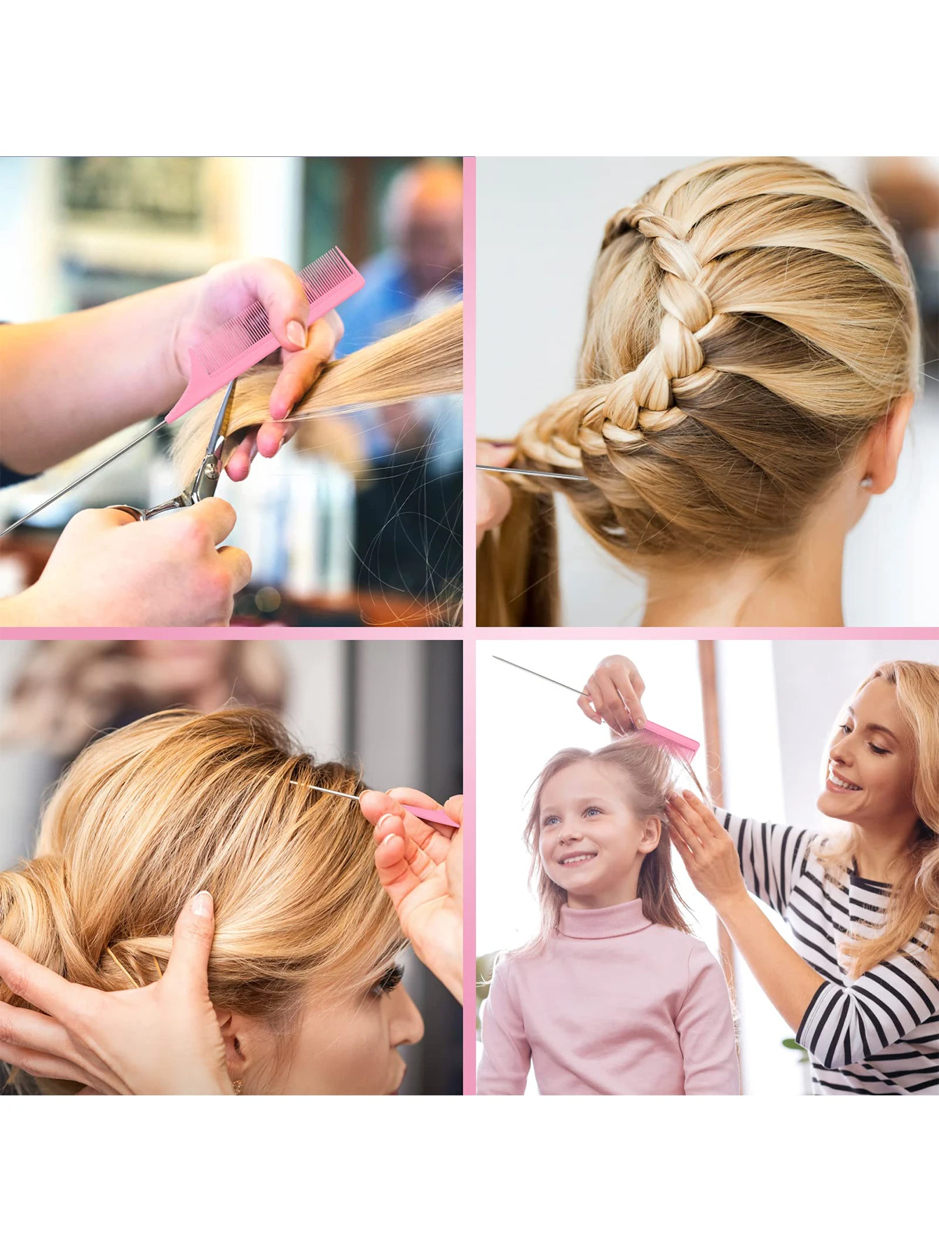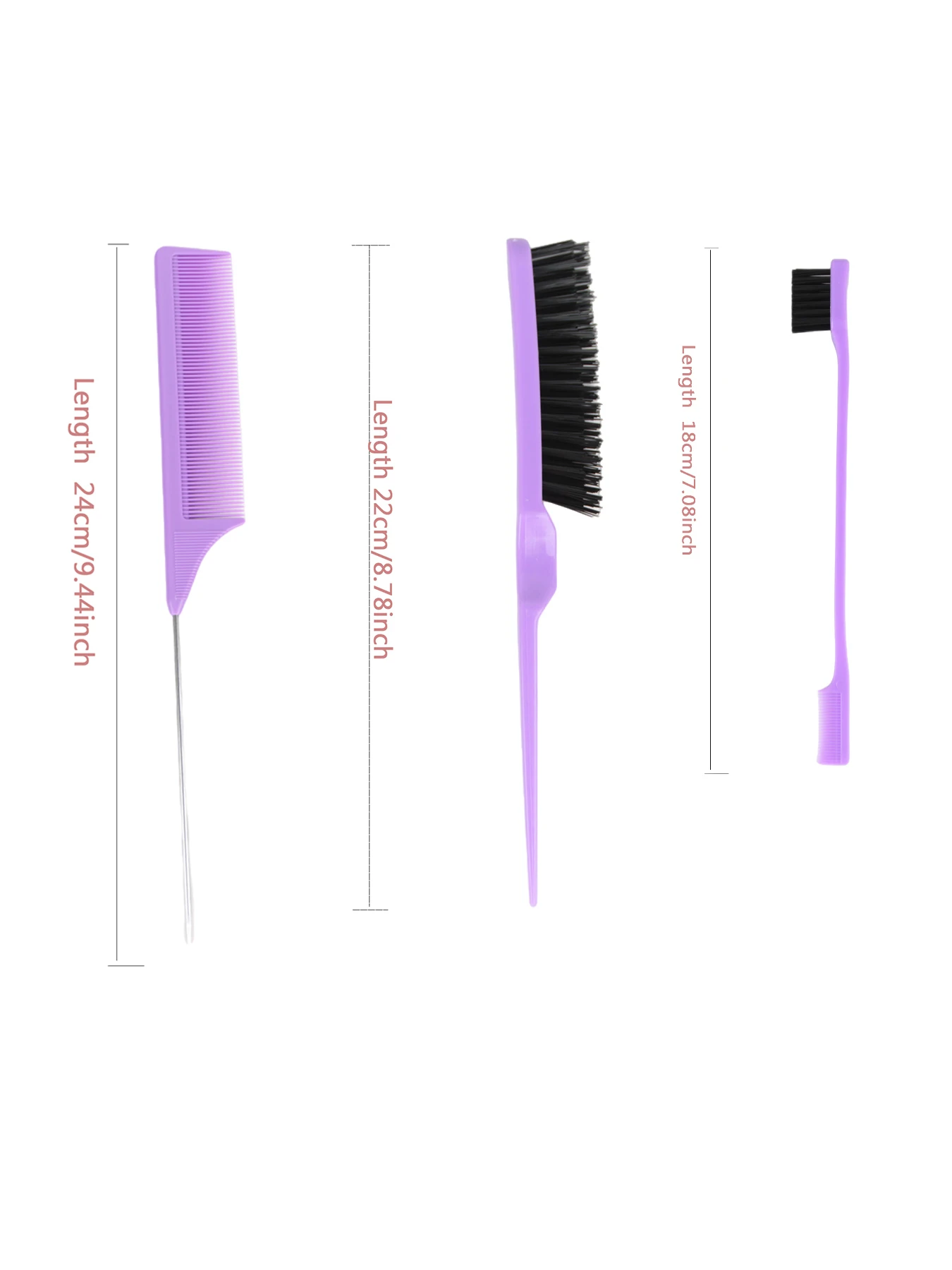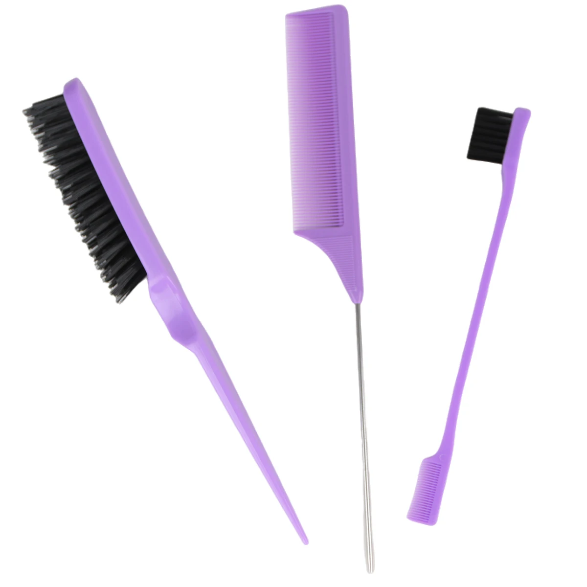 3Pcs Pro Styling Brush Kit - Teasing/Edge/Braiding Combs Set with Rat Tail & Loop Tools for Slick Back Hair & Updos