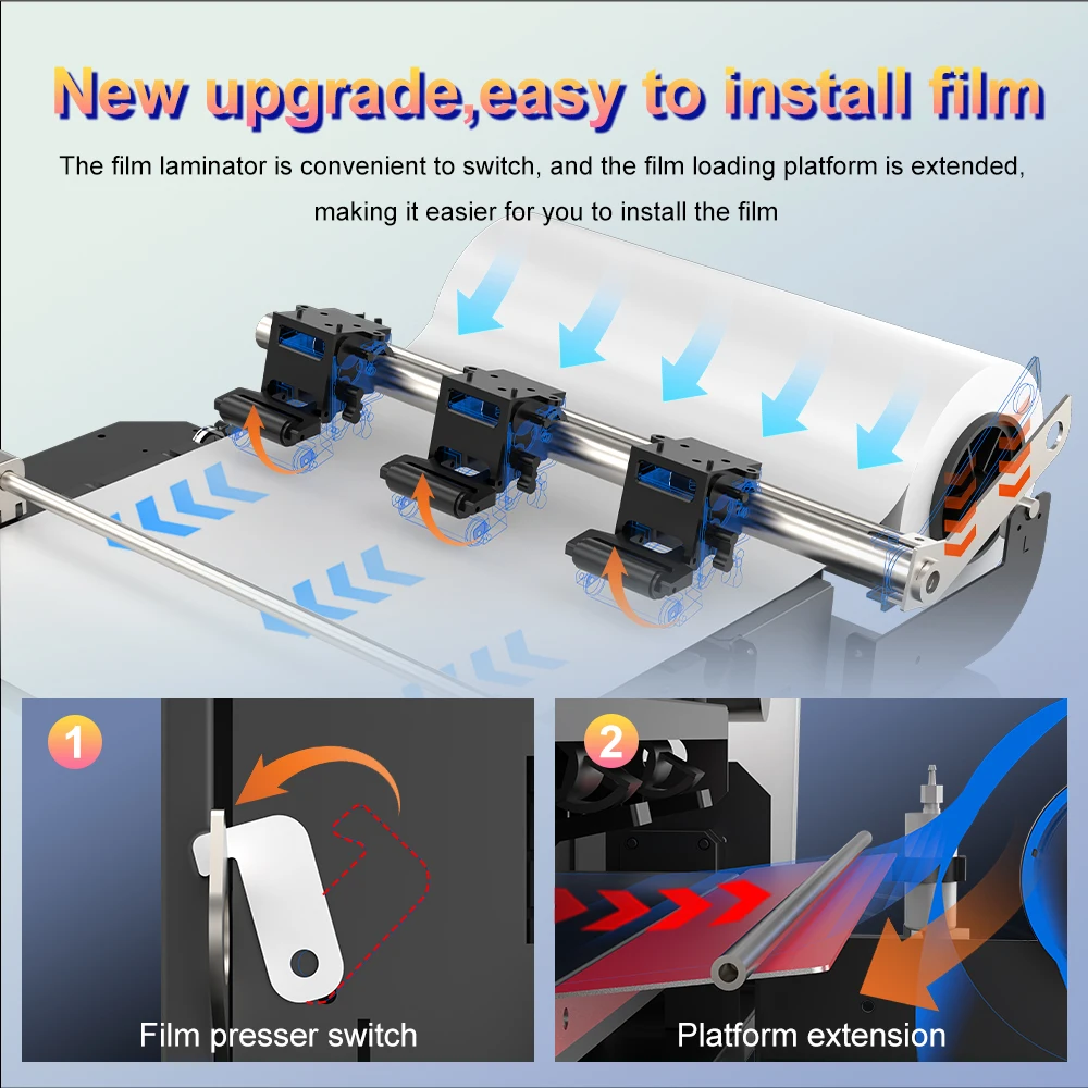 The film laminator is convenient to switch, and the film loading platform is extended, making it easier for you to install the film