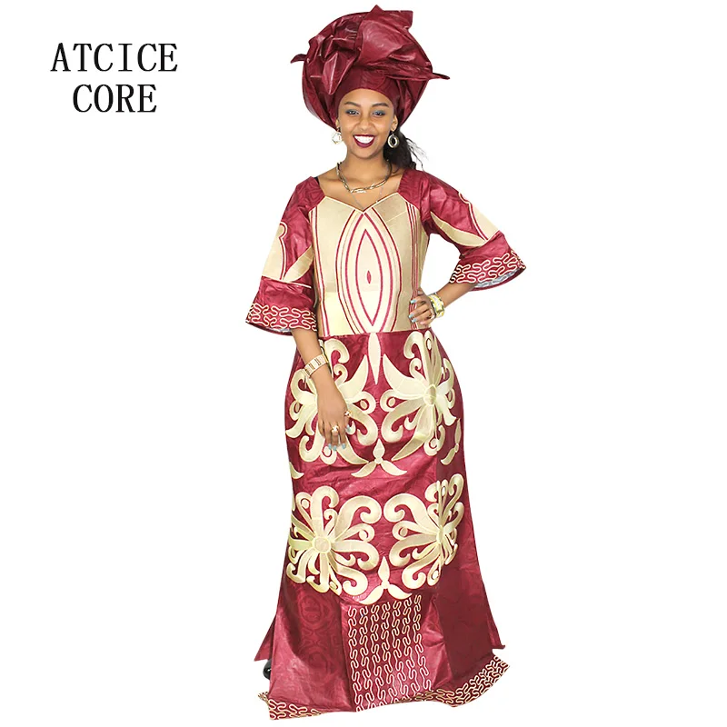 African Attire For Women Bazin Riche Embroidery Plus Size Elegant Party Church Dress