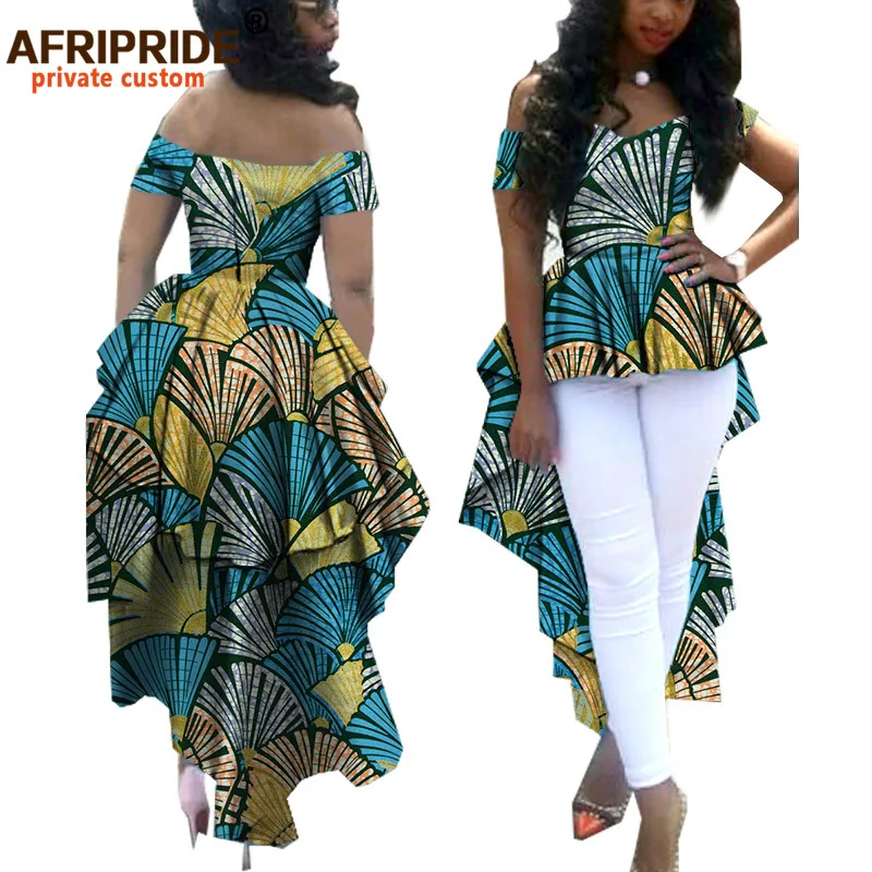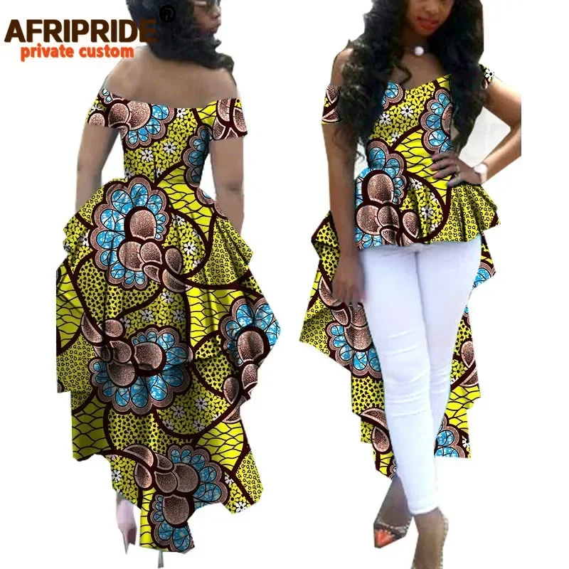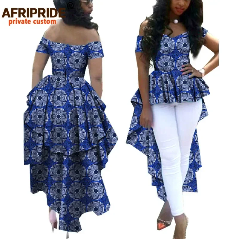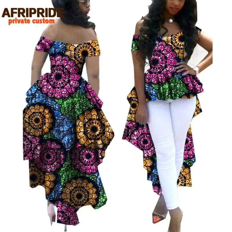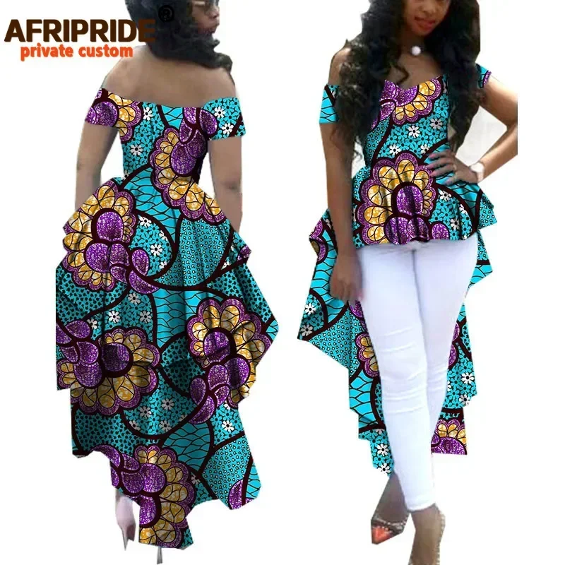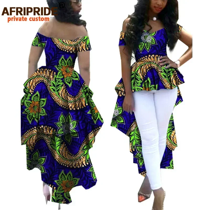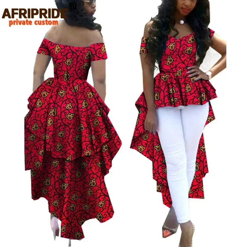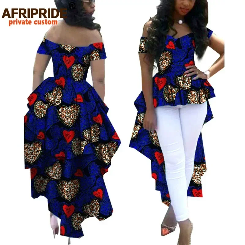 African Clothes for Women AFRIPRIDE Ankara V-neck Off Shoulder Coat with Dashiki Double Ankle-length Back Plus Size A722412