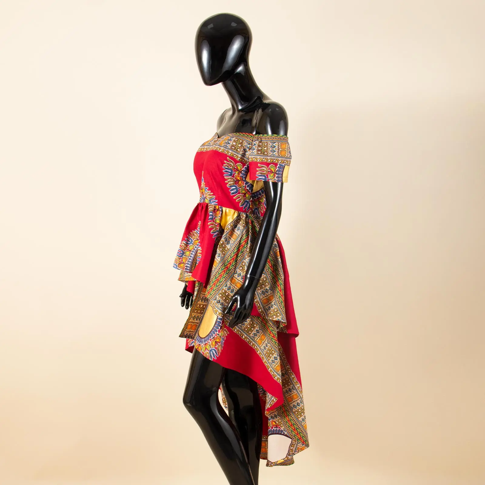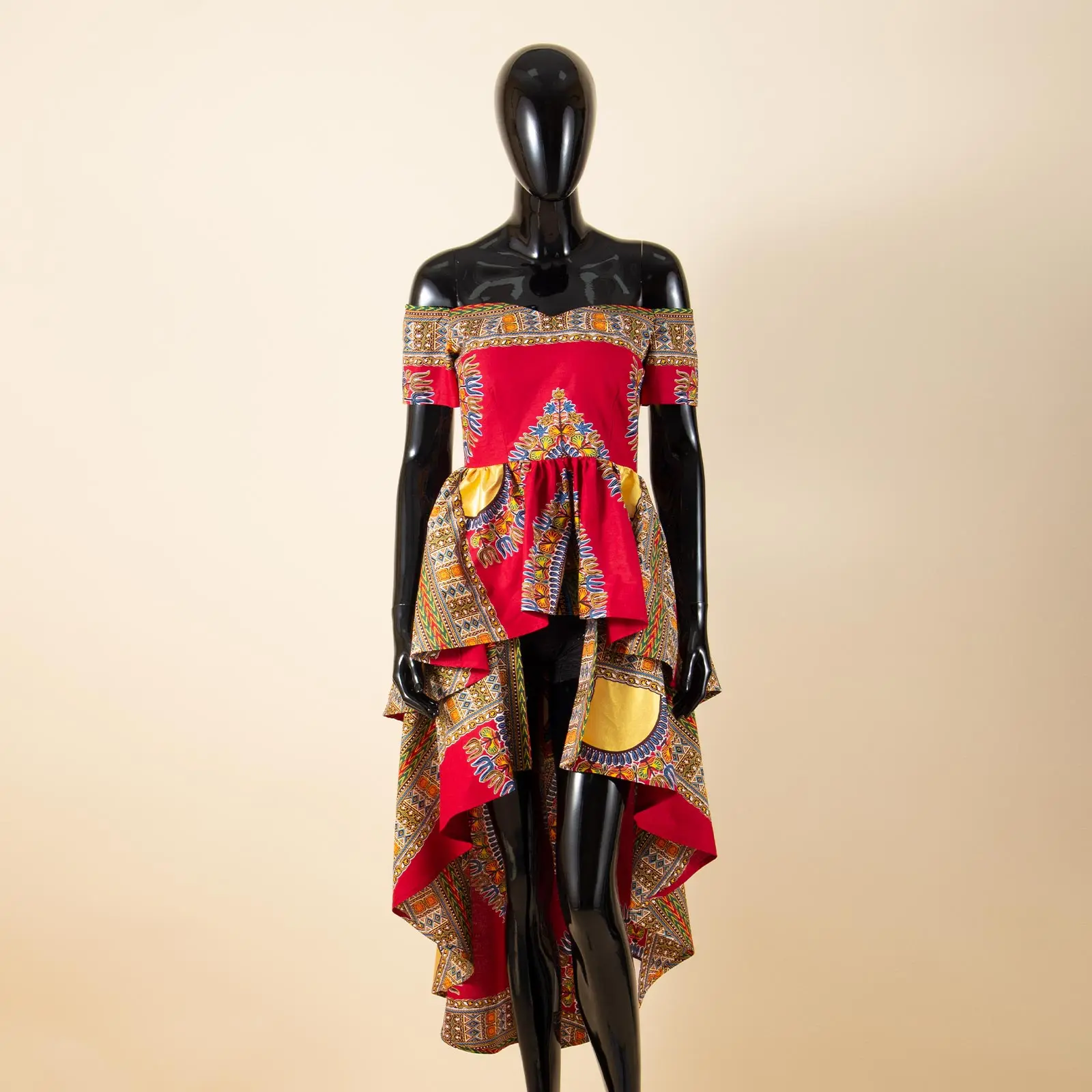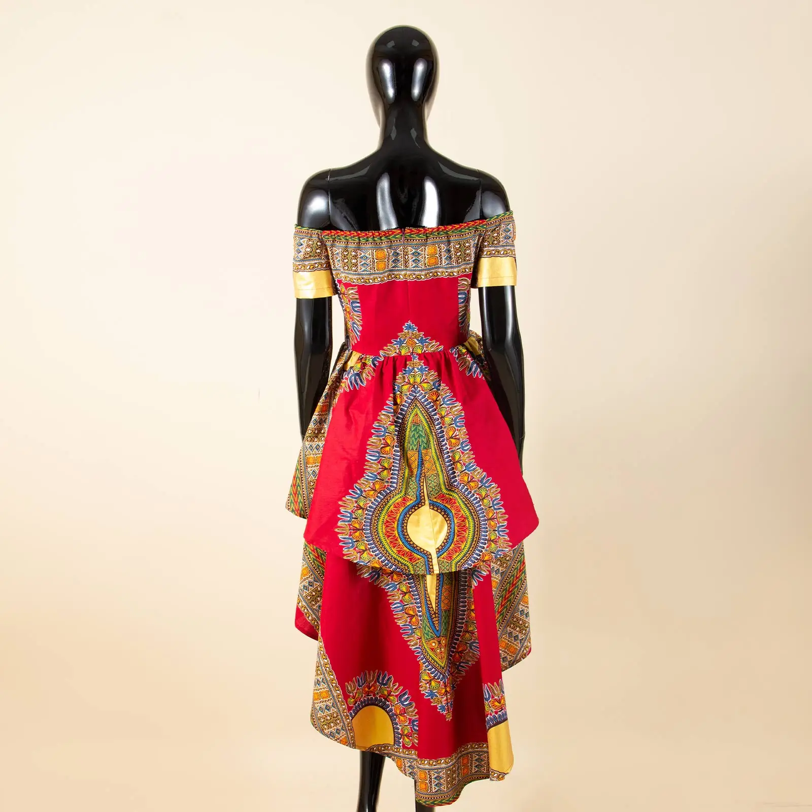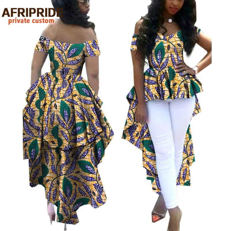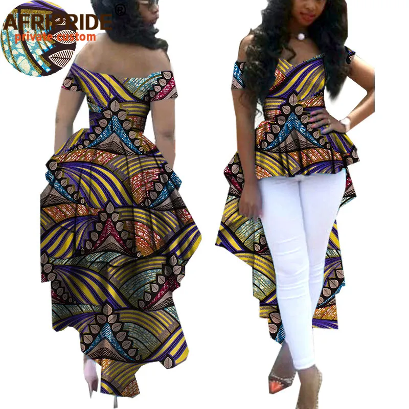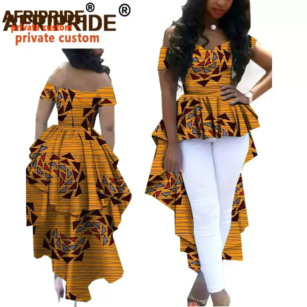 African Clothes for Women AFRIPRIDE Ankara V-neck Off Shoulder Coat with Dashiki Double Ankle-length Back Plus Size A722412