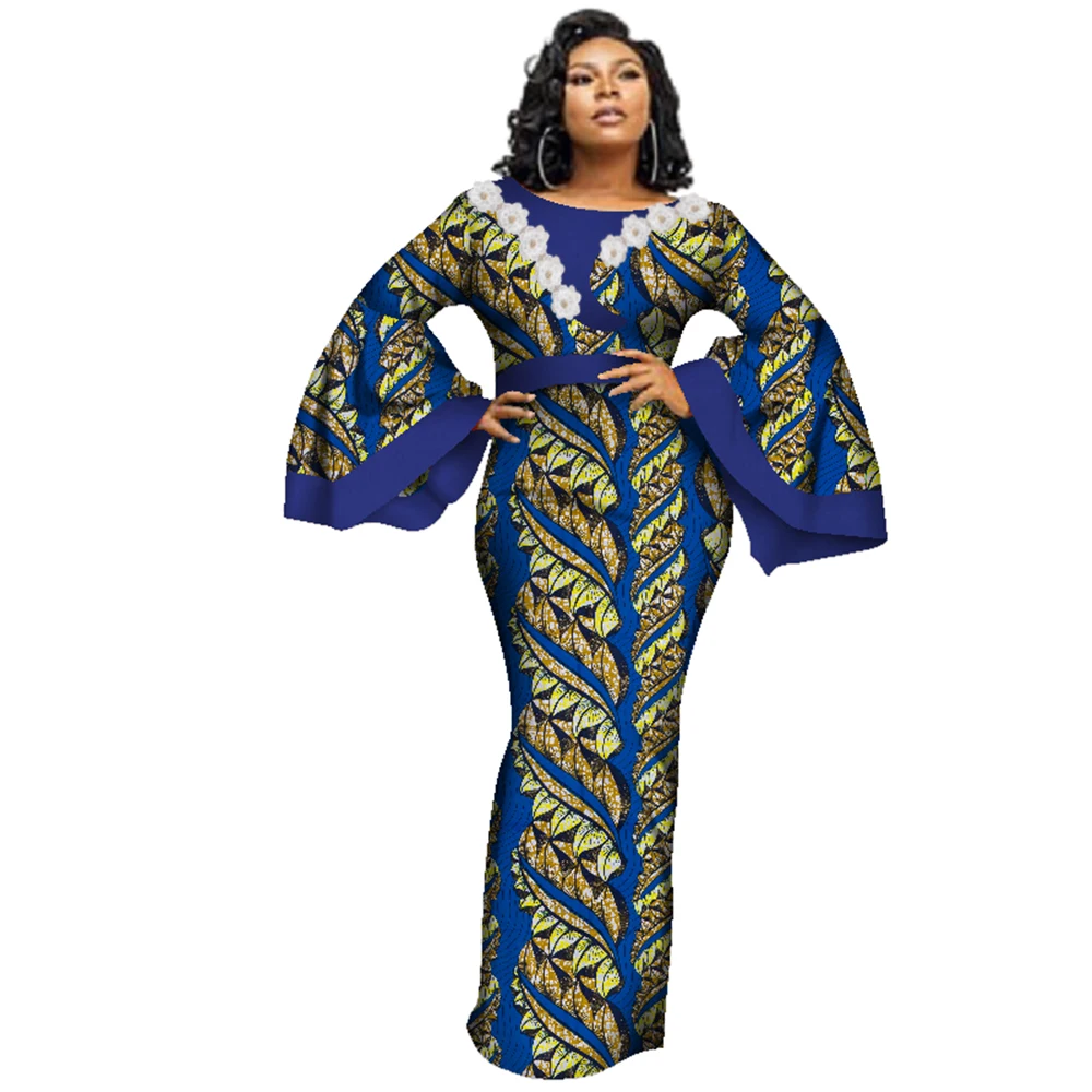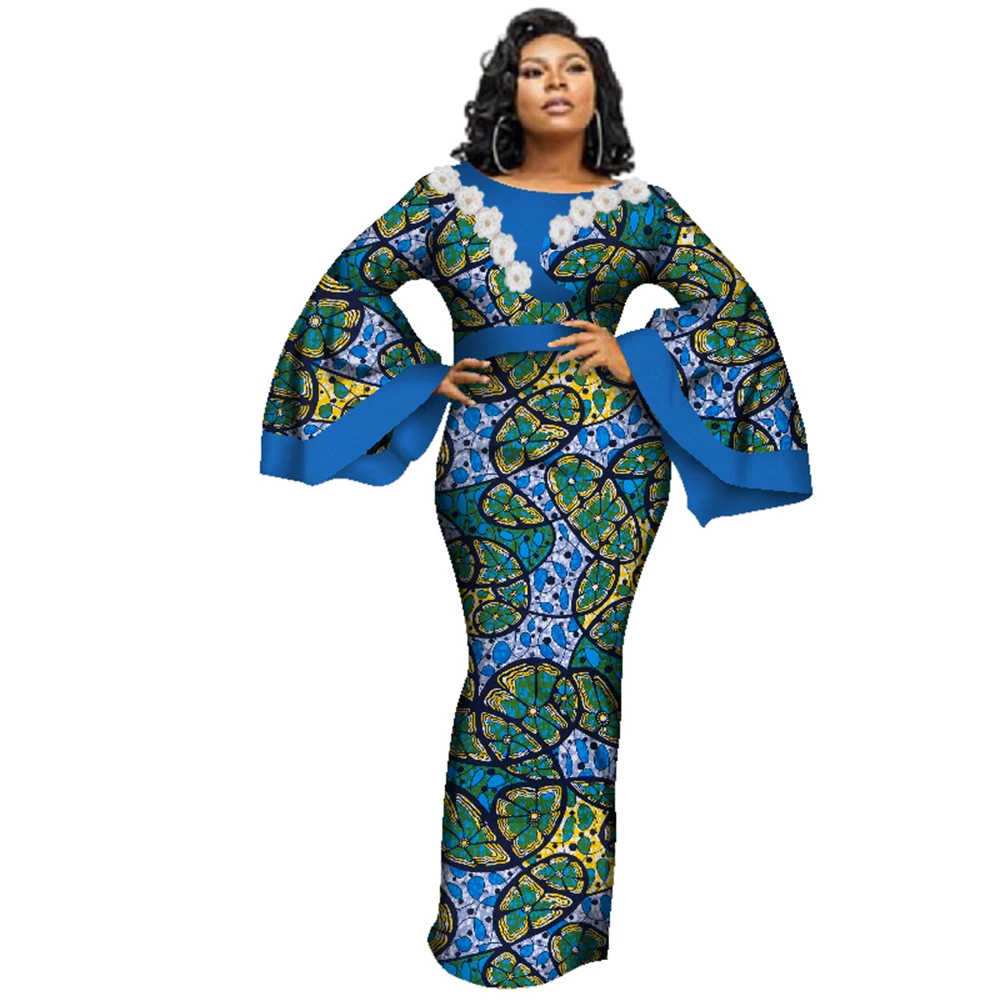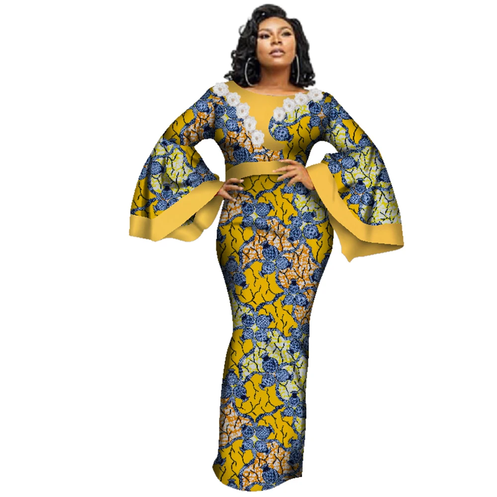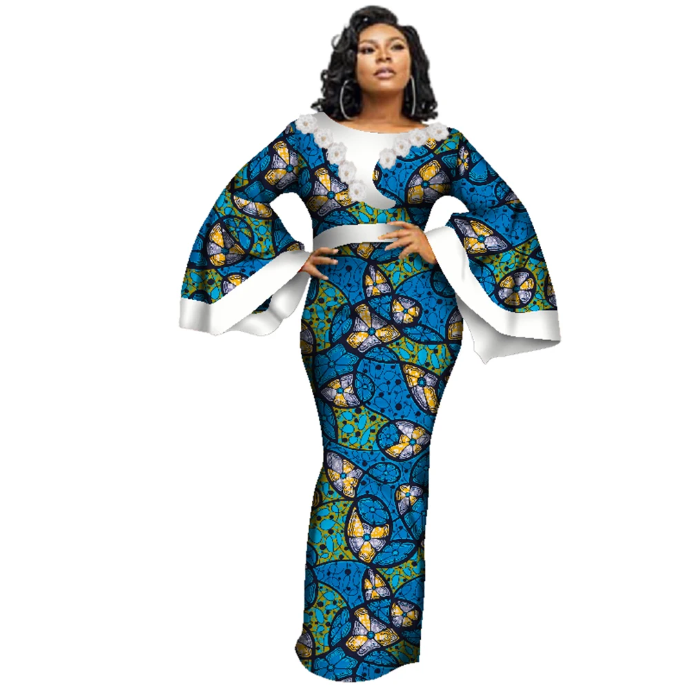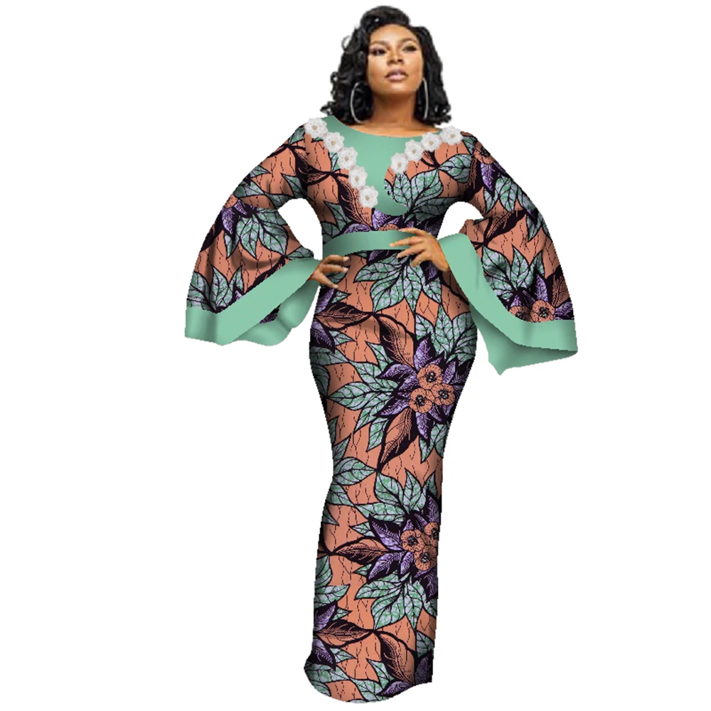 African Desses for Women Ankara Print Flare Sleeve Maxi Long Dresses Dashiki Women Party Dresses Fashion African Boubou WY3241