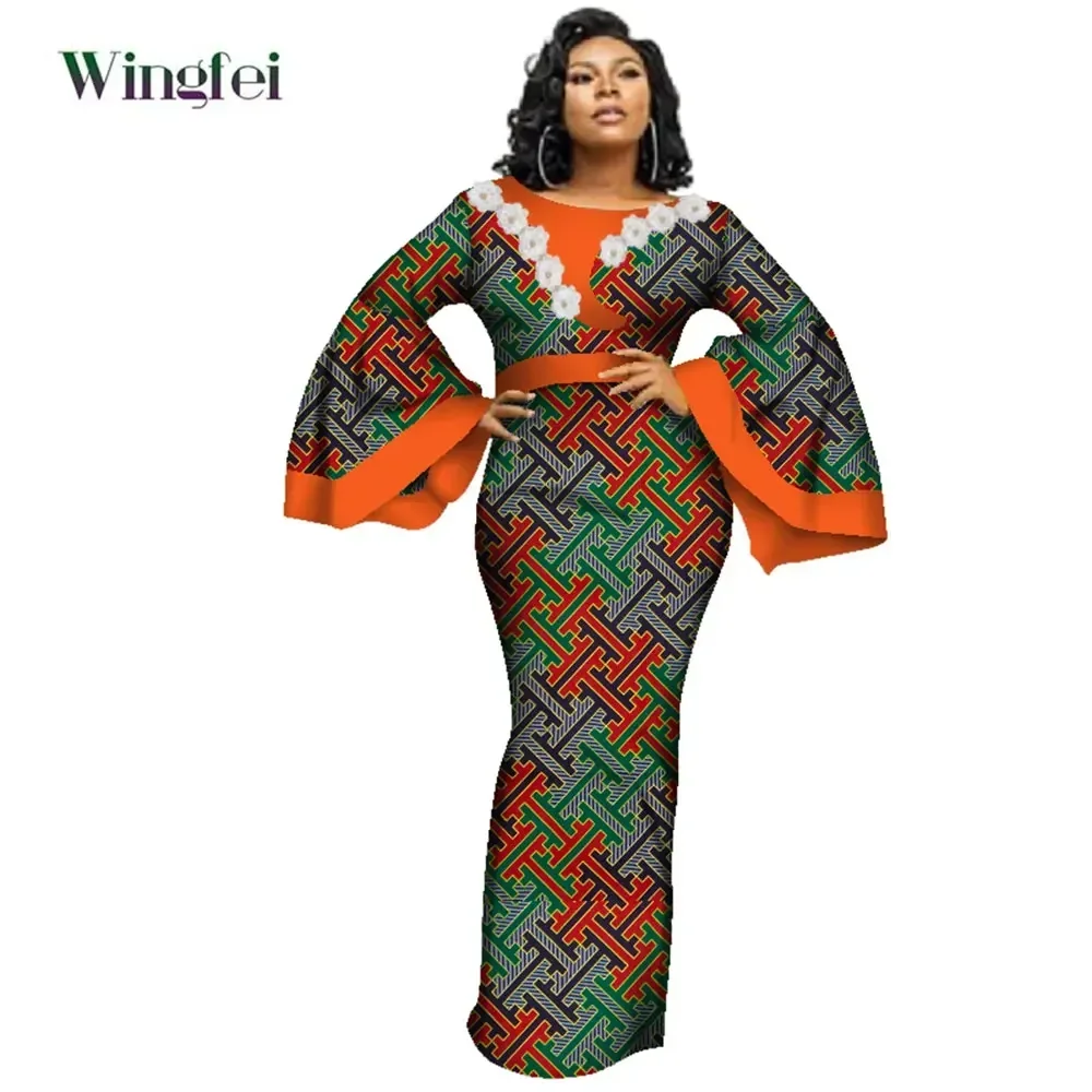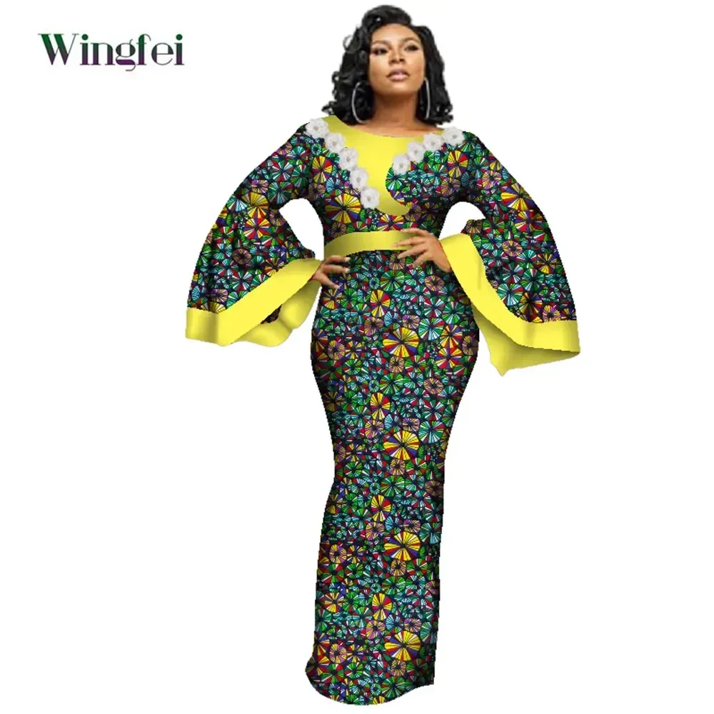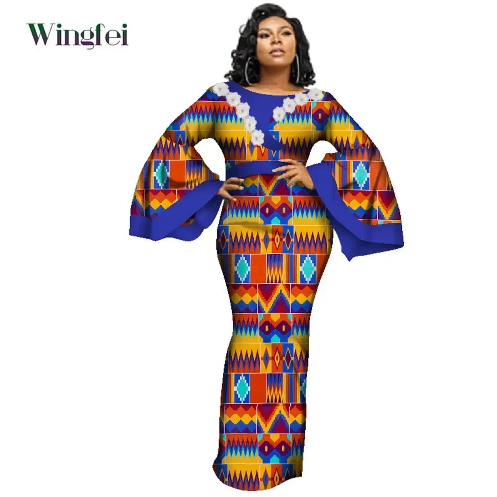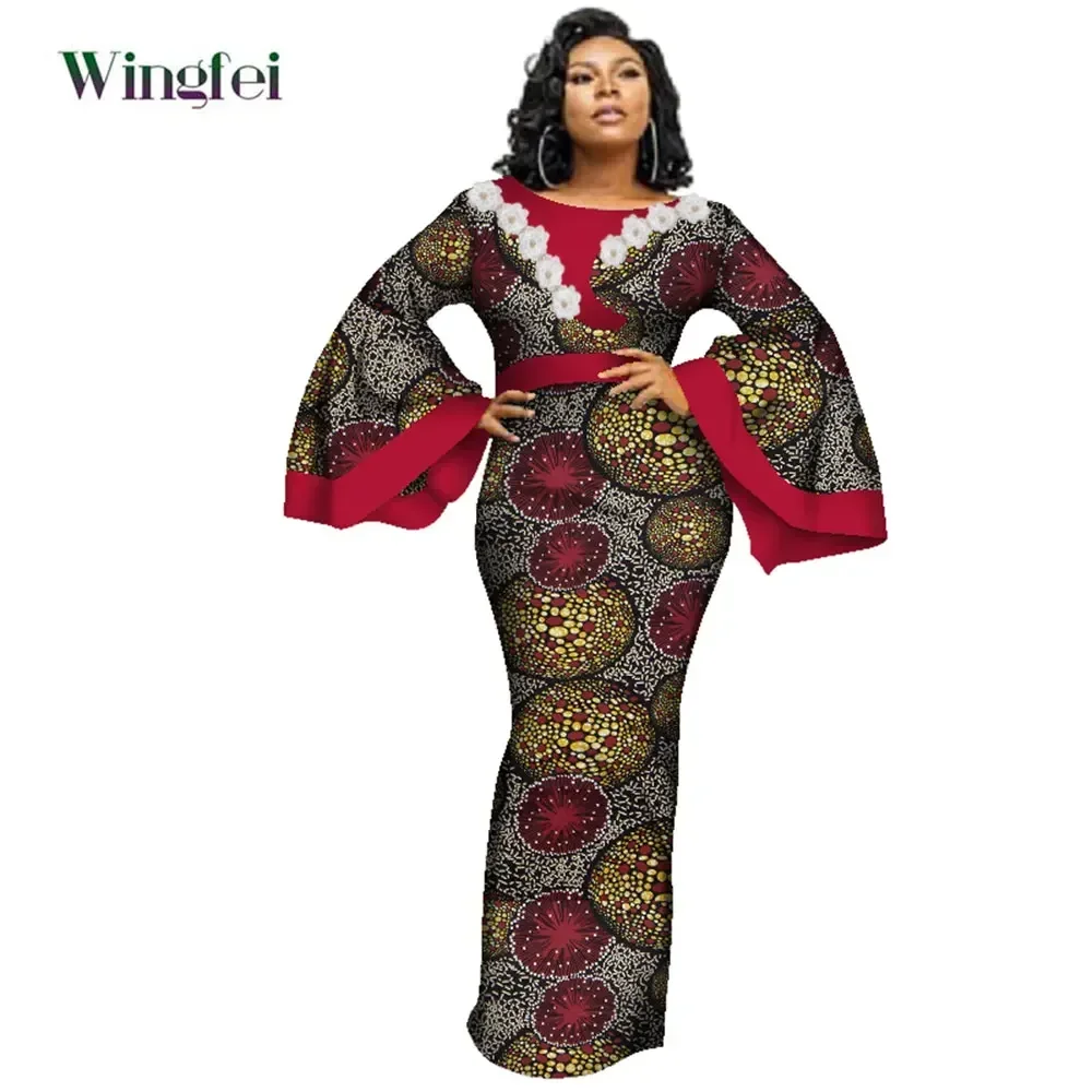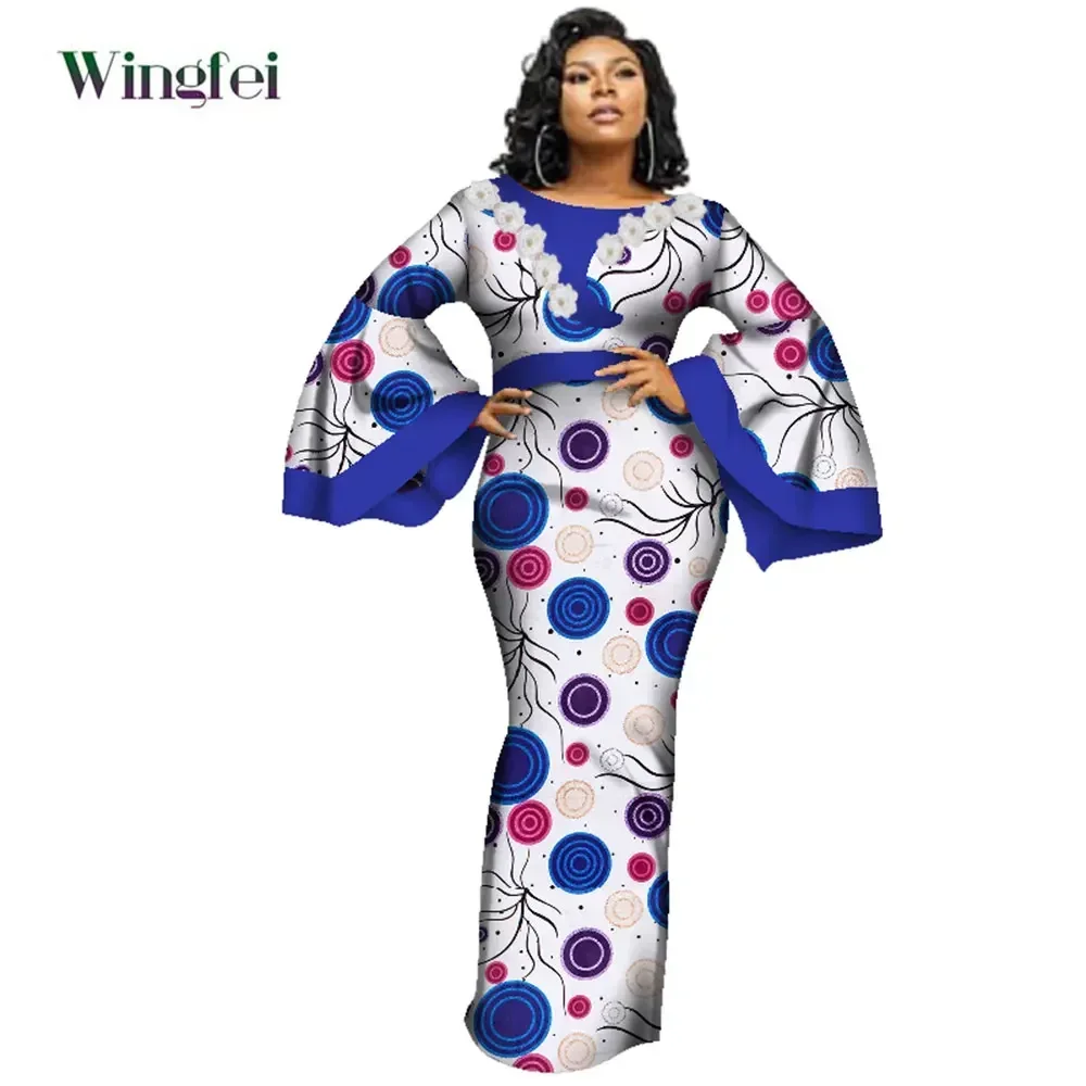 African Desses for Women Ankara Print Flare Sleeve Maxi Long Dresses Dashiki Women Party Dresses Fashion African Boubou WY3241