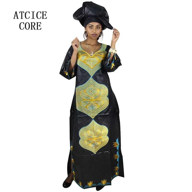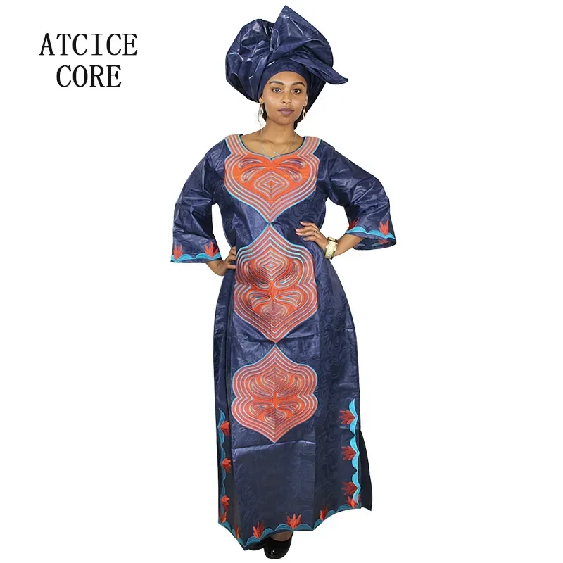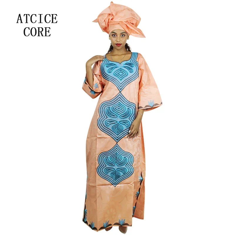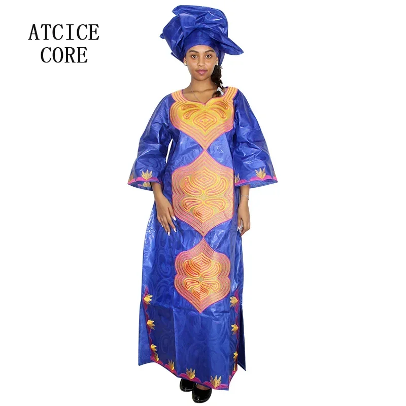 African Dresses For Woman Bazin Riche Embroidery Big Size Long Dress With Scarf