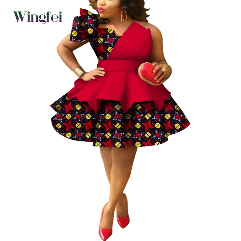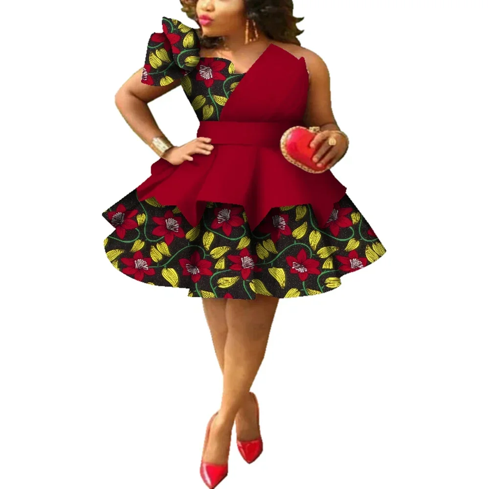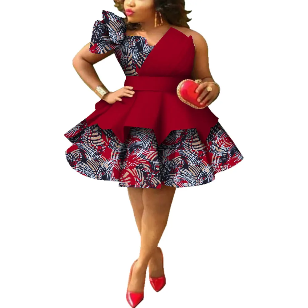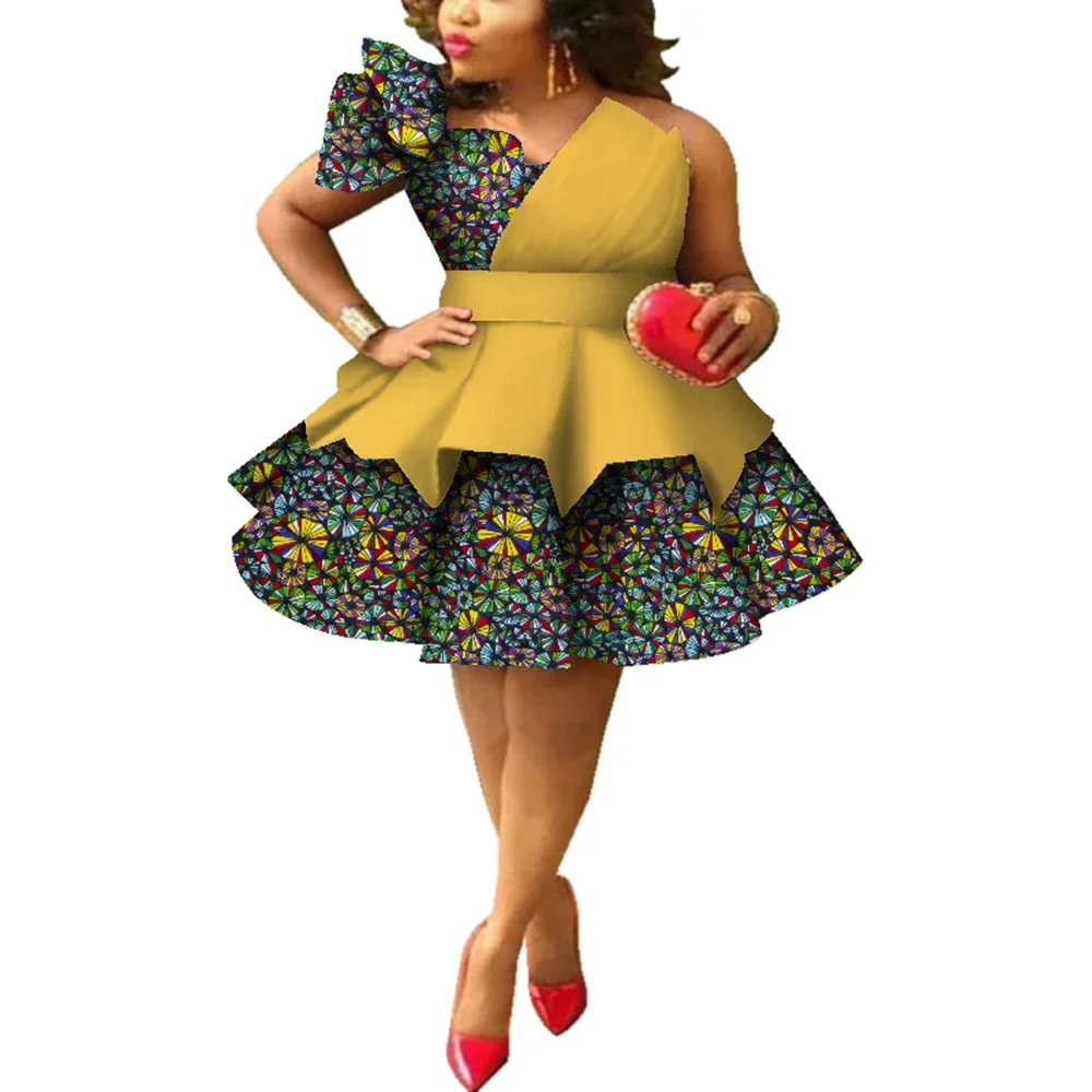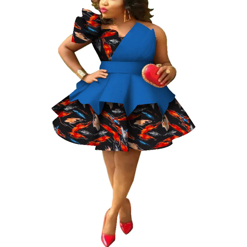 African Dresses for Women Ankara Print Strapless Multi-layer Dresses Dashiki Party Wedding Evening Dress African Clothing WY4213