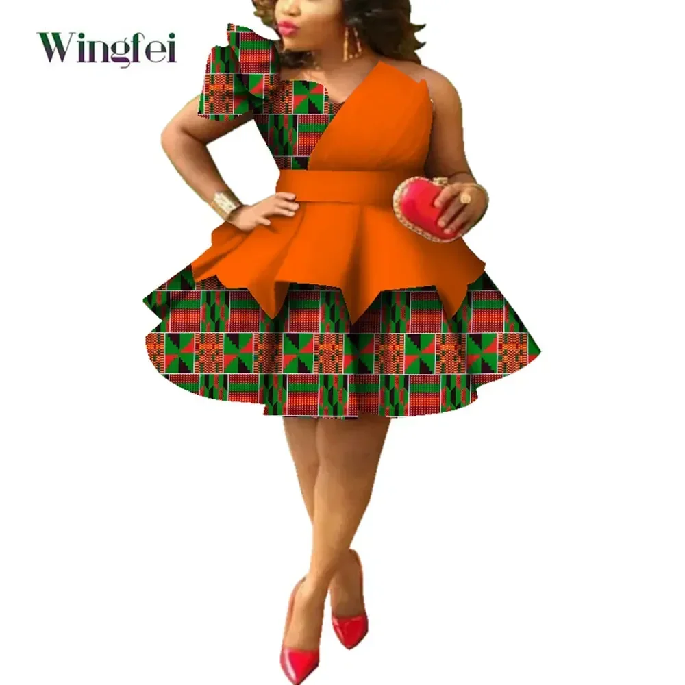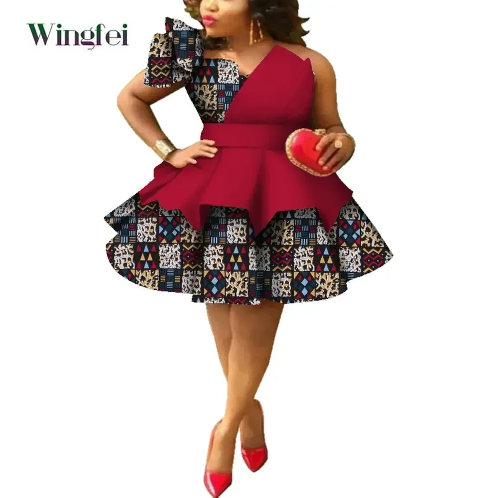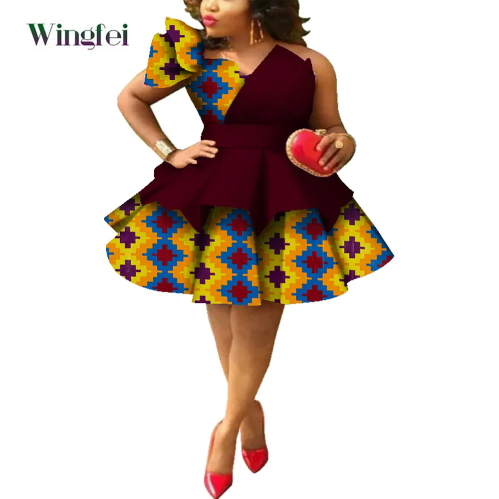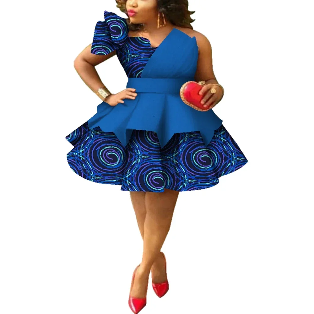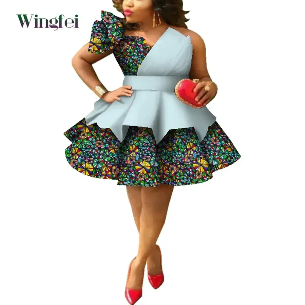 African Dresses for Women Ankara Print Strapless Multi-layer Dresses Dashiki Party Wedding Evening Dress African Clothing WY4213