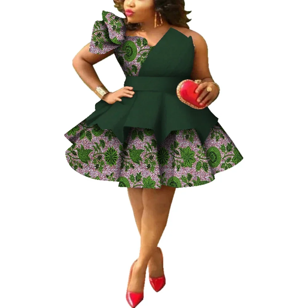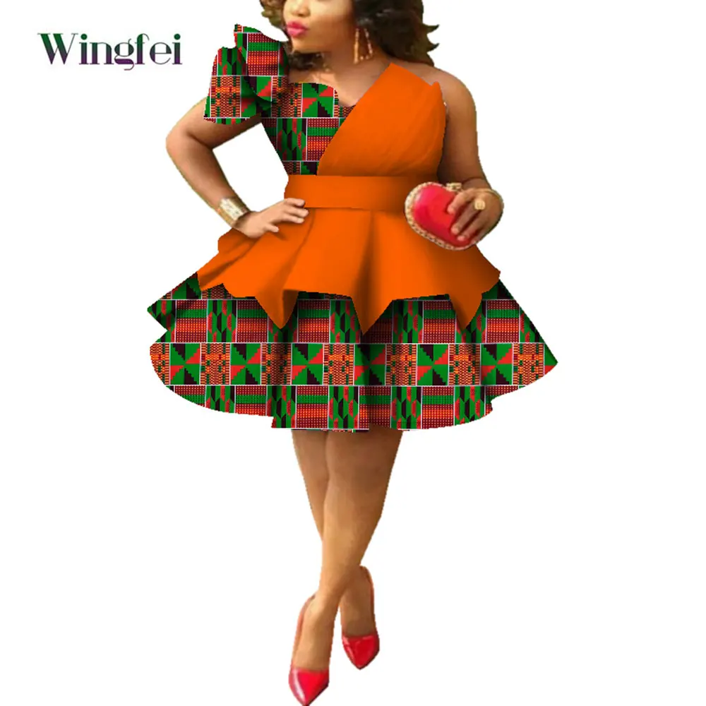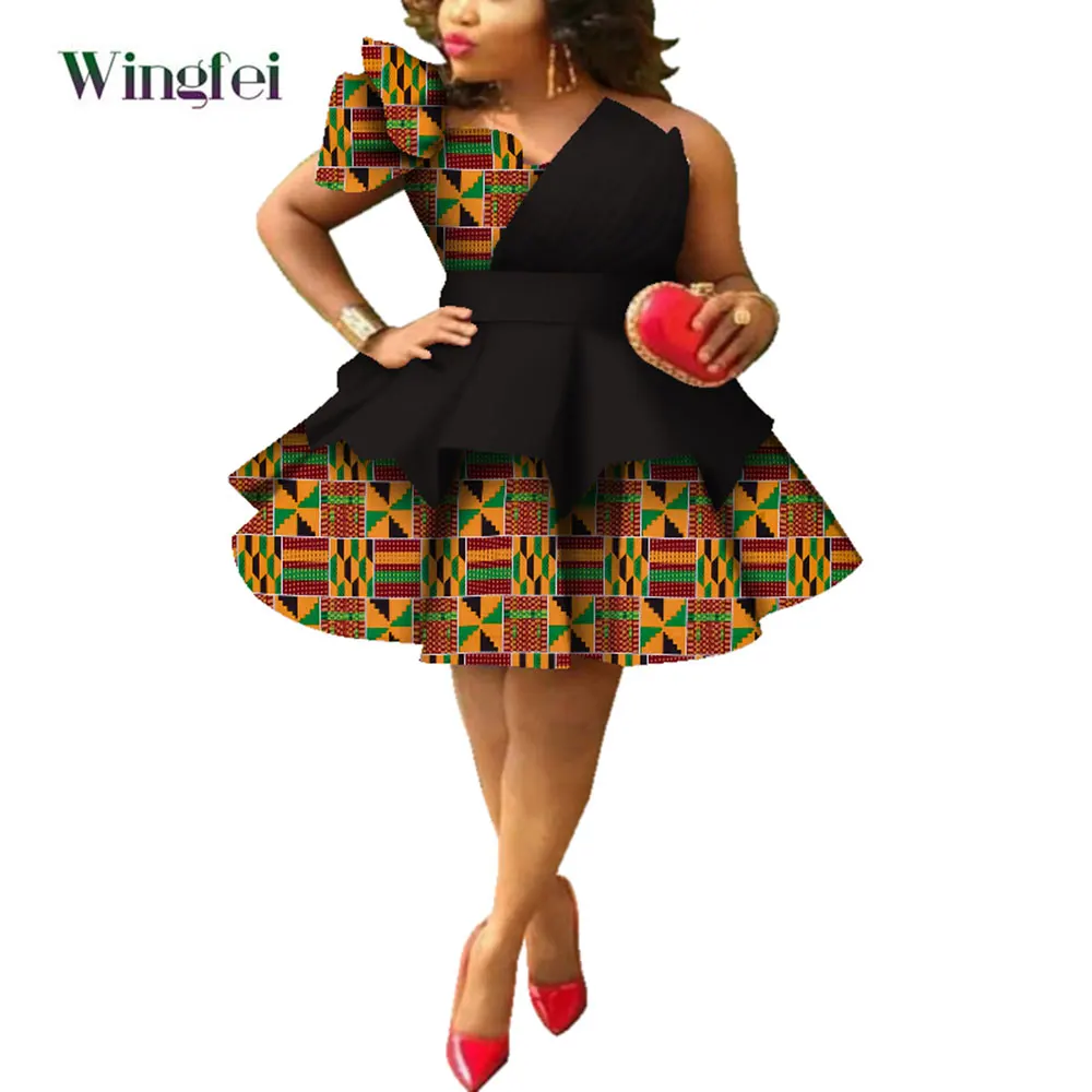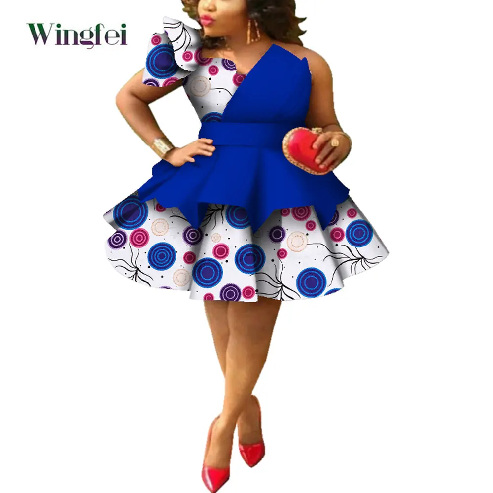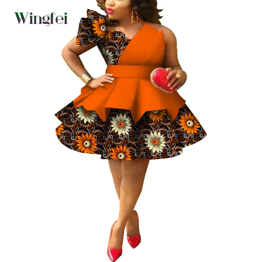 African Dresses for Women Ankara Print Strapless Multi-layer Dresses Dashiki Party Wedding Evening Dress African Clothing WY4213