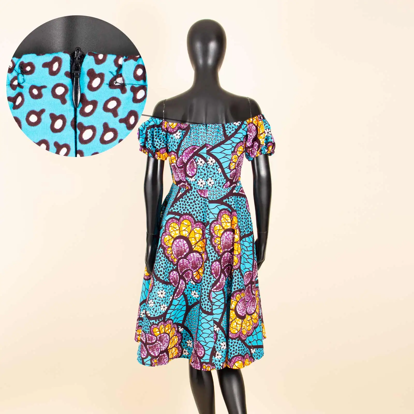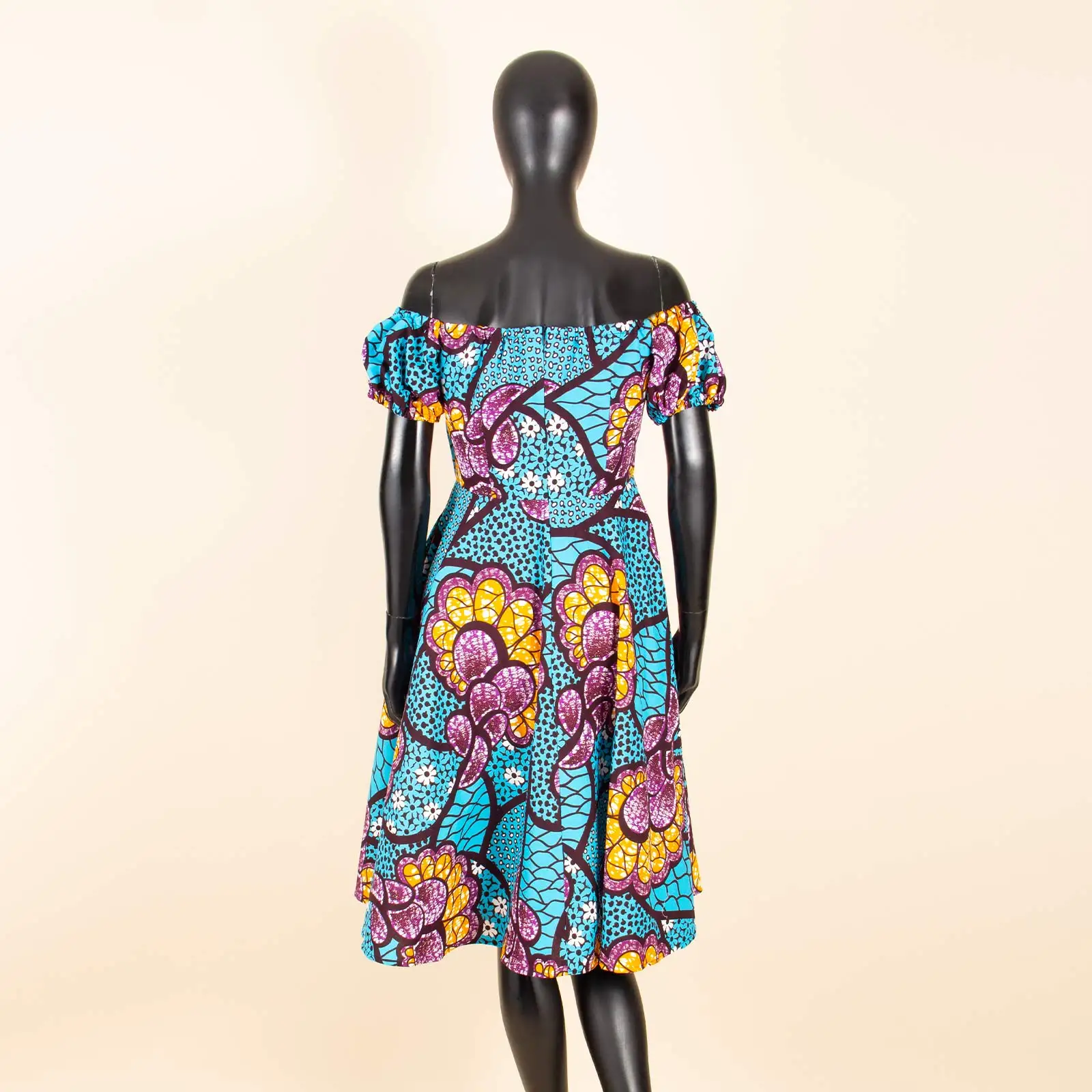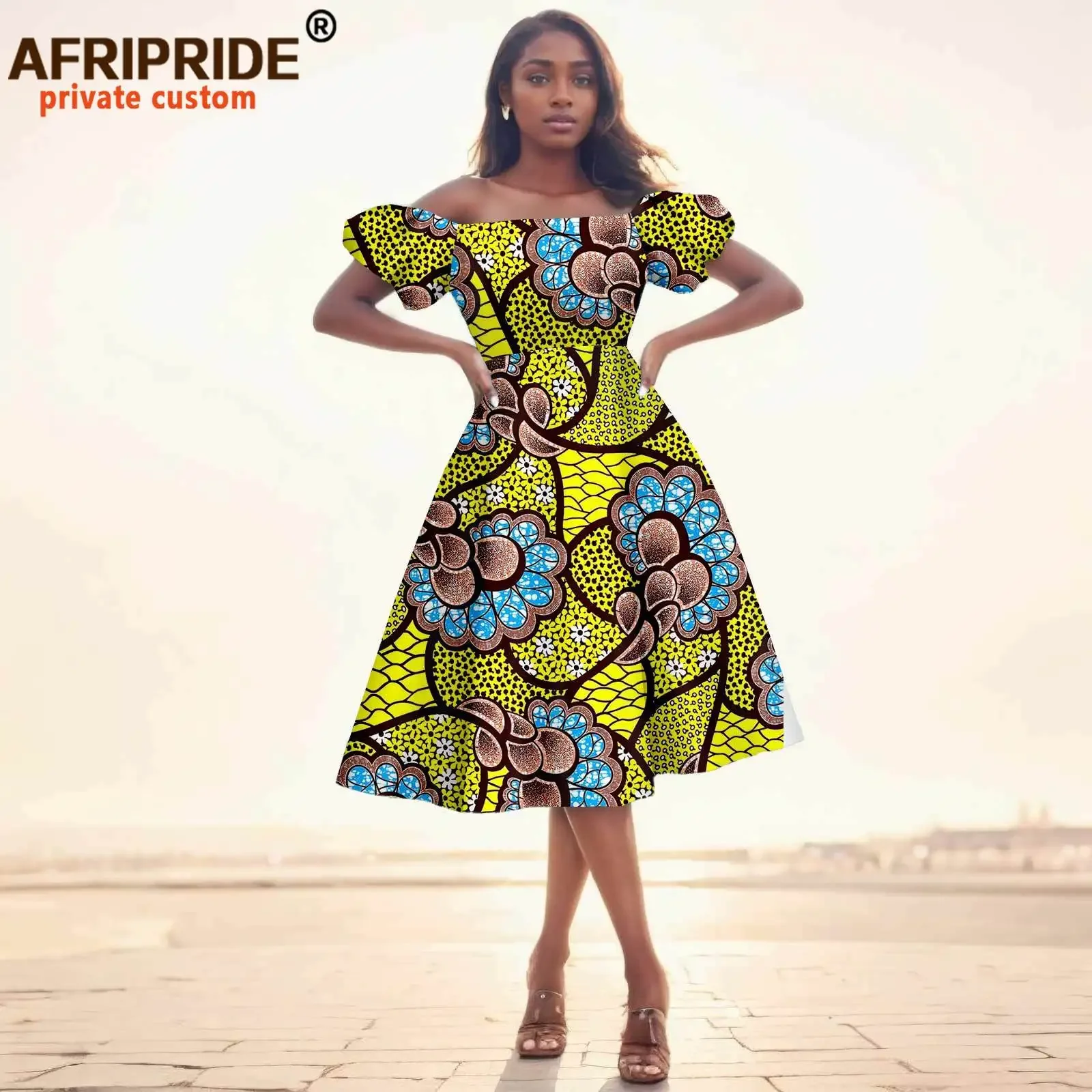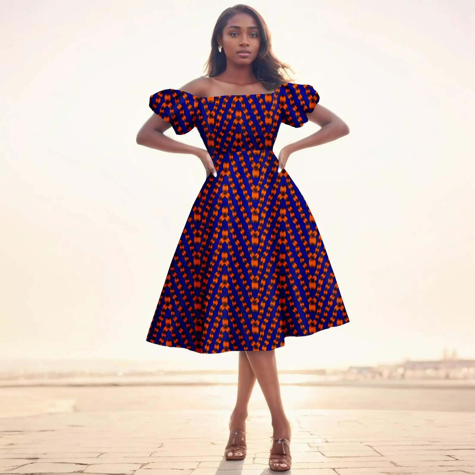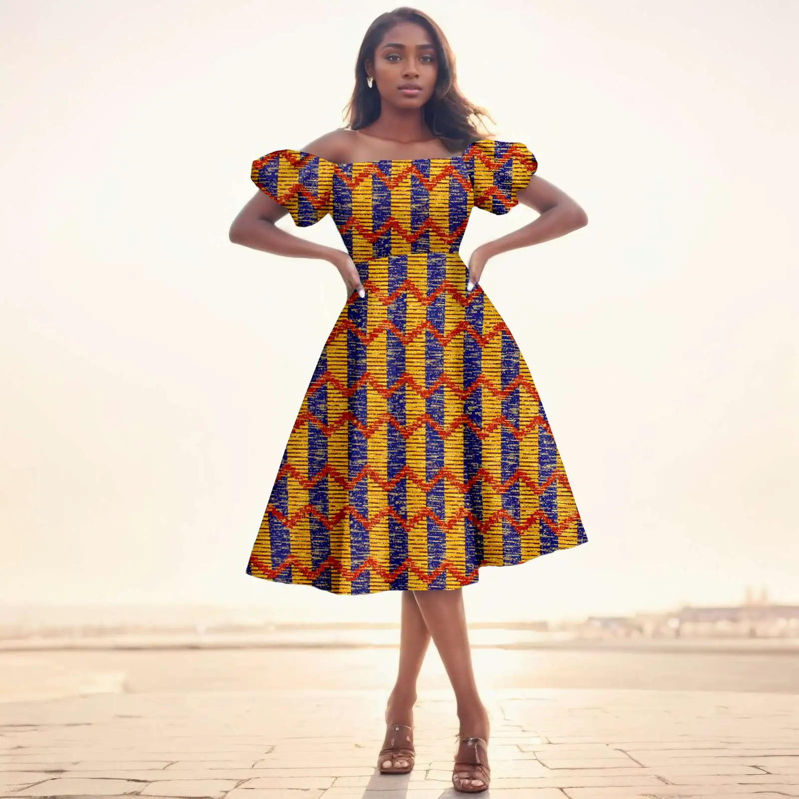 African Dresses for Women Short Sleeve High Waist Print Midi Dress Ankara Attire Traditional Outfit Elegant Fashion Wear 2425102