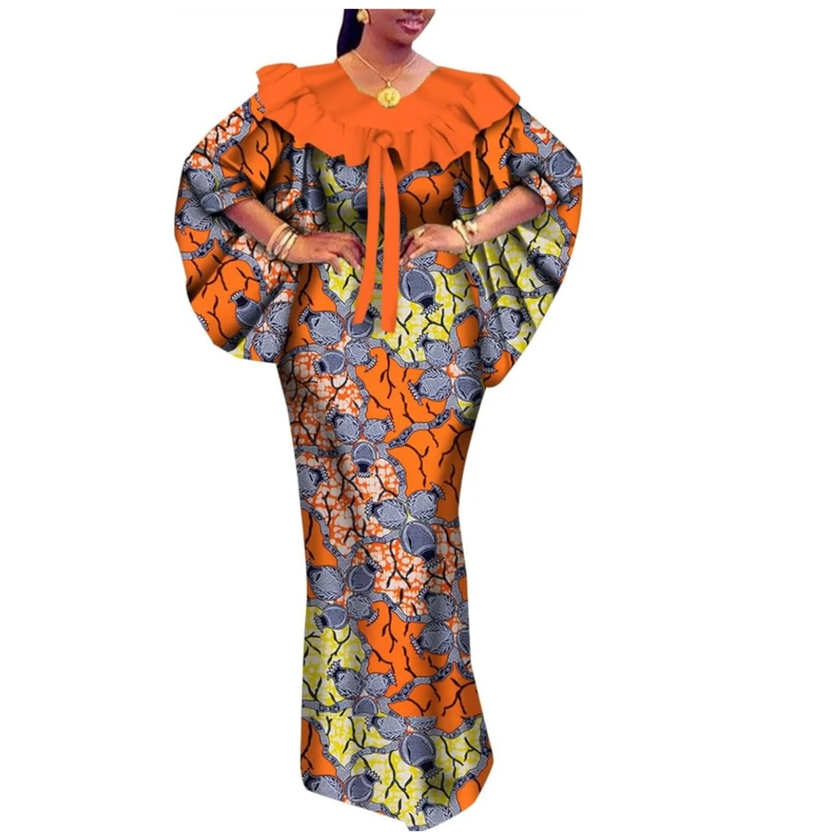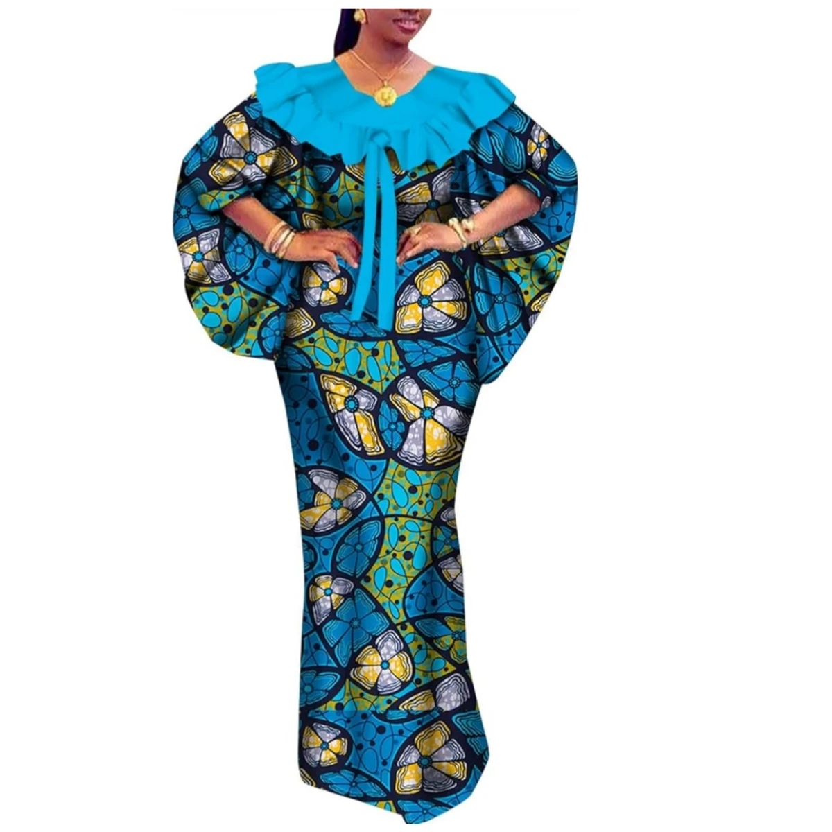 African Dresses for Women Wedding Ruffle Collar Maxi Long Dashiki Party Dress Elegant African Outfits for Women Plus Size Wy9826