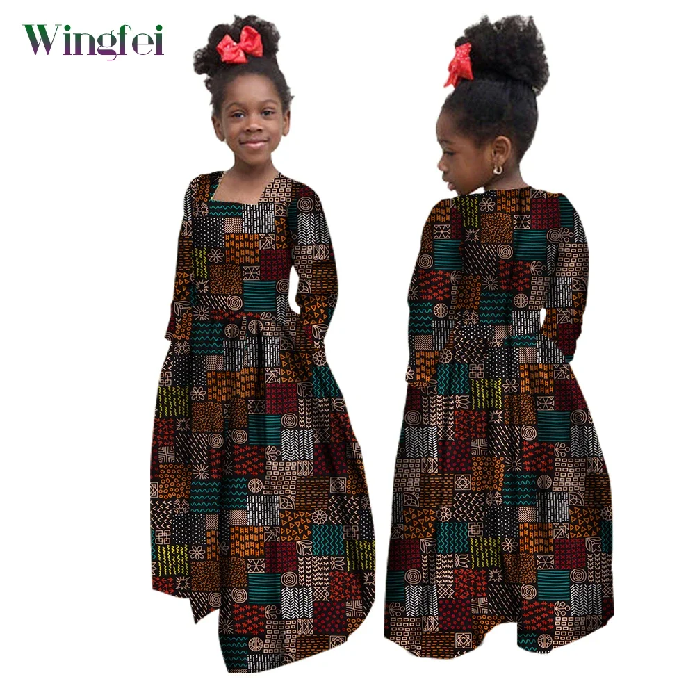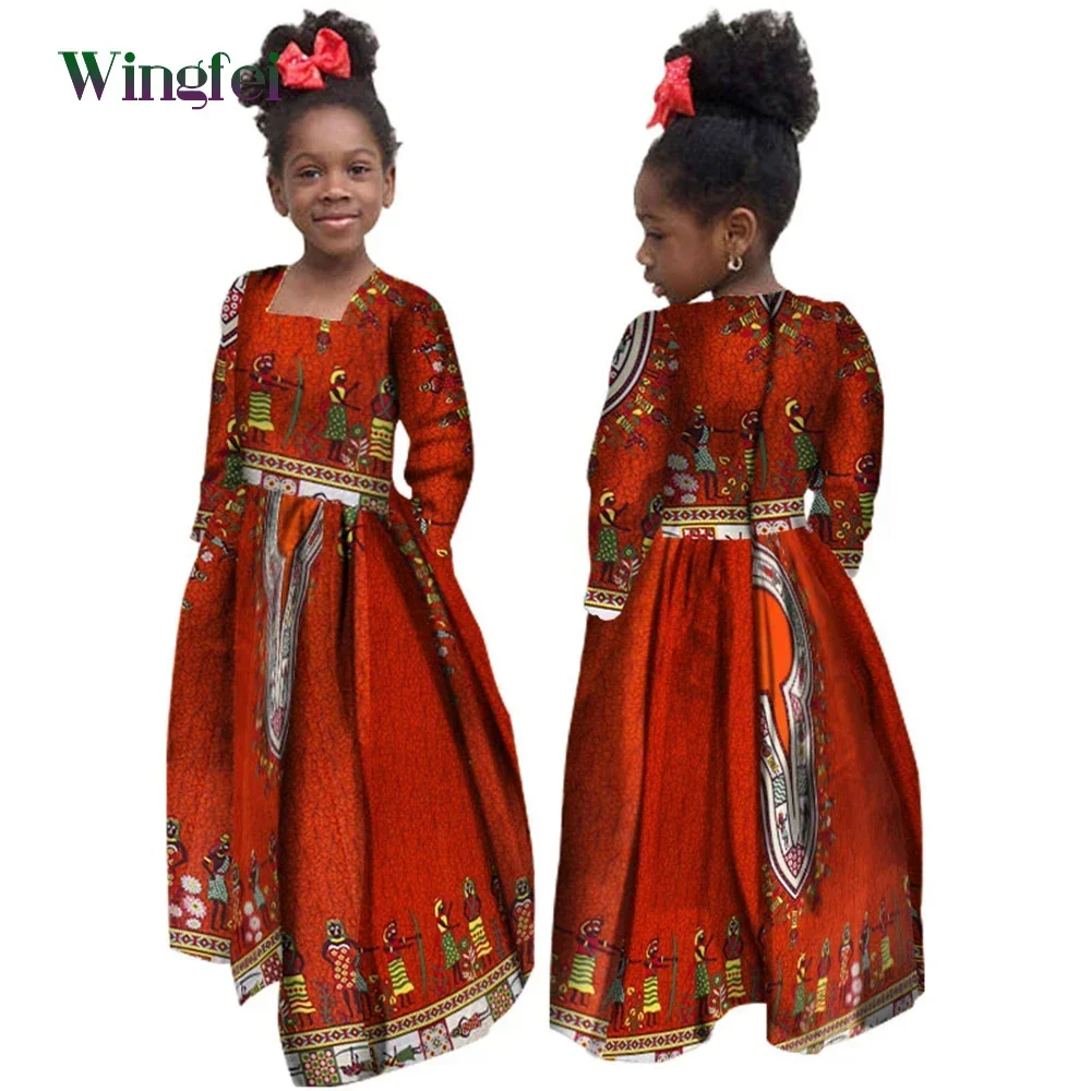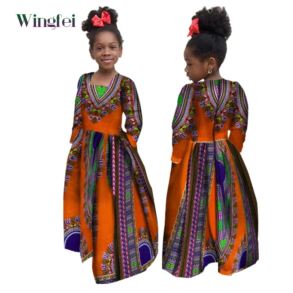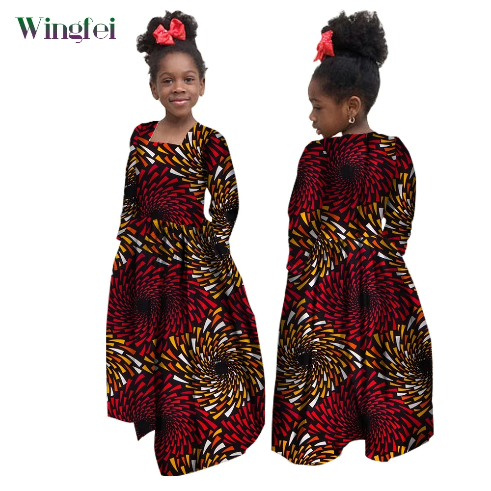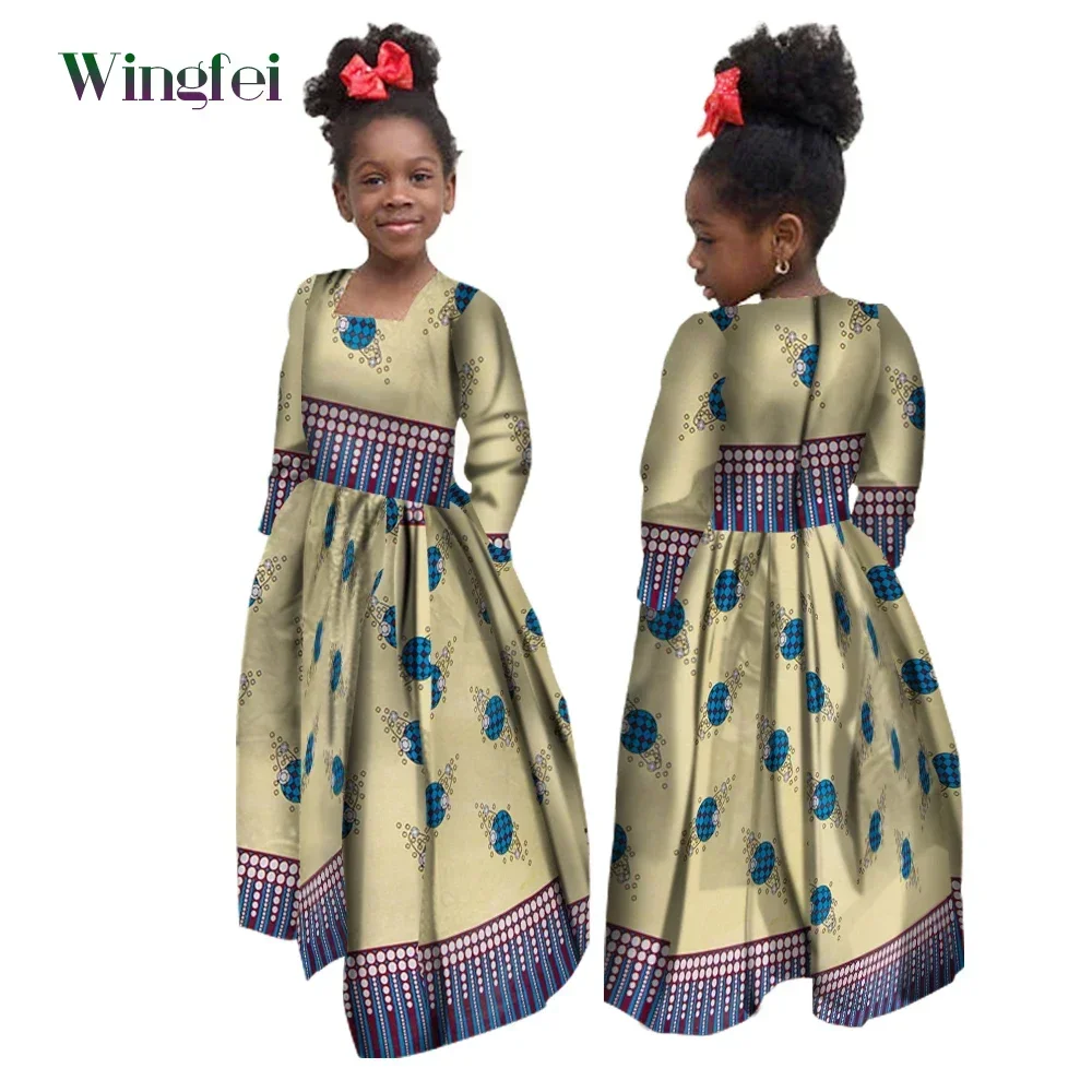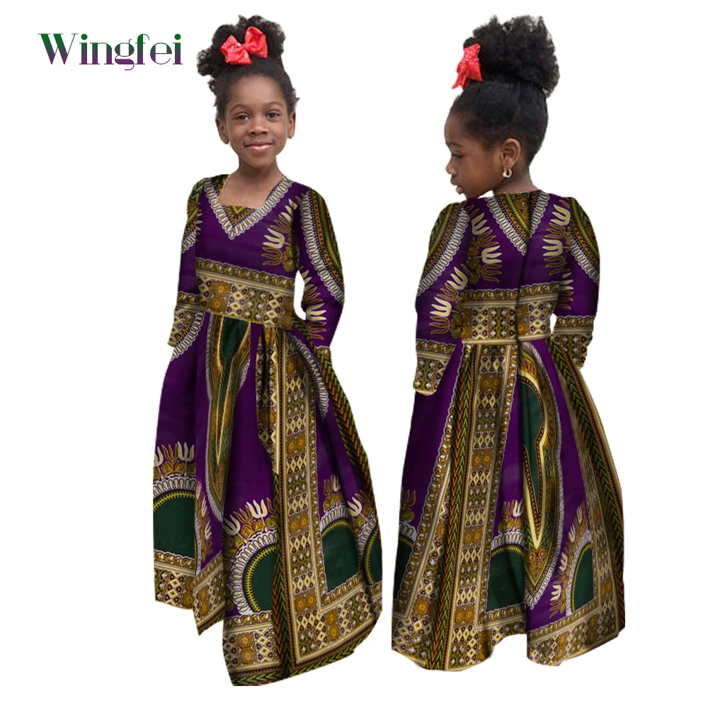 African Girl Dress Kids Dashiki Ankara Floral Print Dress Wax Cotton Long Sleeve Dresses Fashion Africa Clothes for Girl WYT61