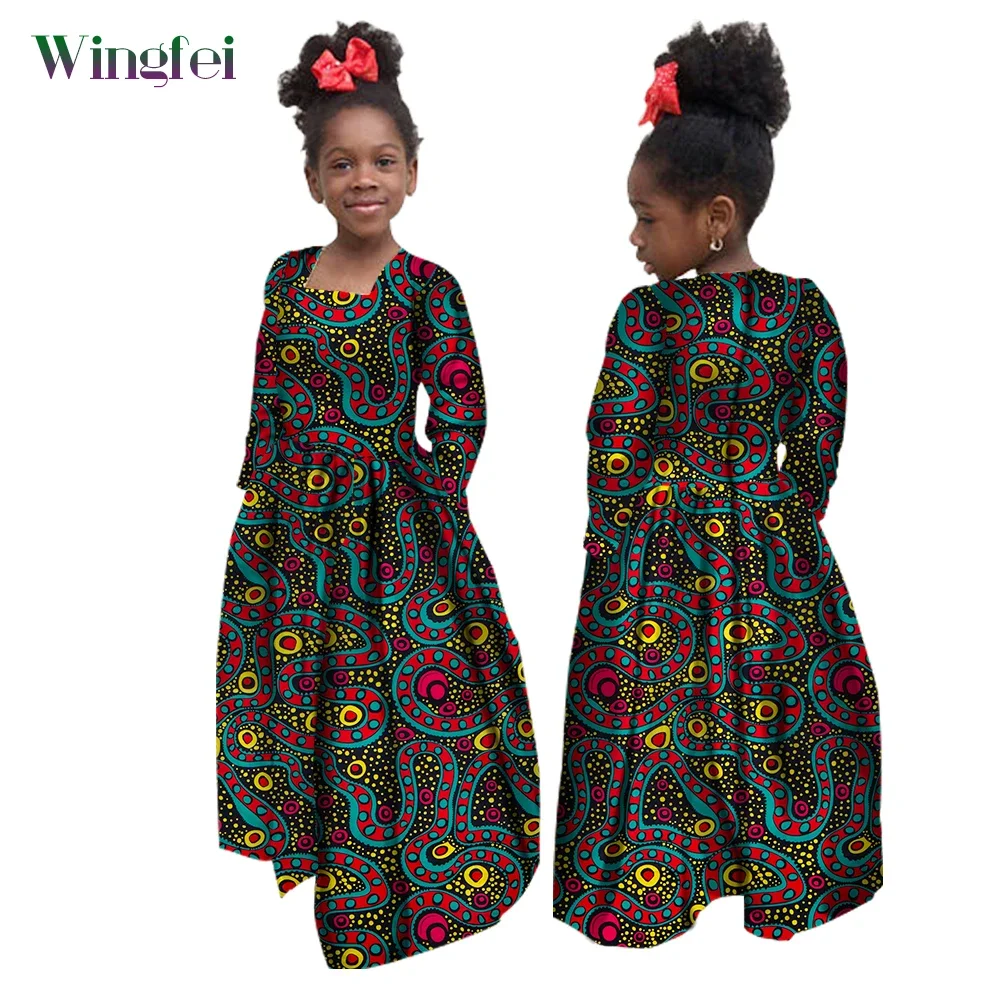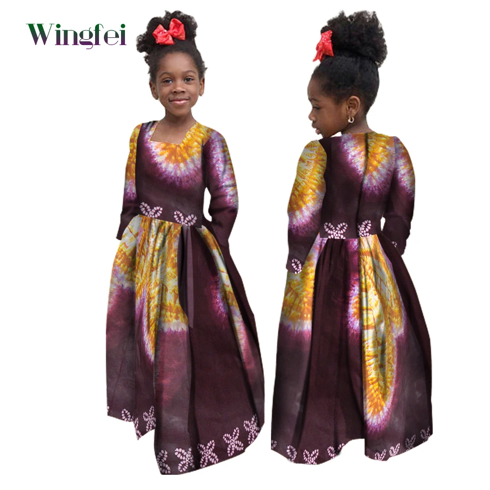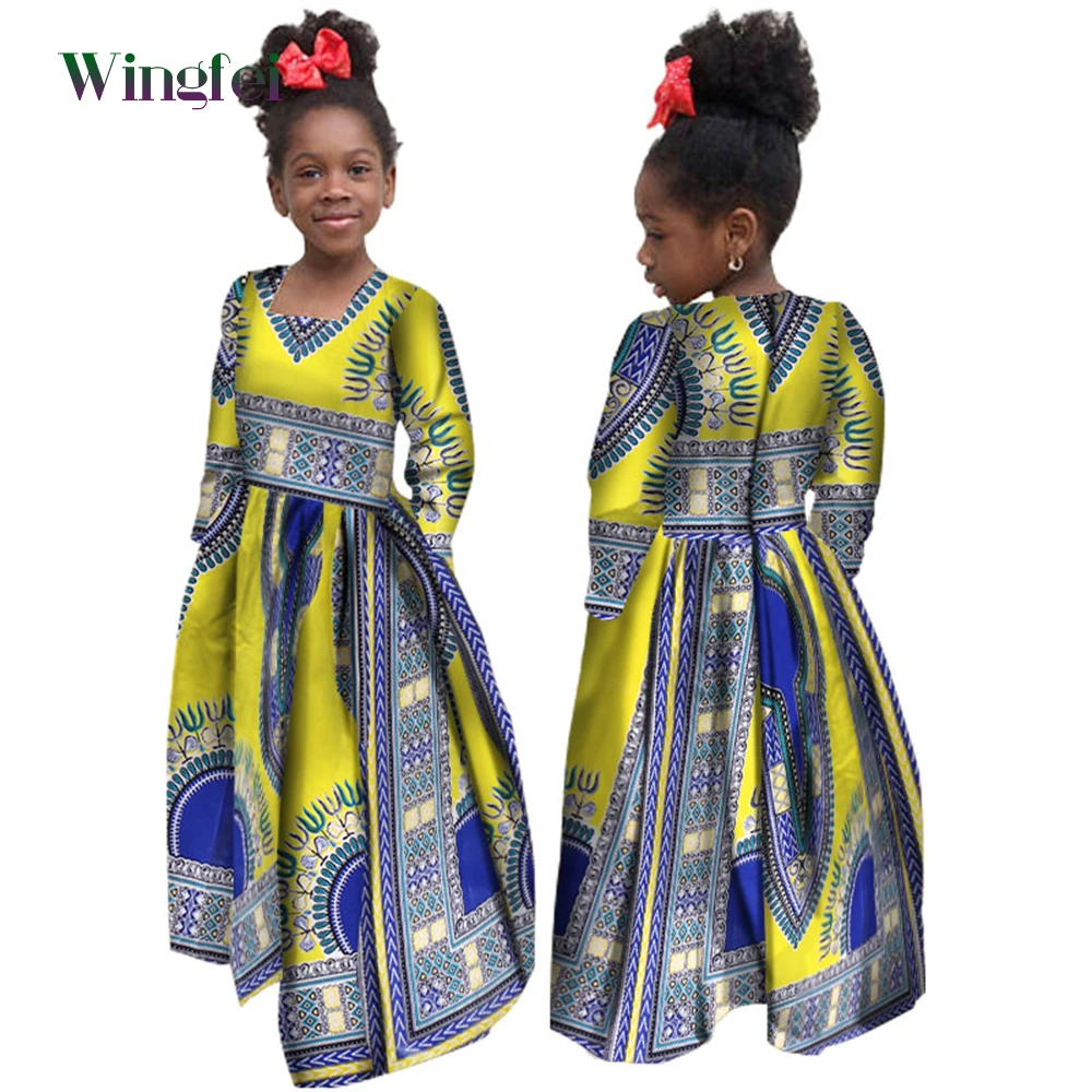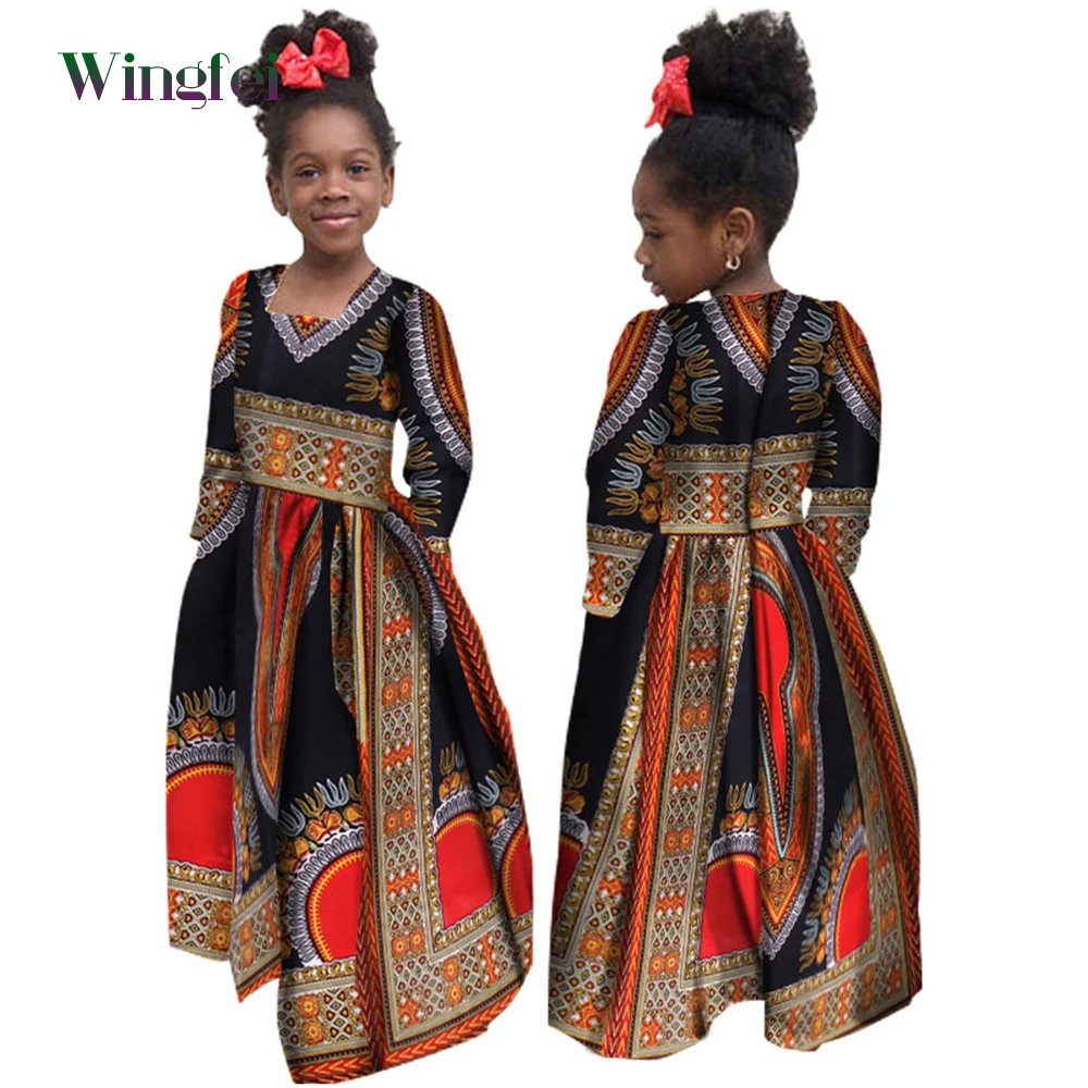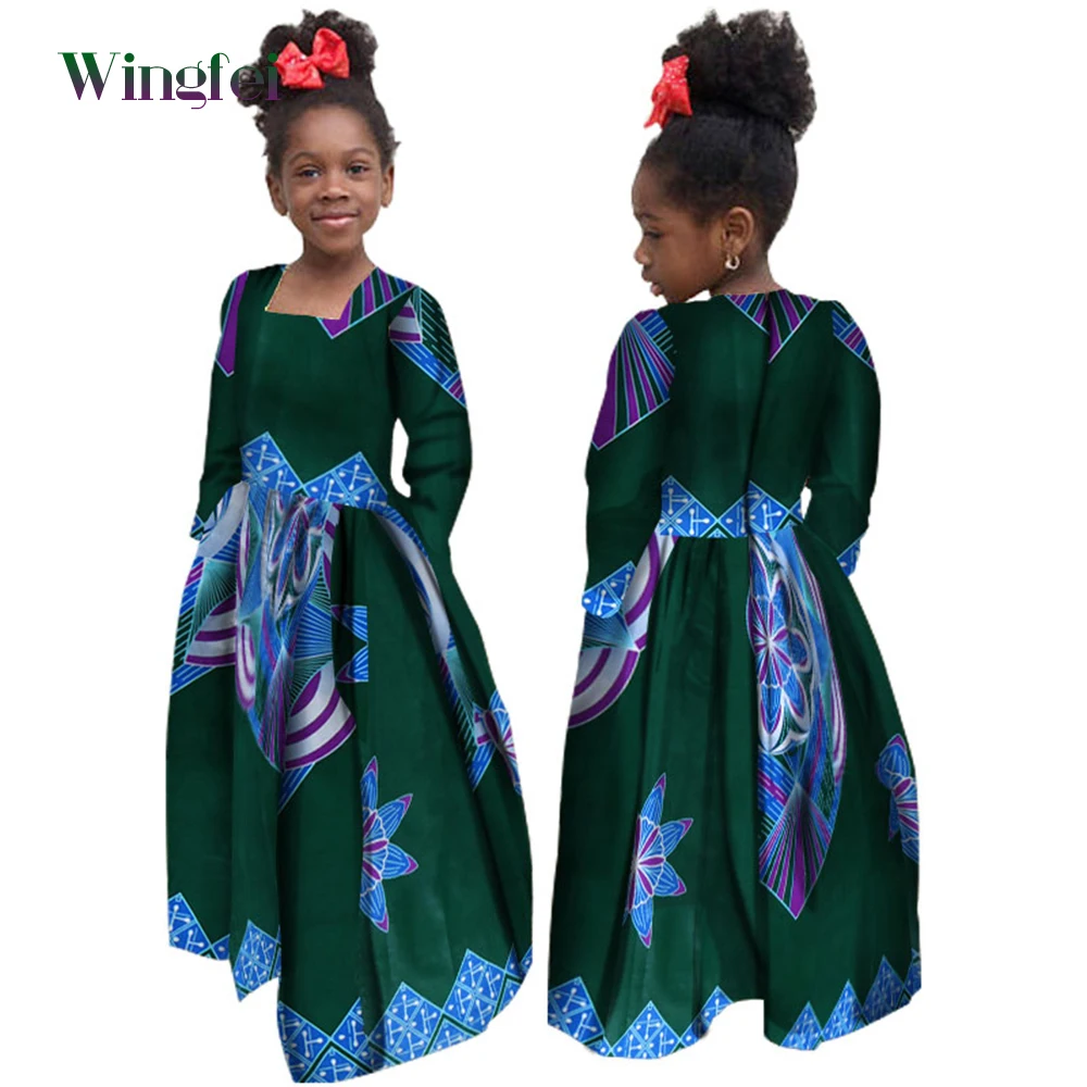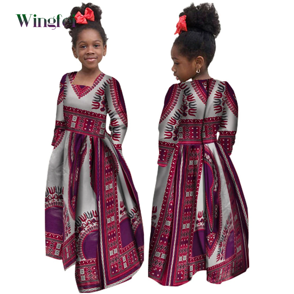 African Girl Dress Kids Dashiki Ankara Floral Print Dress Wax Cotton Long Sleeve Dresses Fashion Africa Clothes for Girl WYT61