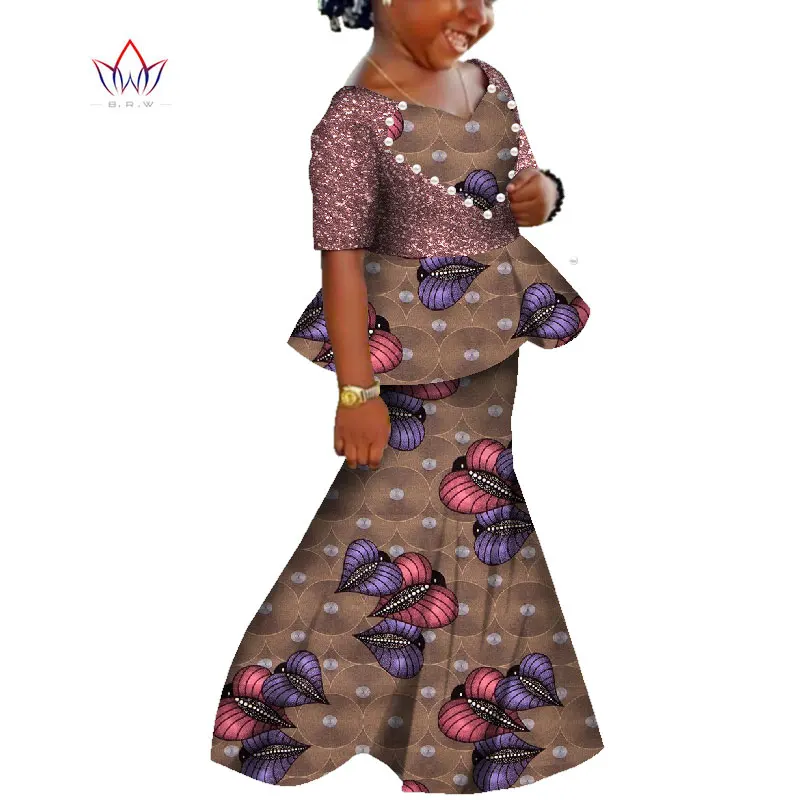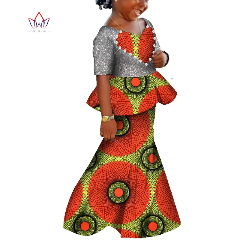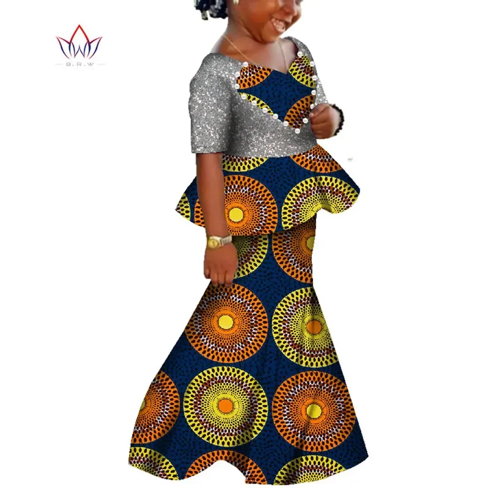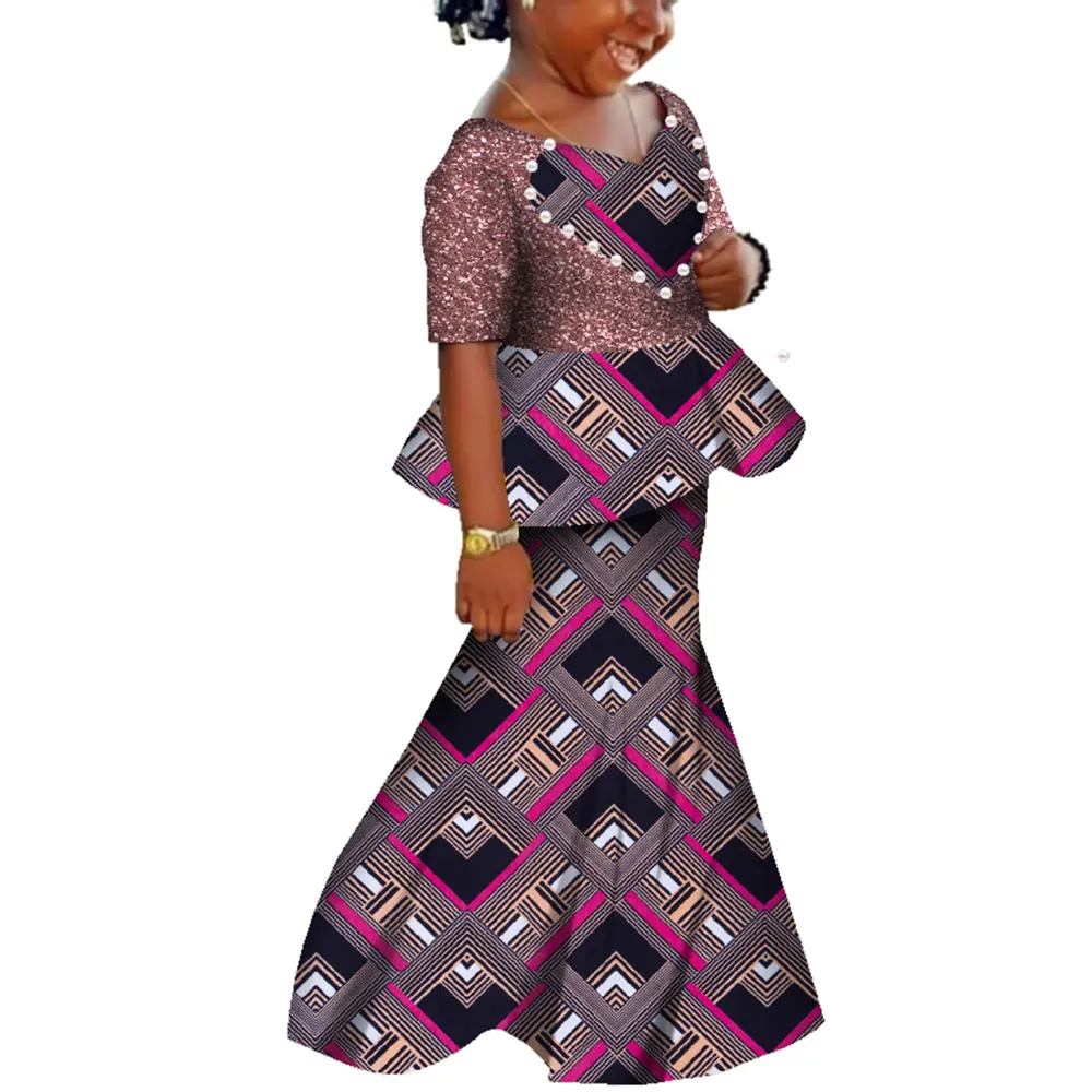 African Kids Dresses African Dashiki Print Cotton Wax Matching Dresses Africa Children Summer Plus Size Clothing WYT529