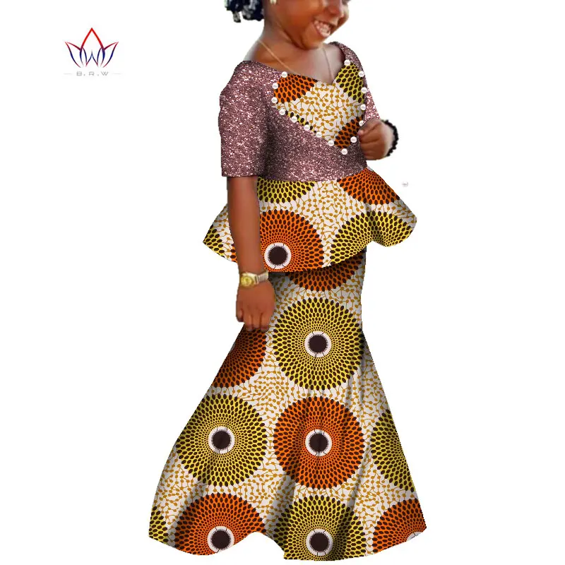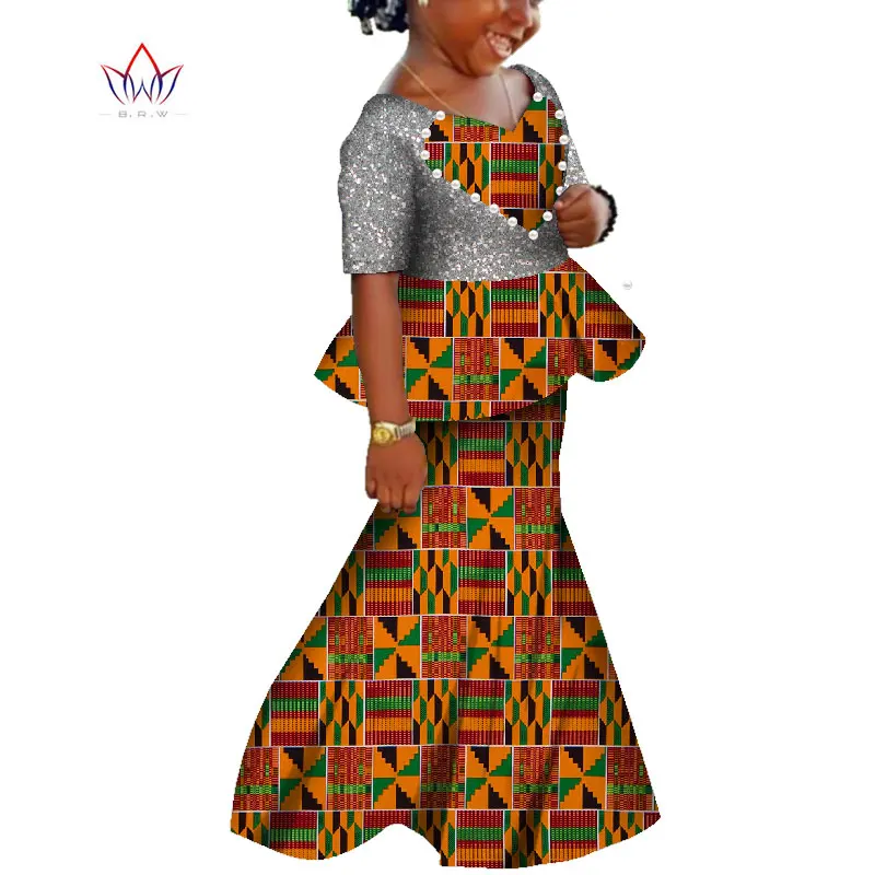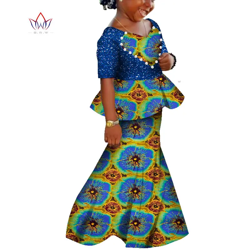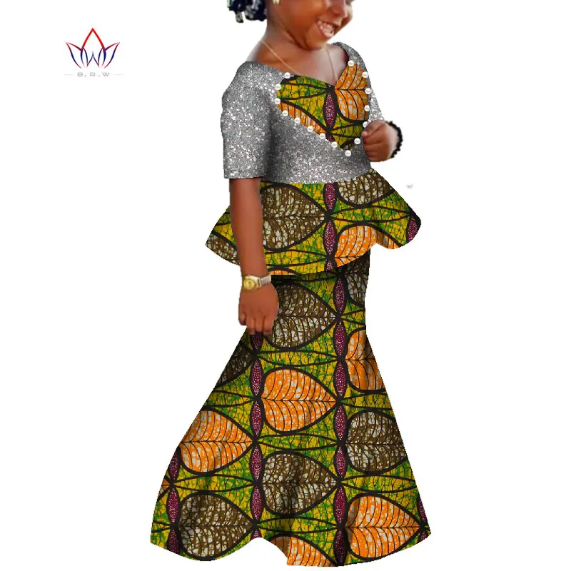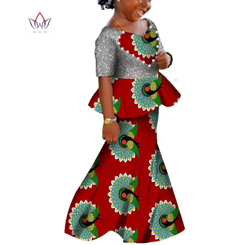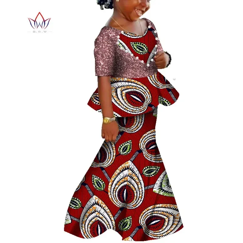 African Kids Dresses African Dashiki Print Cotton Wax Matching Dresses Africa Children Summer Plus Size Clothing WYT529