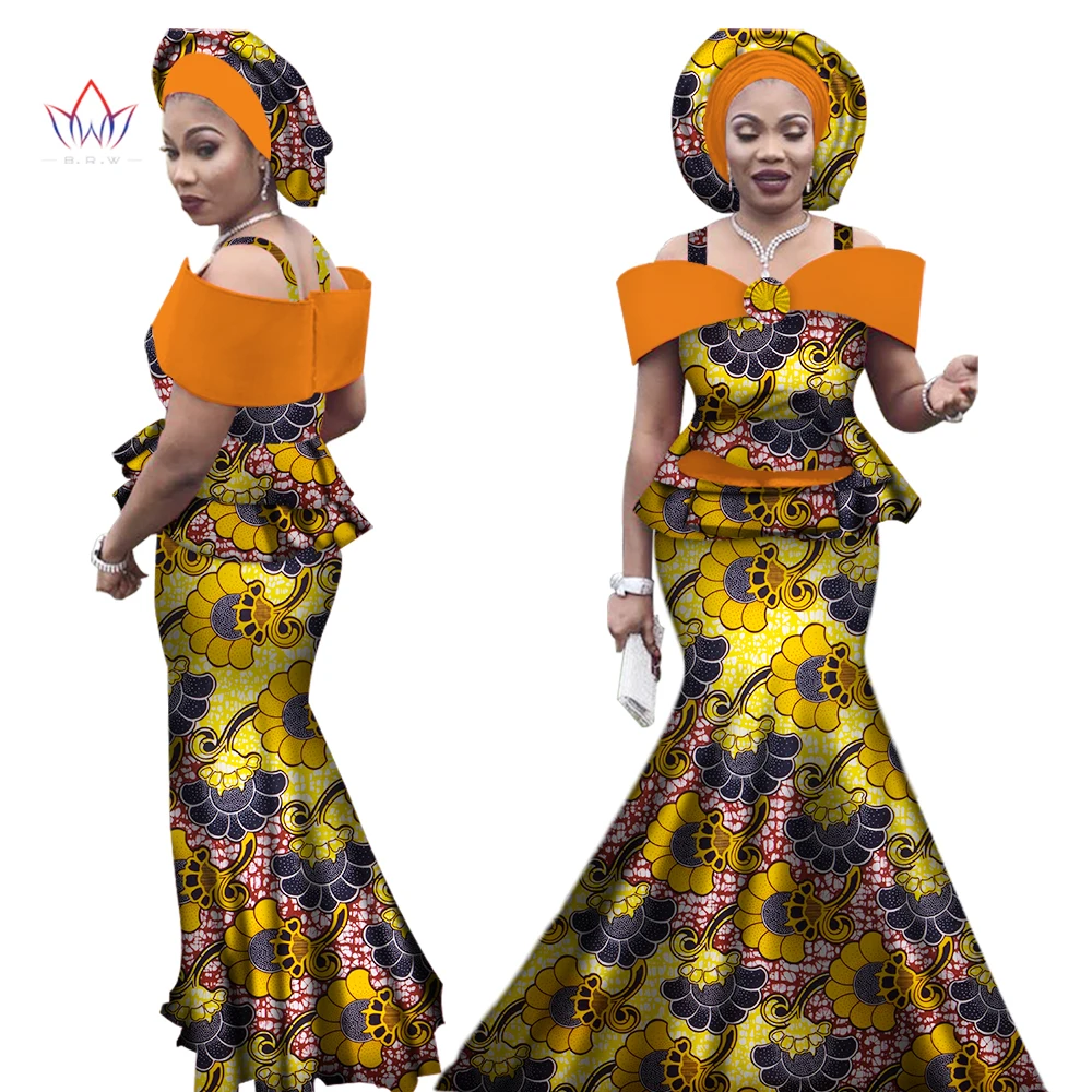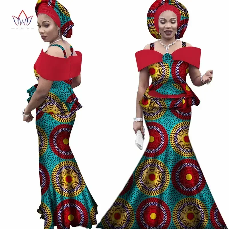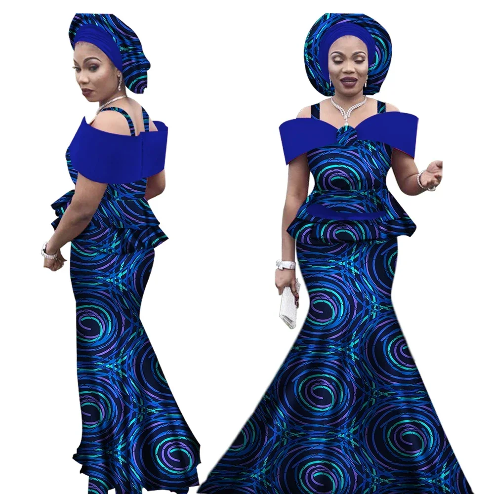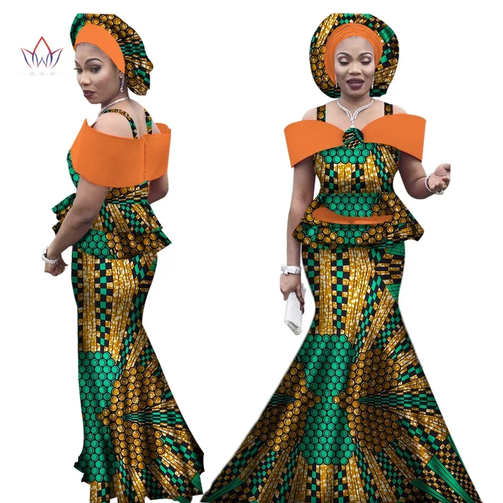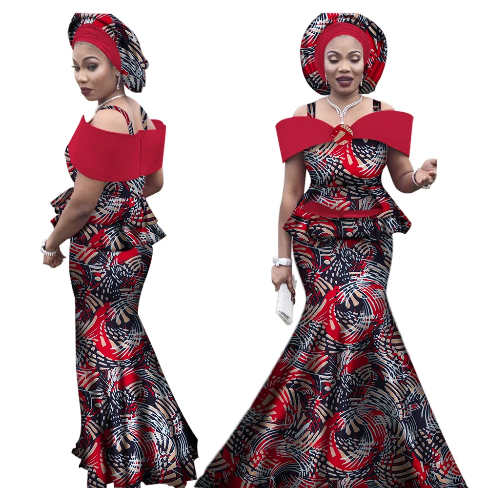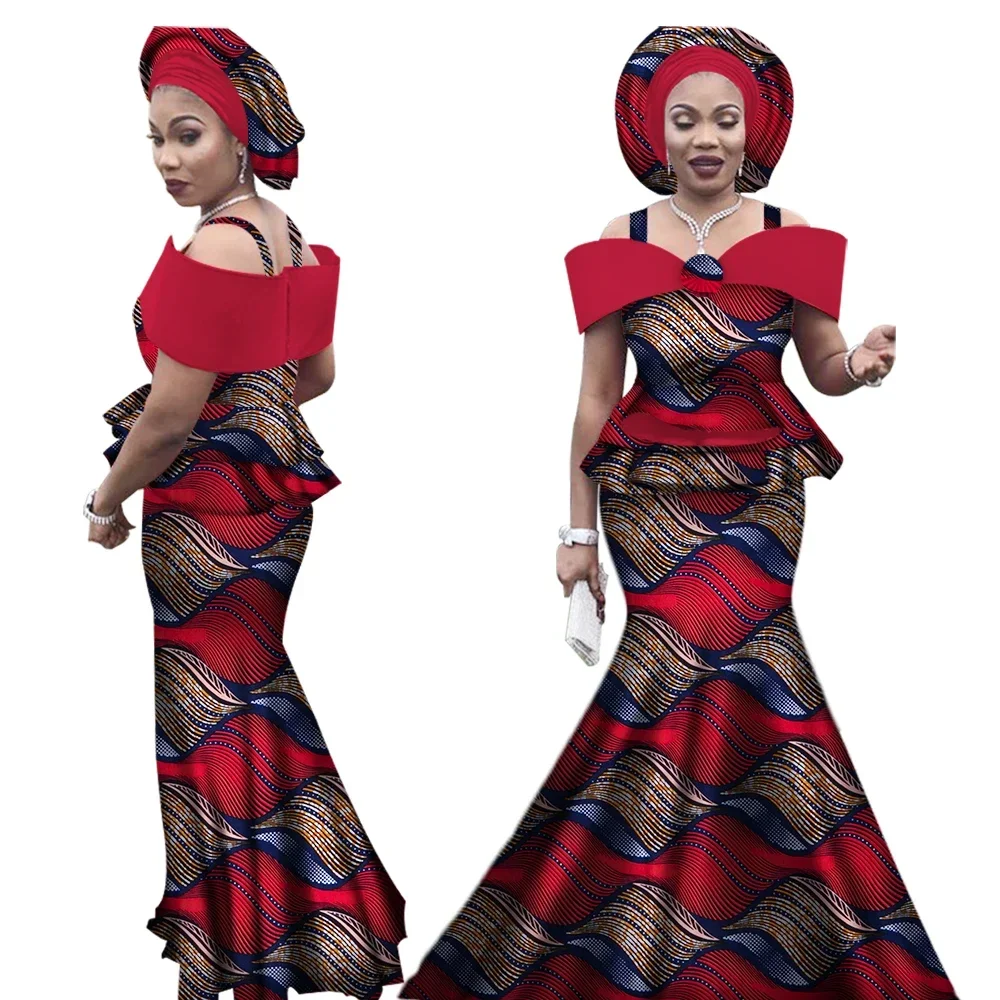 African Outfits with Headtie for Women Dashiki Bazin Print Strap Tops and Long Skirts Women Set African Clothing WY3113