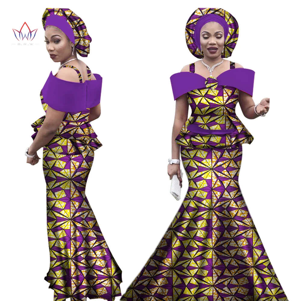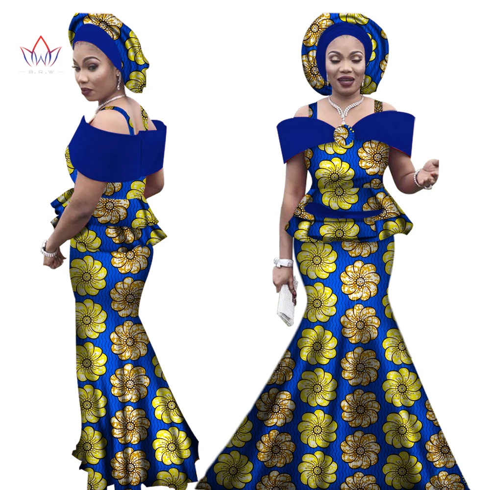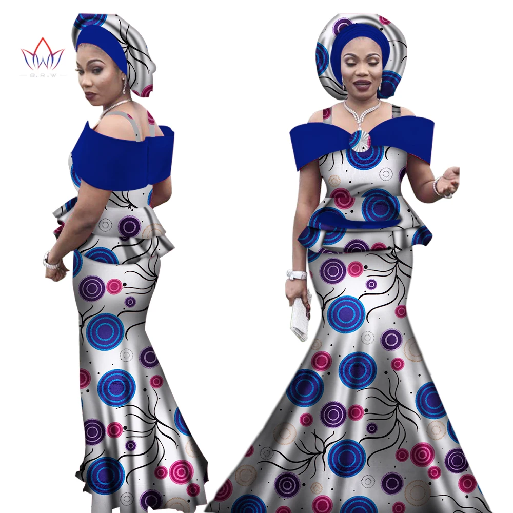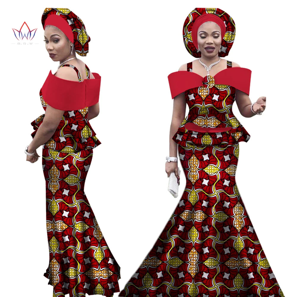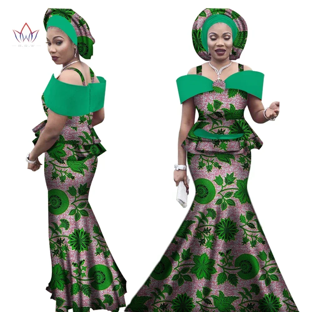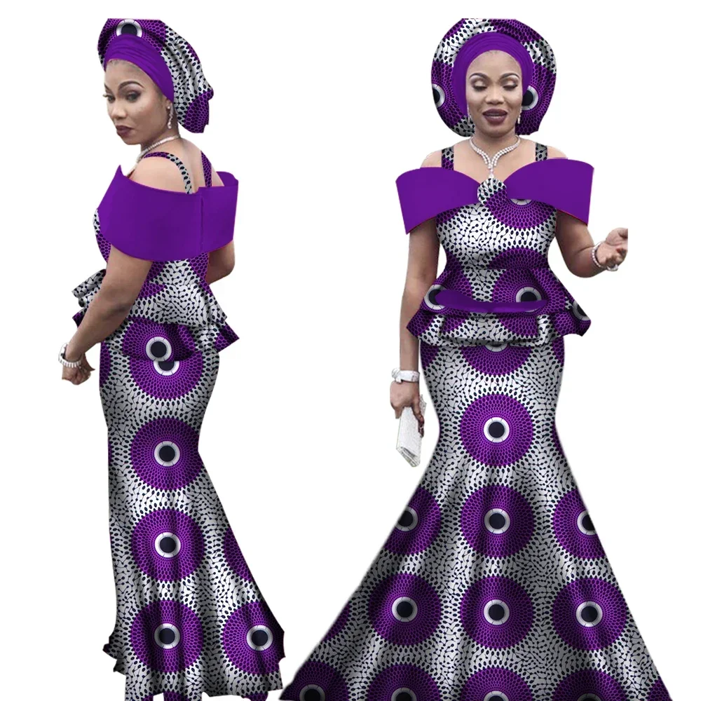African Outfits with Headtie for Women Dashiki Bazin Print Strap Tops and Long Skirts Women Set African Clothing WY3113