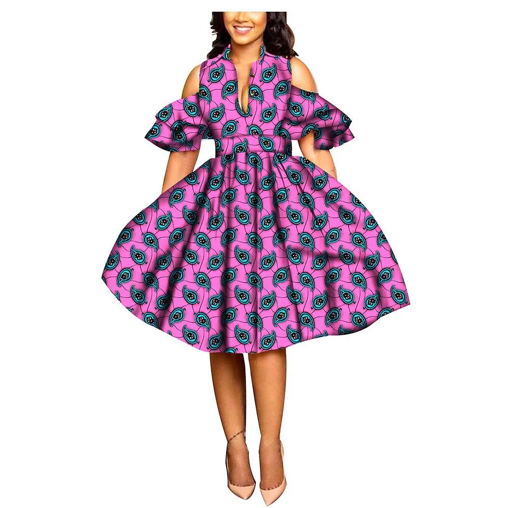 African print dresses for women ankara fabric dashiki dress Petal Sleeve party wedding A-line dress AFRIPRIDE S1825033