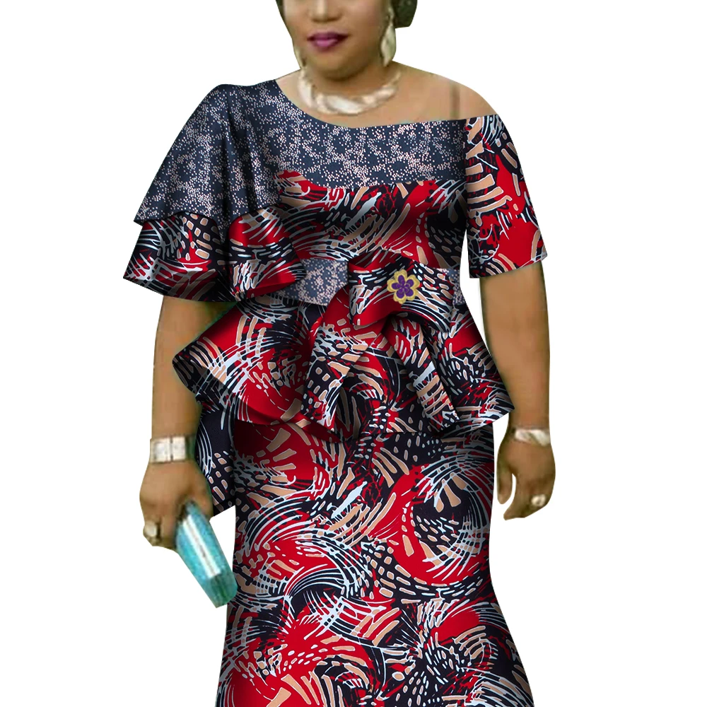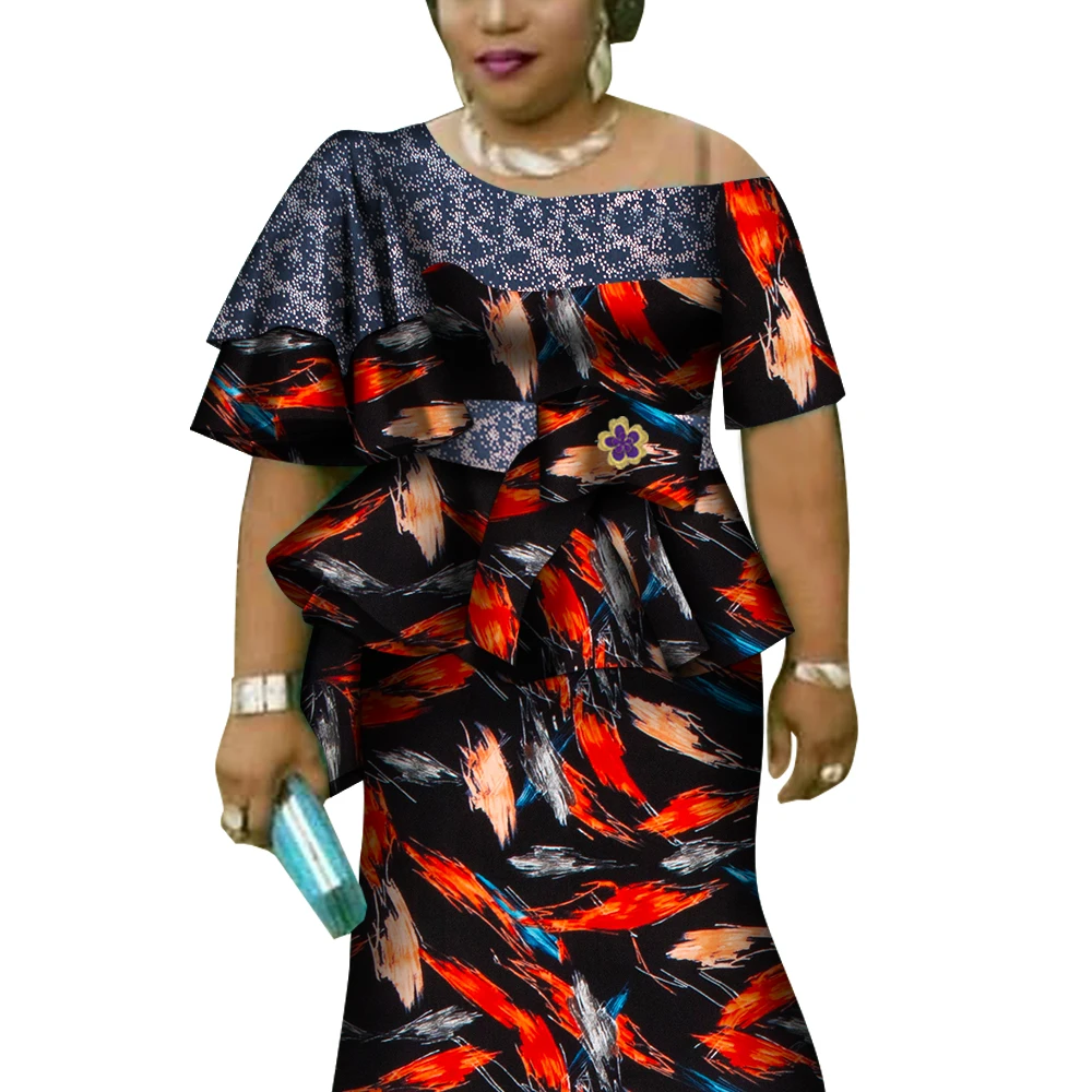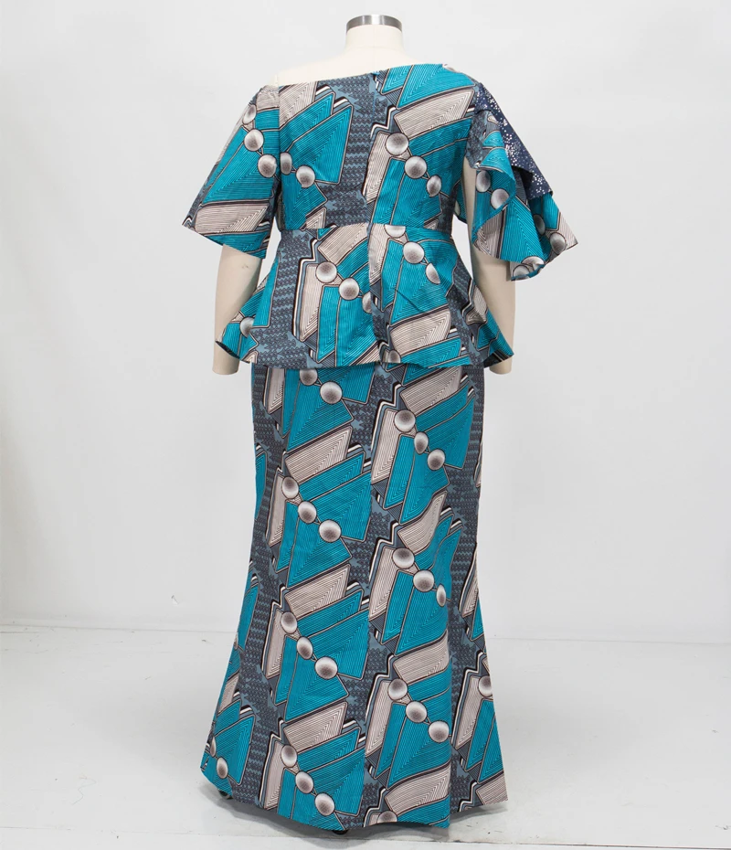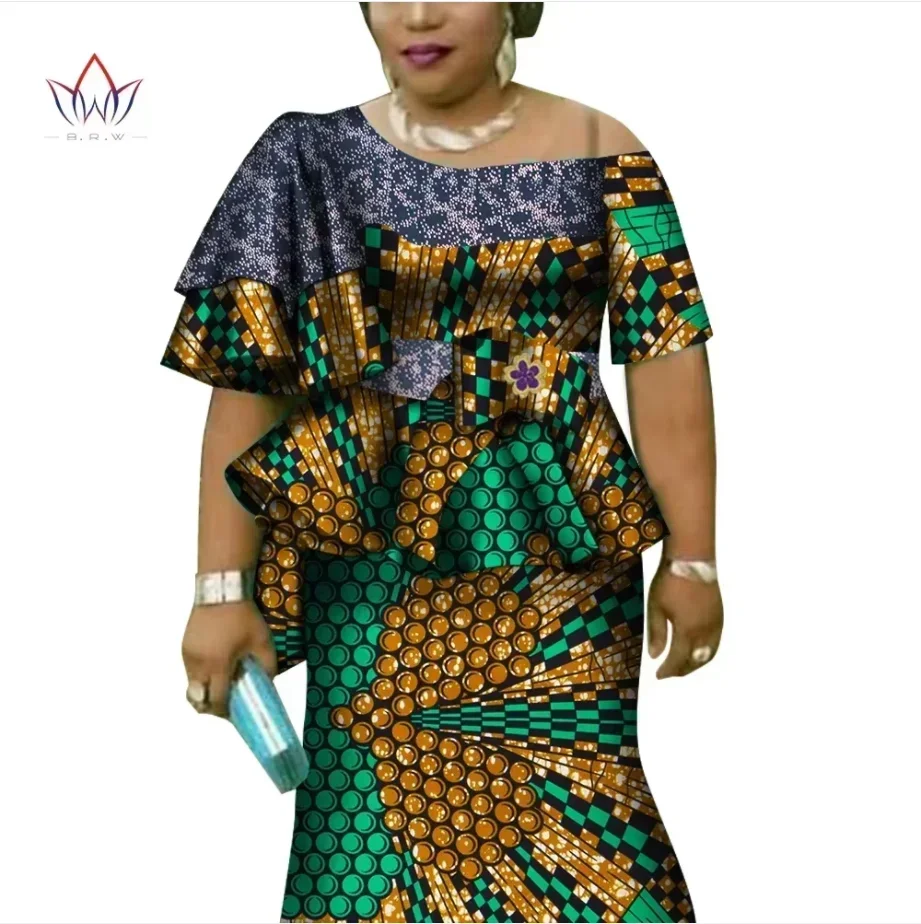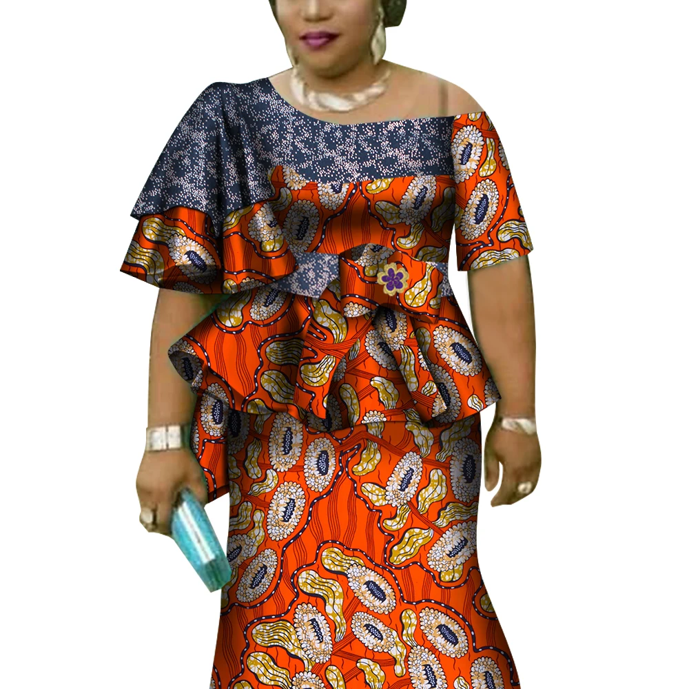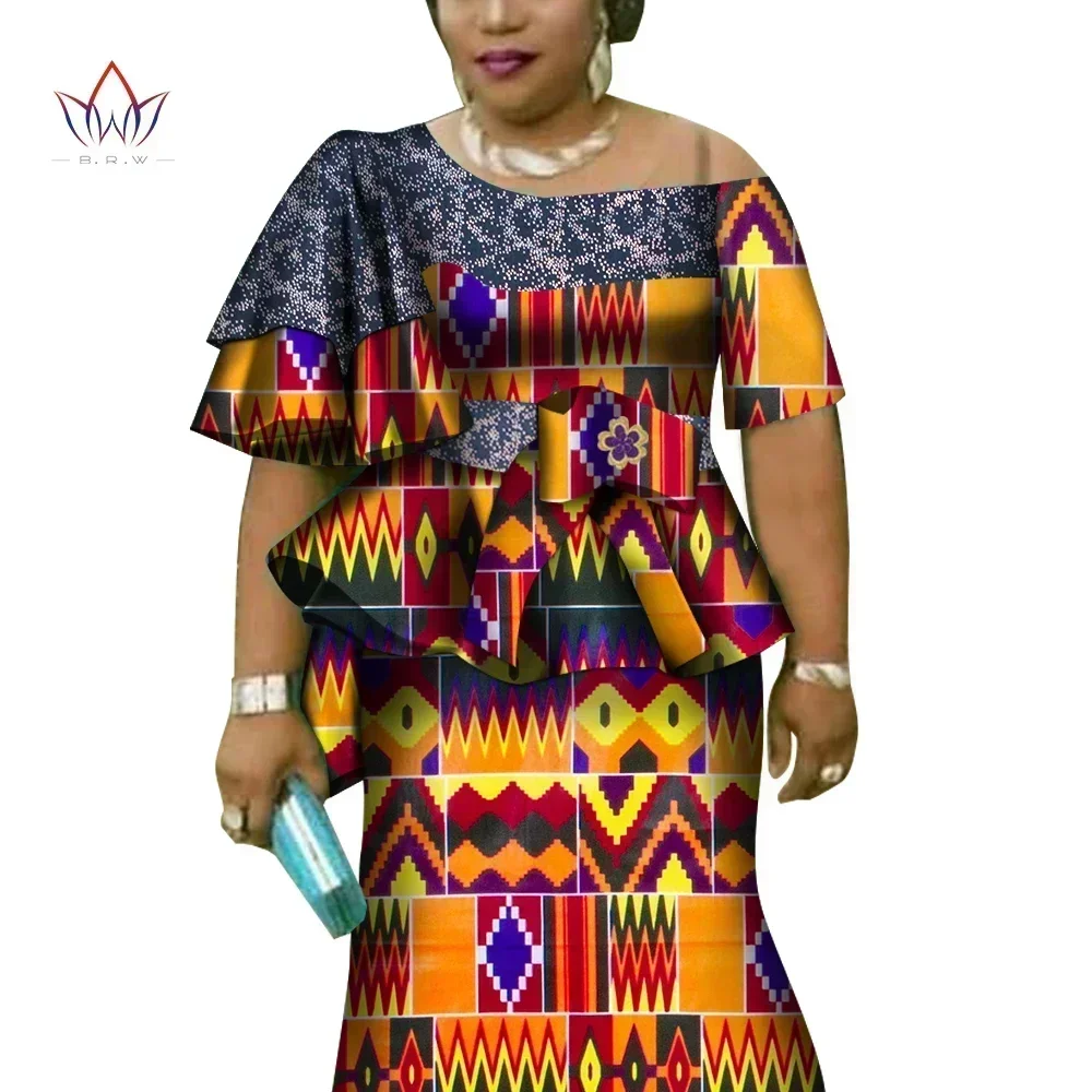 African Ruffles Sleeve Print Tops and Skirt Sets for Women Bazin Riche African Clothing 2 Pieces Customize Skirts Sets WY4392