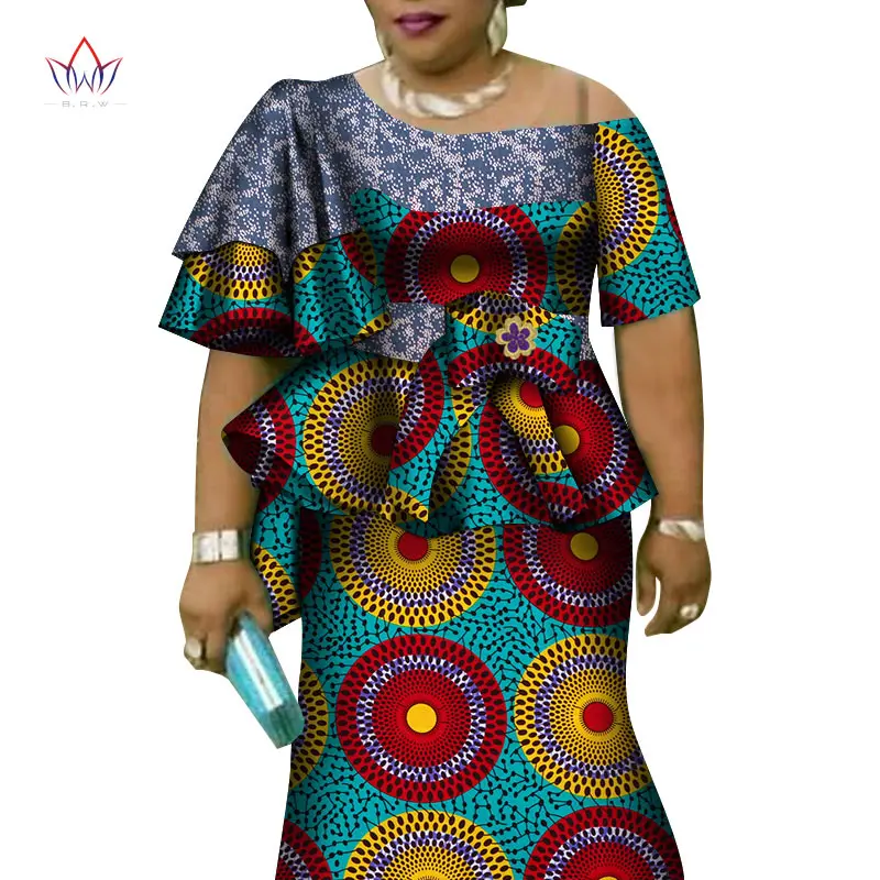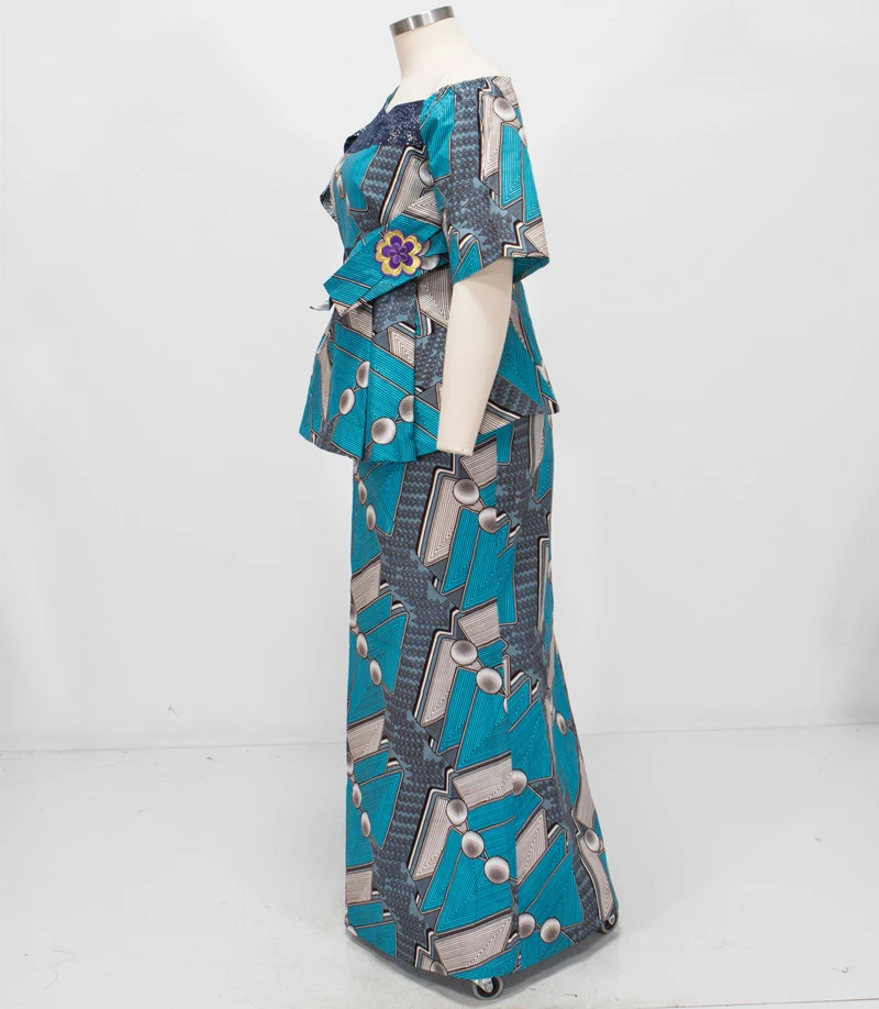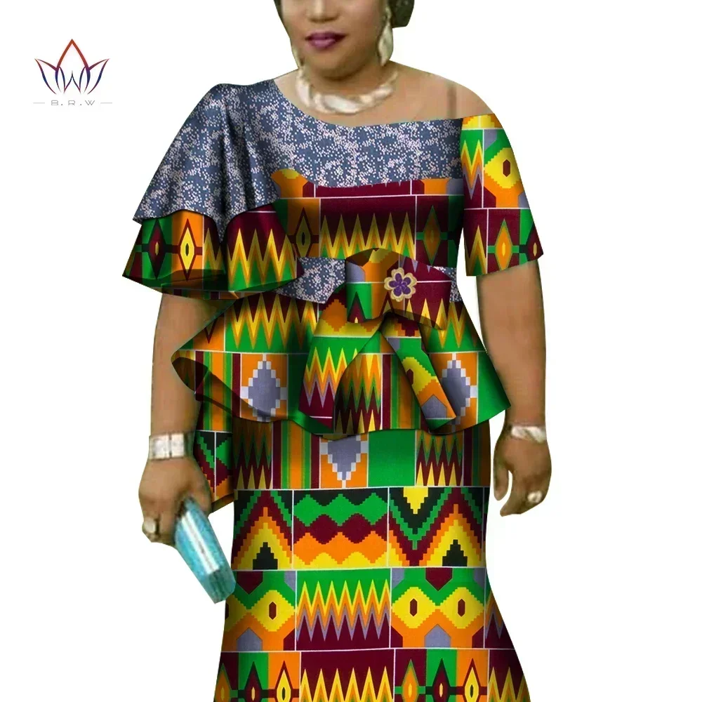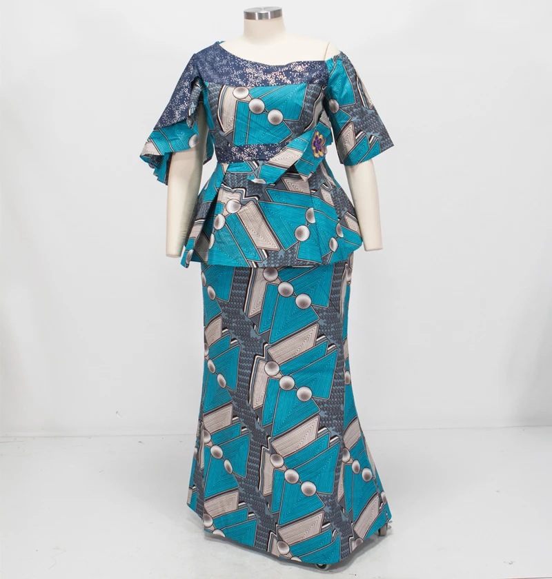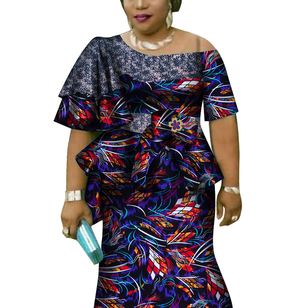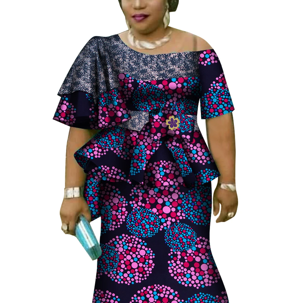 African Ruffles Sleeve Print Tops and Skirt Sets for Women Bazin Riche African Clothing 2 Pieces Customize Skirts Sets WY4392