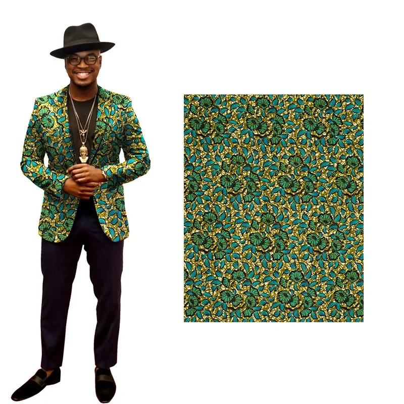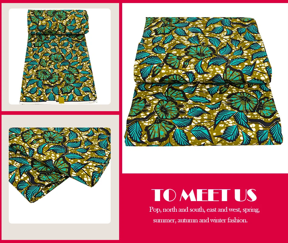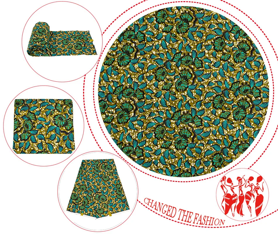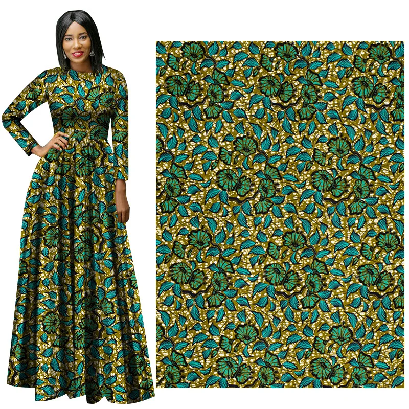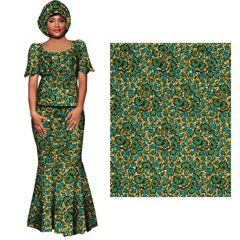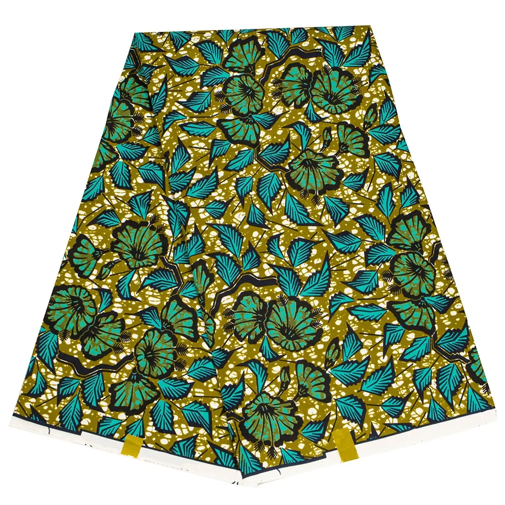 Ankara African Polyester Prints Green Flower Batik Patchwork Fabric Real Cloth Wax High Quality Africa Sewing Material 6yards