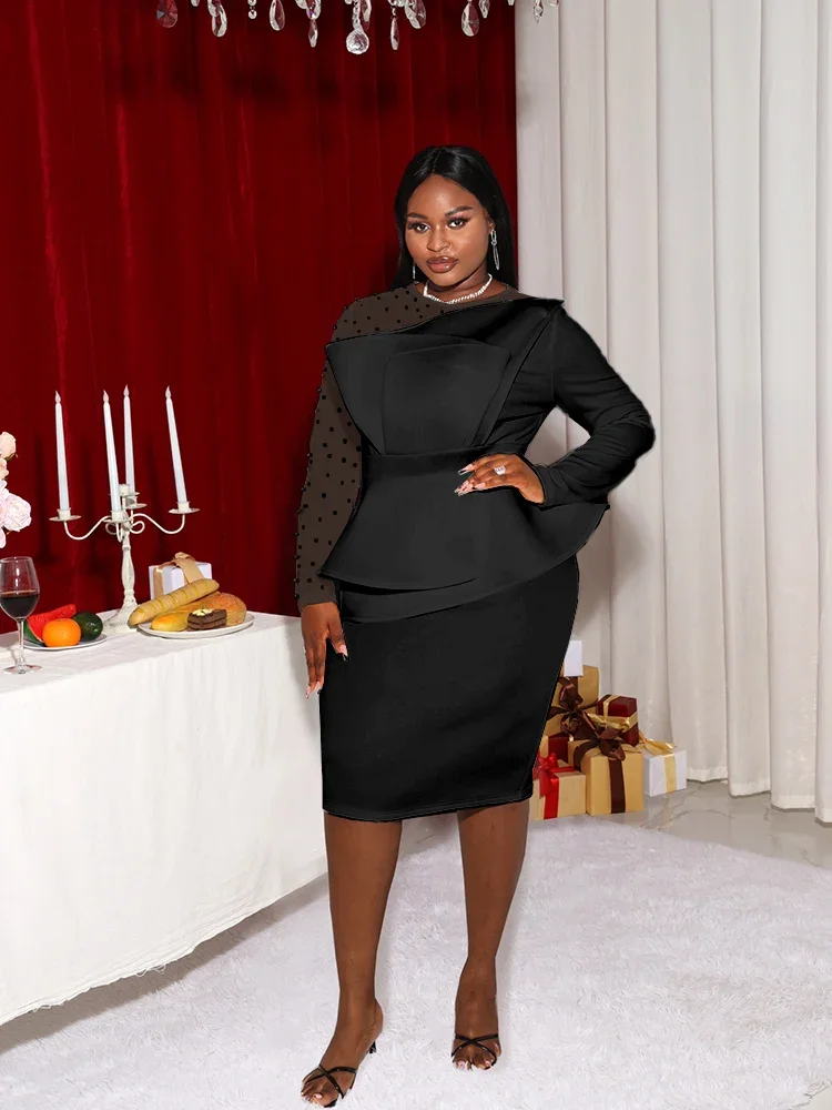 AOMEI Women White Party Dress Sexy Long Sleeve O Neck Beading Mesh Patchwork Peplum Elegant Event Evening Birthday African Gowns