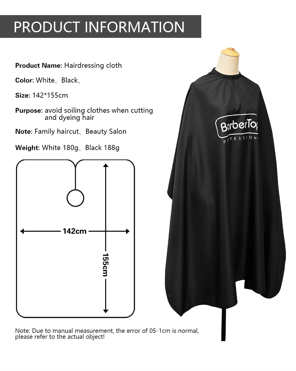 【COMFORTABLE MATERIAL】-Our haircut cape made of light-weight,breathable and anti-static polyester,Anti-stain,water repellant, durable fabric,which can effective keep you dry and clean,Enjoy a relaxing and enjoyable haircut experience.