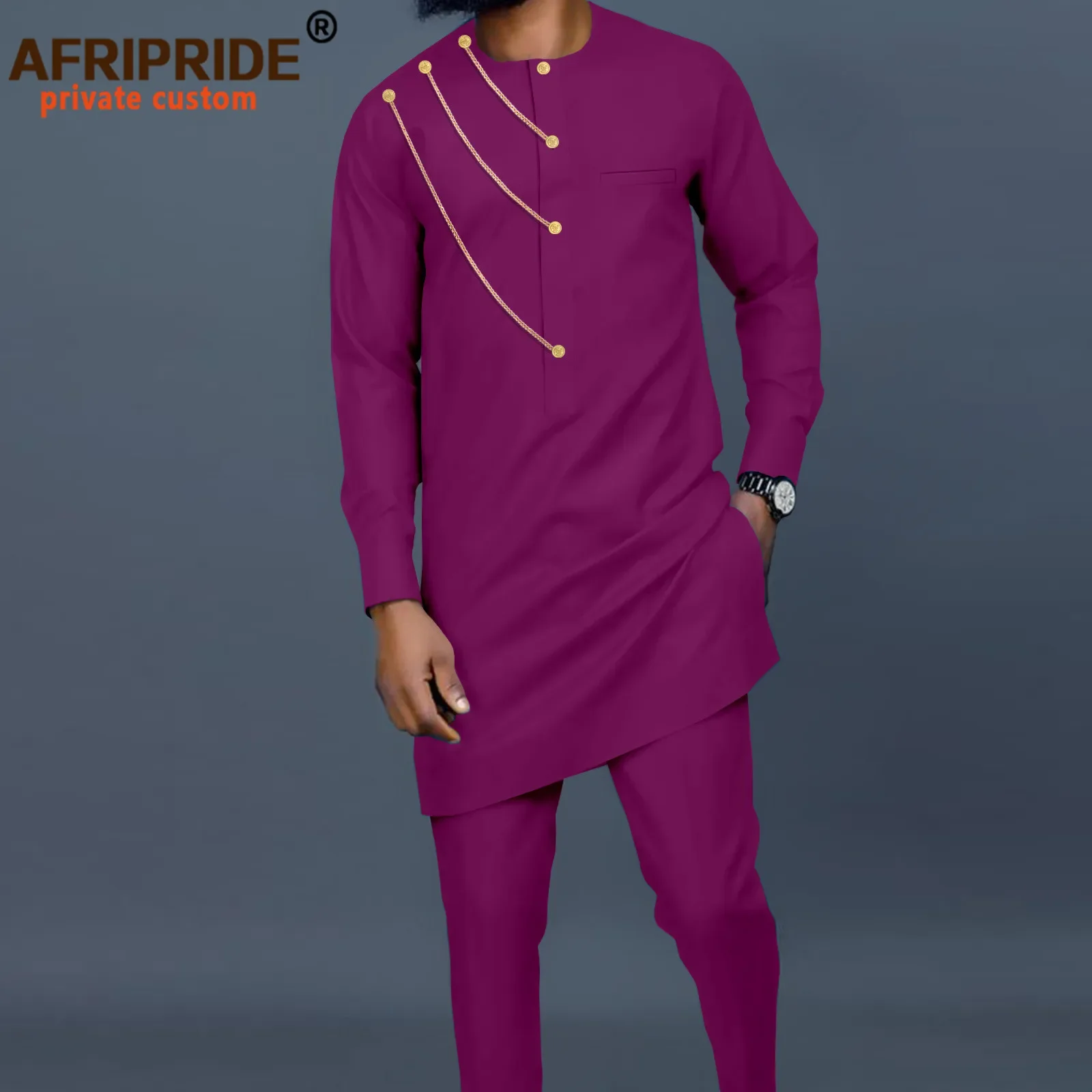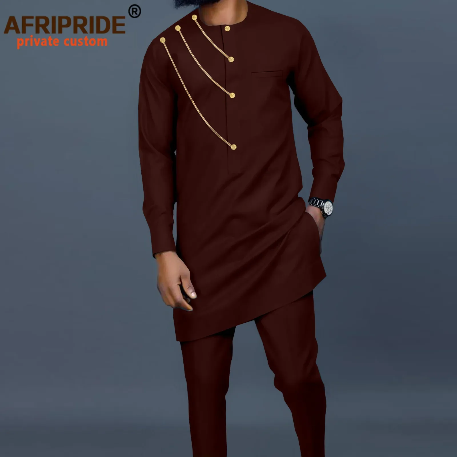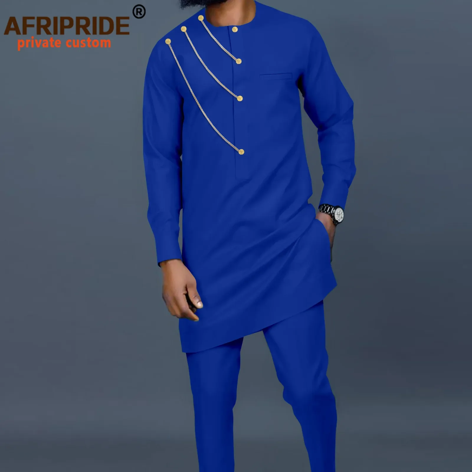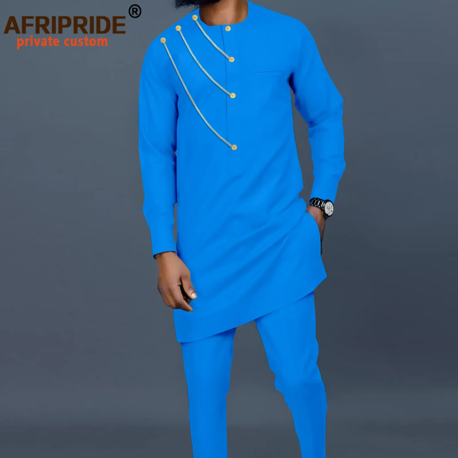 Bazin Riche African Men Clothing Single Breasted Jacket with Chain and Down 2 Piece Set Kaftan Blazer Outwear Plus Size A2216020