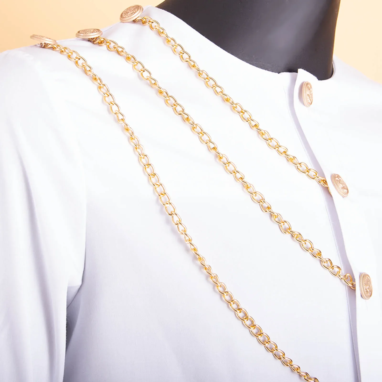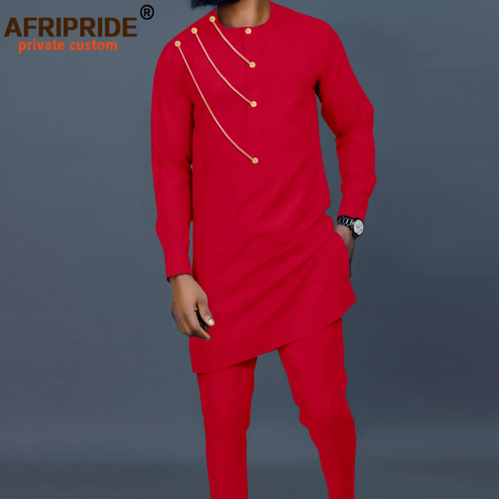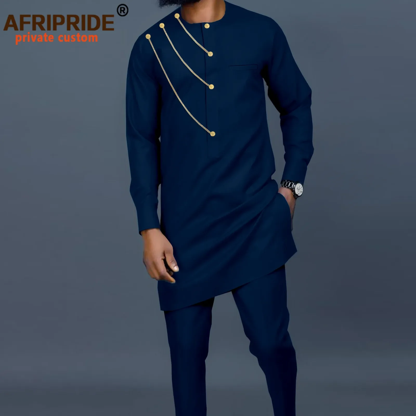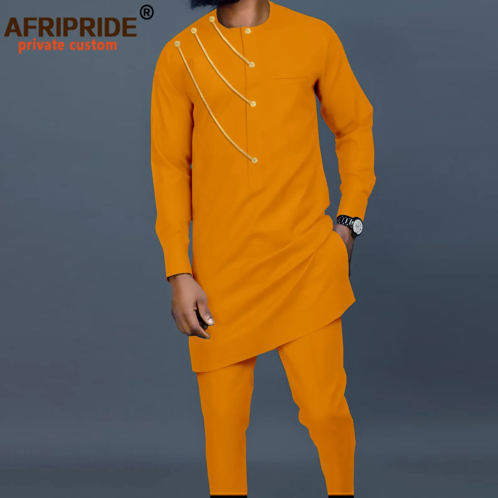 Bazin Riche African Men Clothing Single Breasted Jacket with Chain and Down 2 Piece Set Kaftan Blazer Outwear Plus Size A2216020