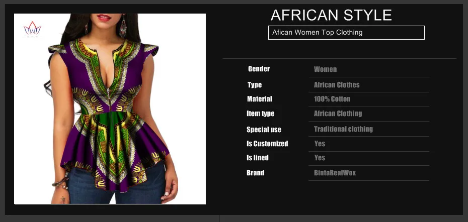 BRW Africa Style Women Modern Fashions Womens Tops Dashiki African Print Tops Shirt Plus Size M-6XL Women Clothing WY2556
