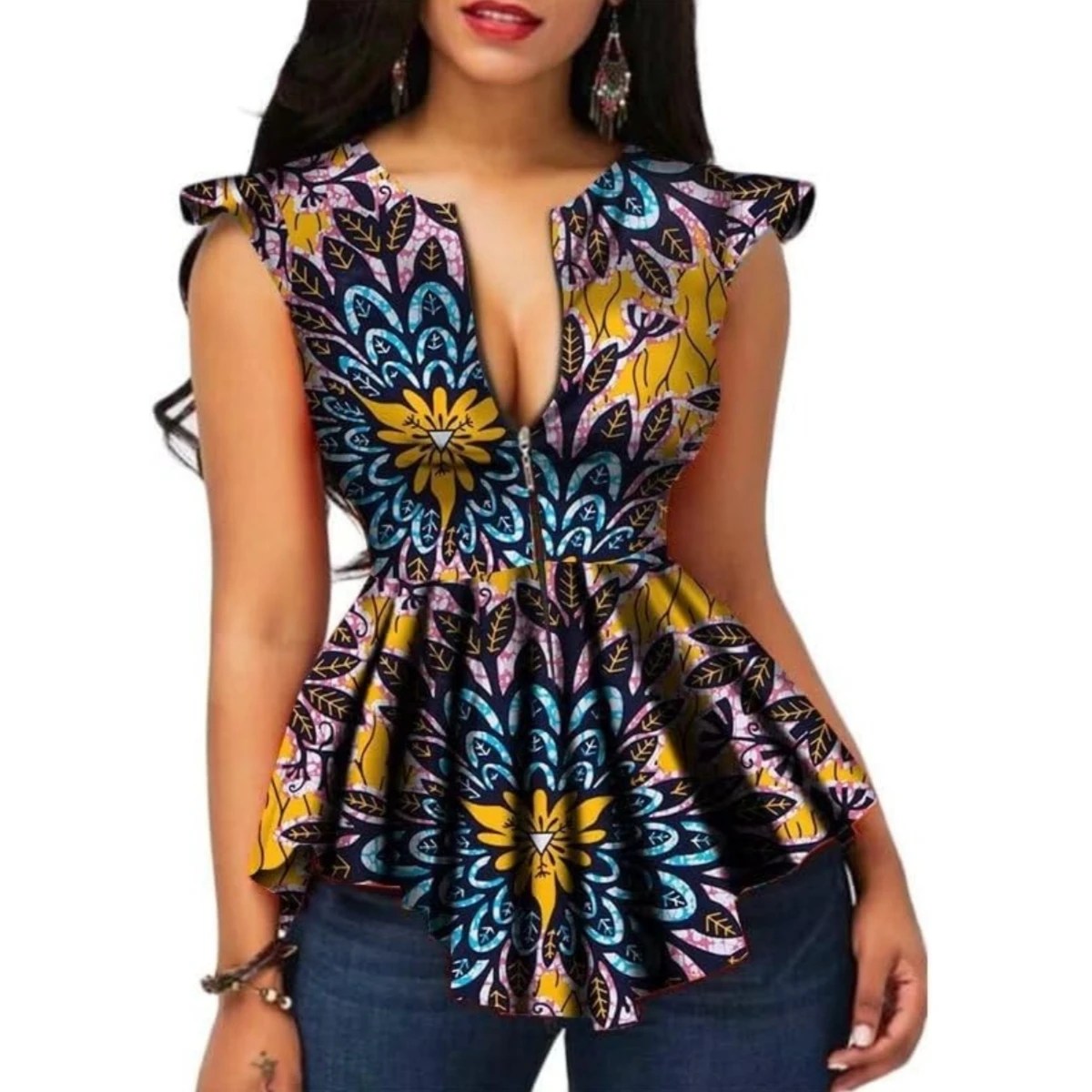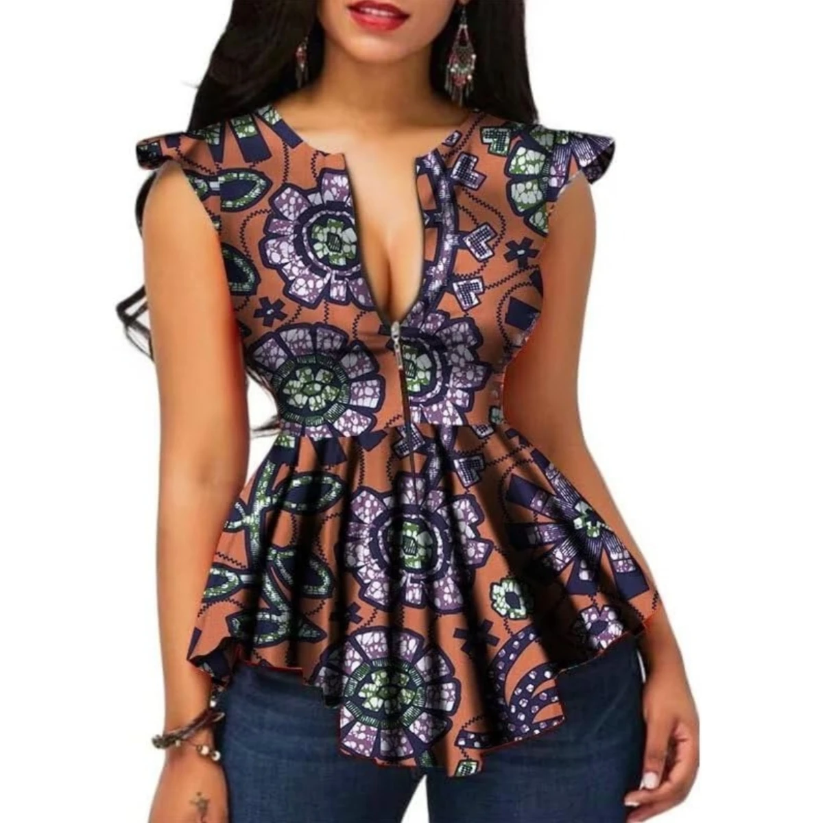 BRW African Women Tees Modern Fashions Womens Crop Tops Sleeveless Africa Print Tops Shirt Plus Size M-6XL Women Clothing WY1443