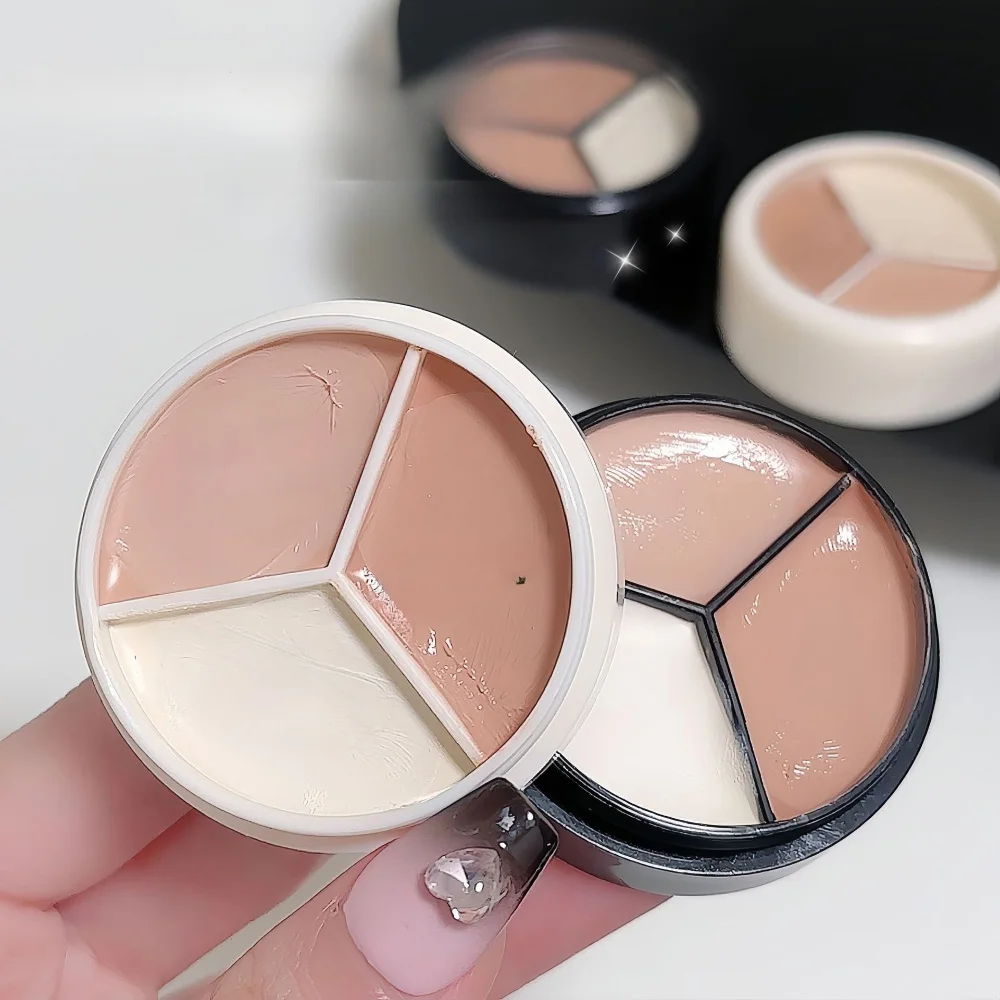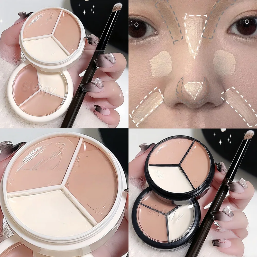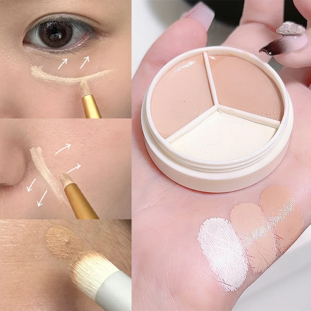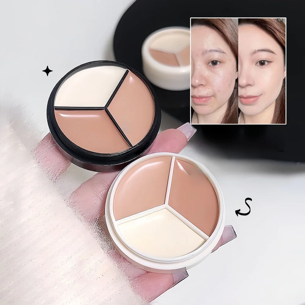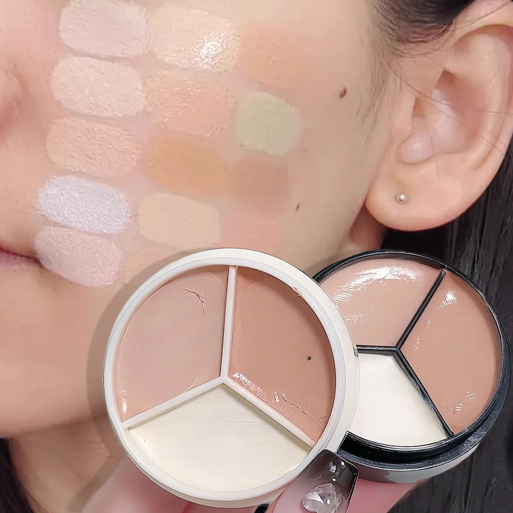 Creamy 3-in-1 Concealer Palette Full Coverage Oil-Control Long-Lasting for Dark Spots Redness & Pores Primer & Contour Cosmetic
