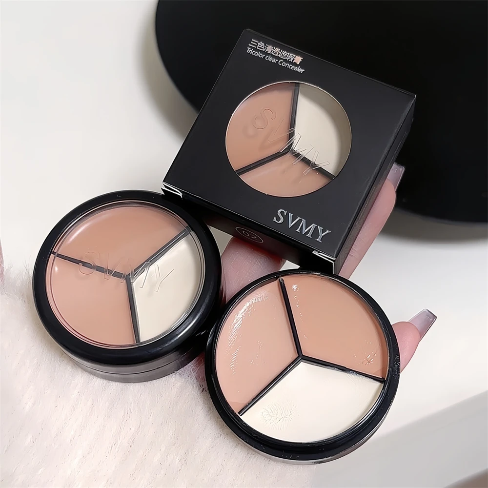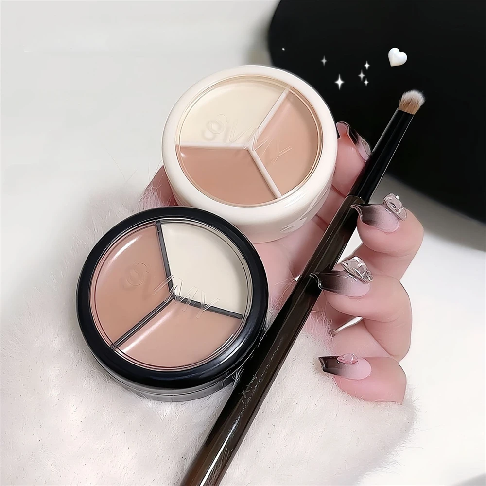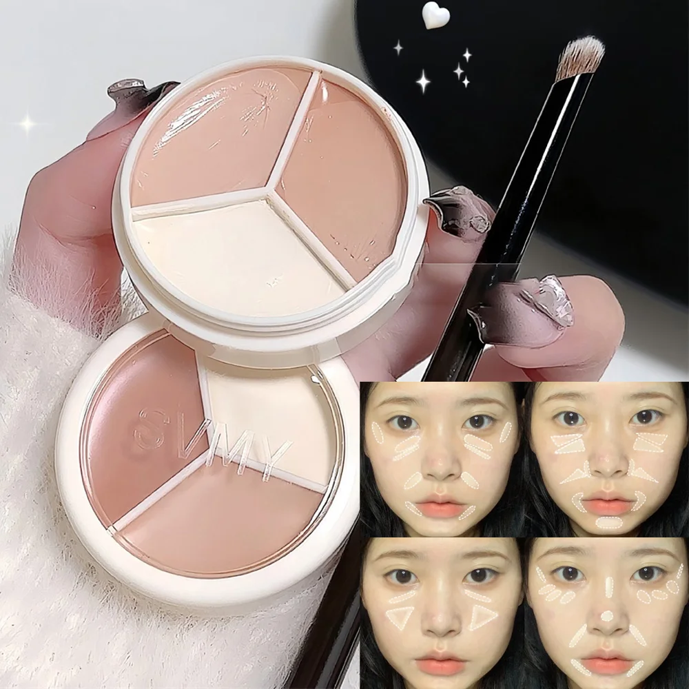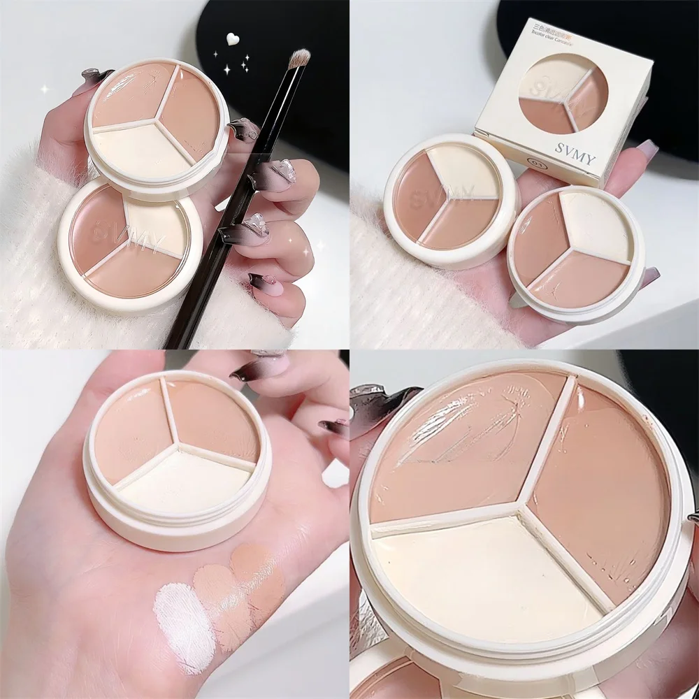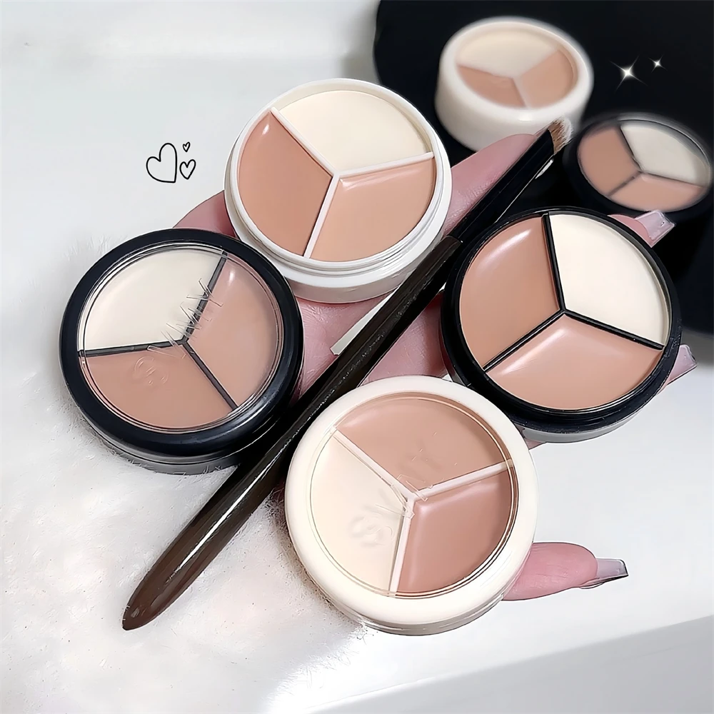 Creamy 3-in-1 Concealer Palette Full Coverage Oil-Control Long-Lasting for Dark Spots Redness & Pores Primer & Contour Cosmetic