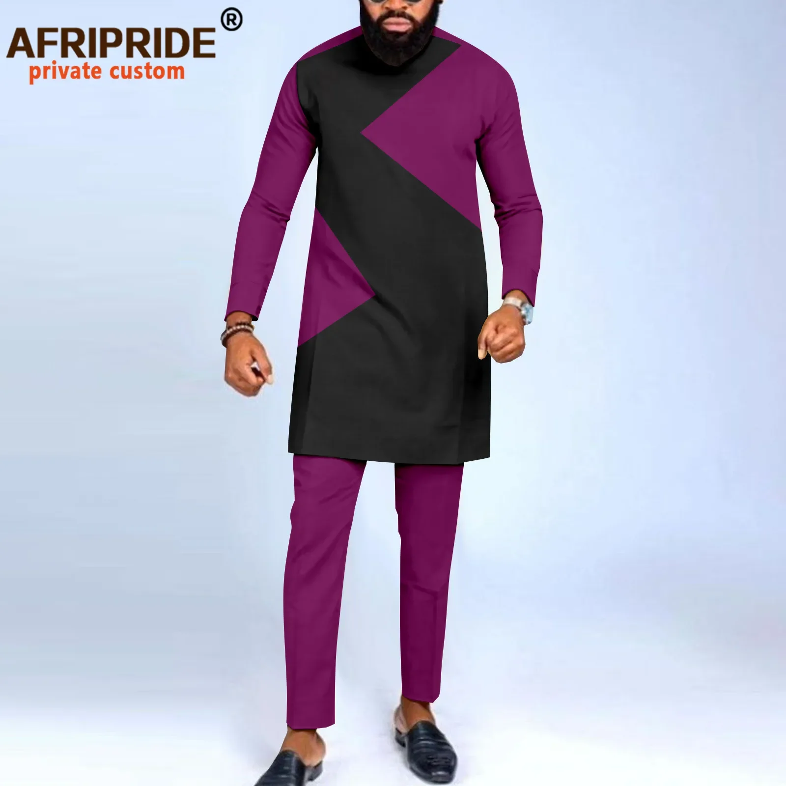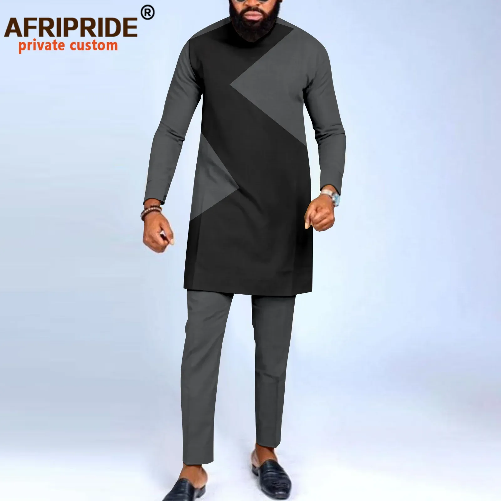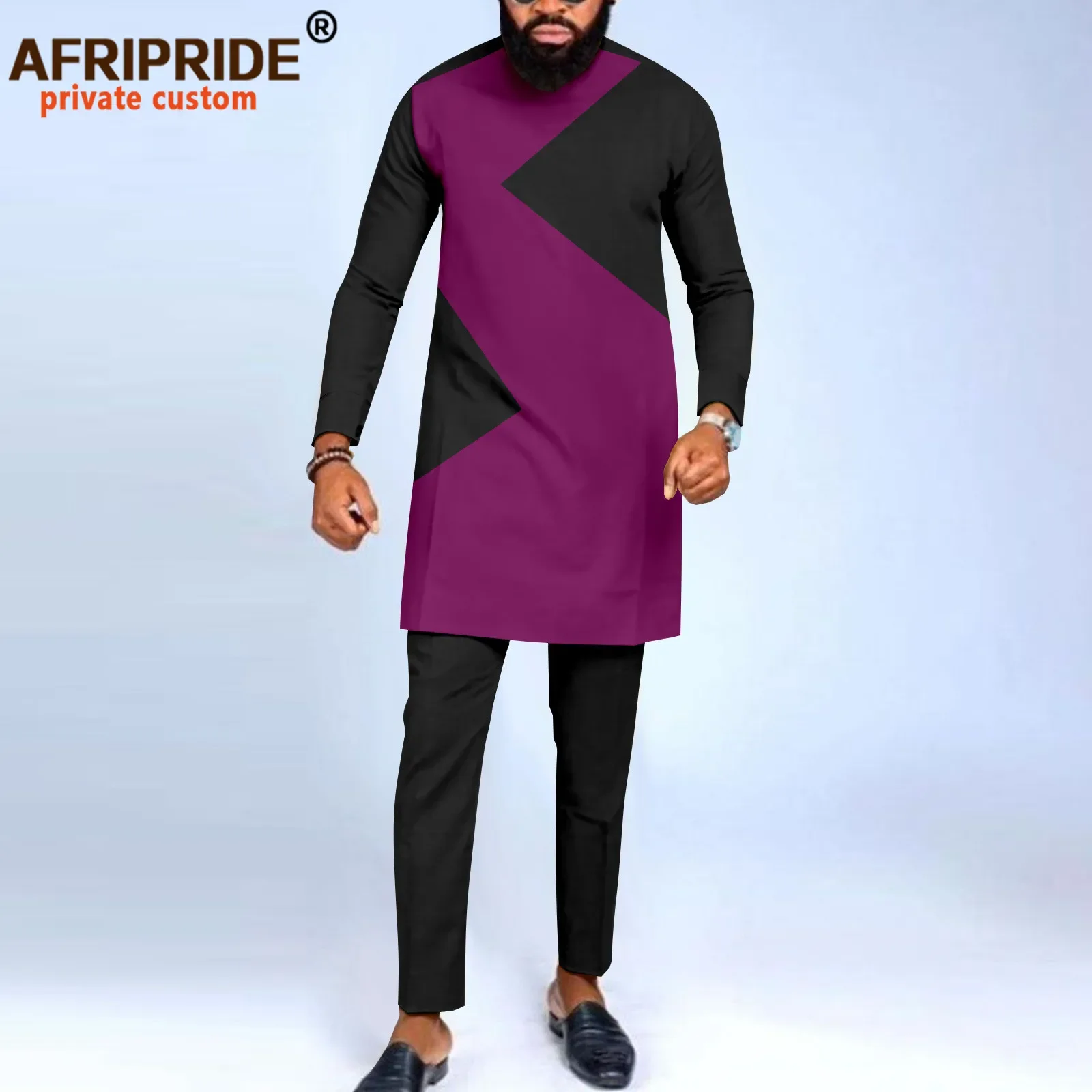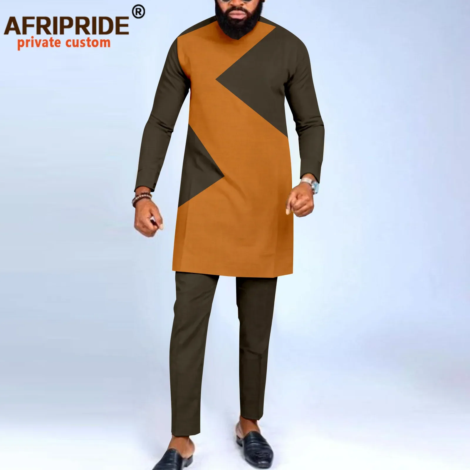 Dashiki Men African Clothes Plus Size Shirts and Pants 2 Piece Set Ankara Tops Tribal Outfits Traditional Wear A2216072