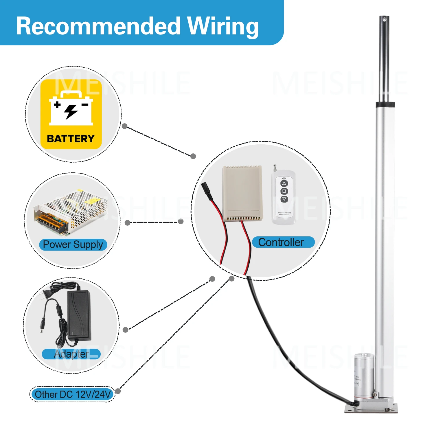 - The linear actuator is driven by a DC motor with a screw drive. The telescopic rod can only be retracted without rotation.