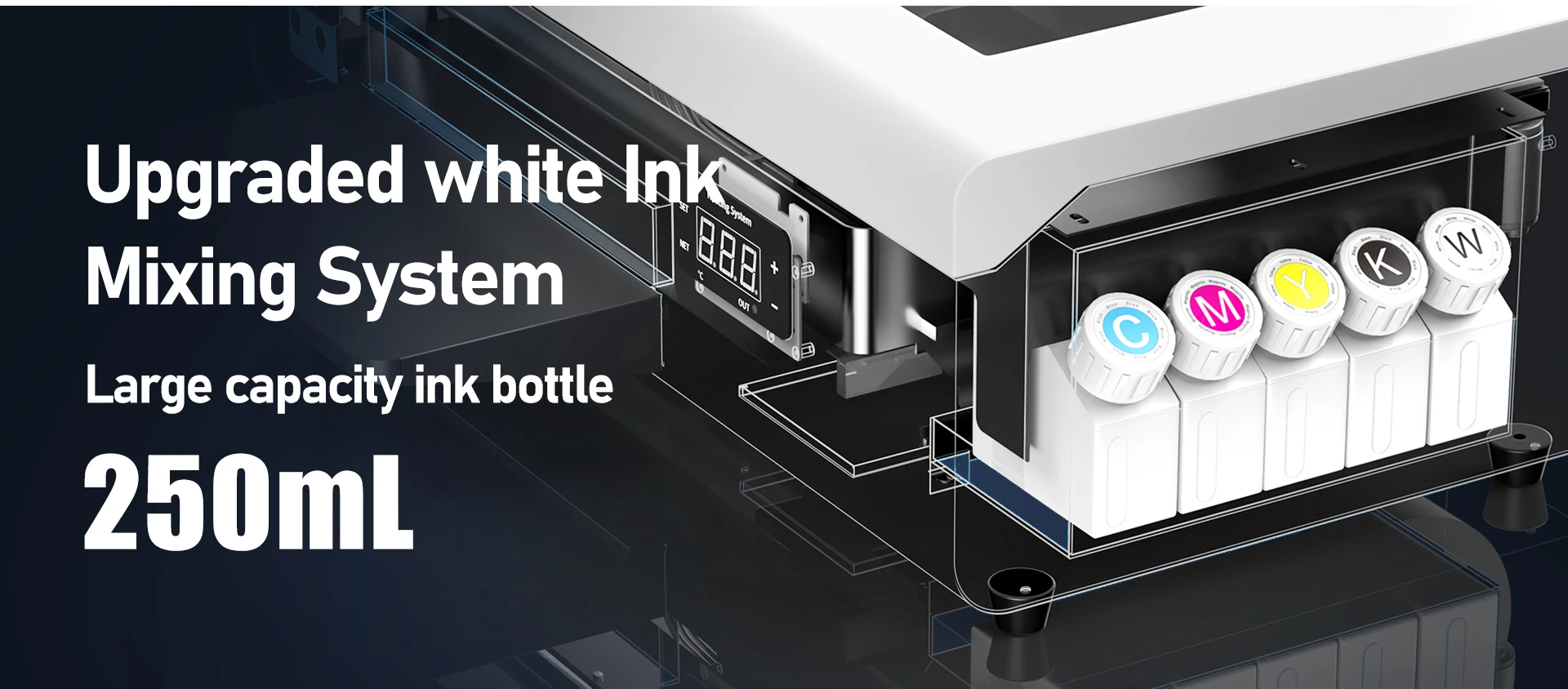 White ink stirring system:Prevents ink from settling.