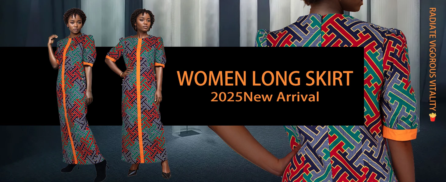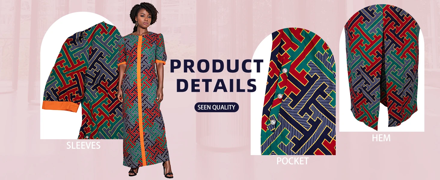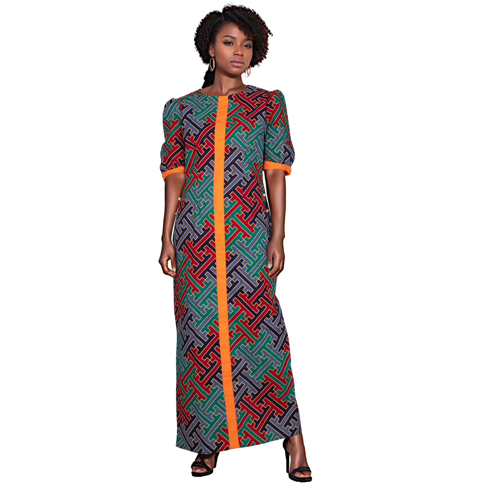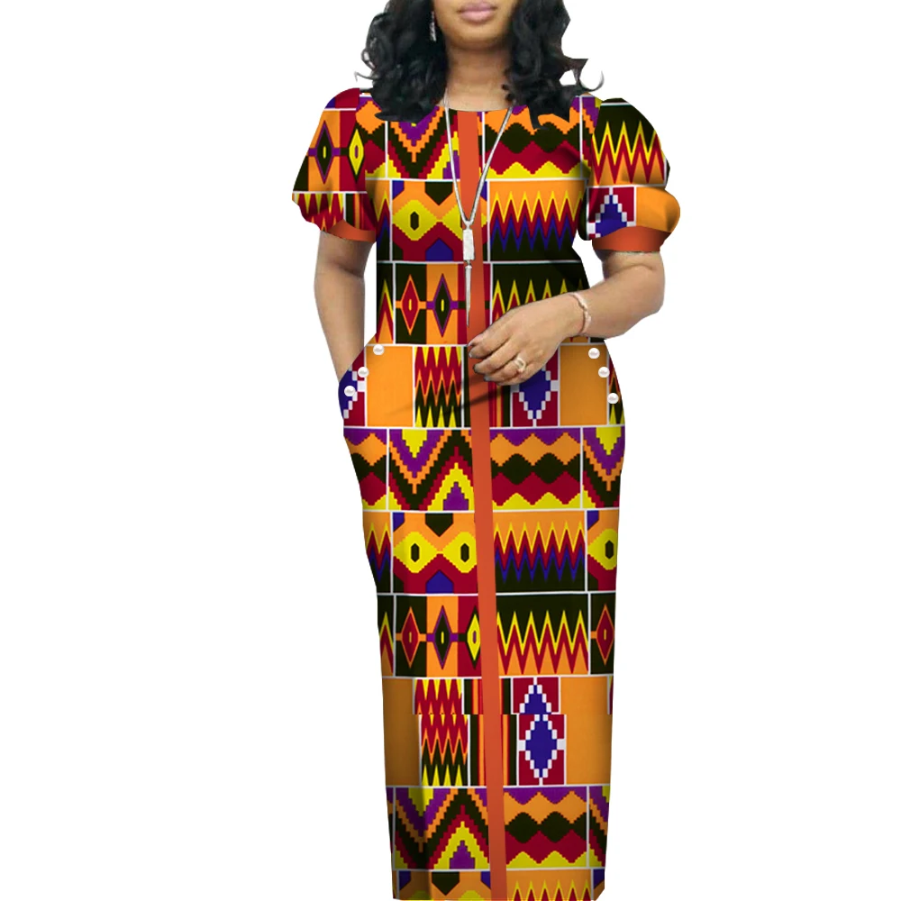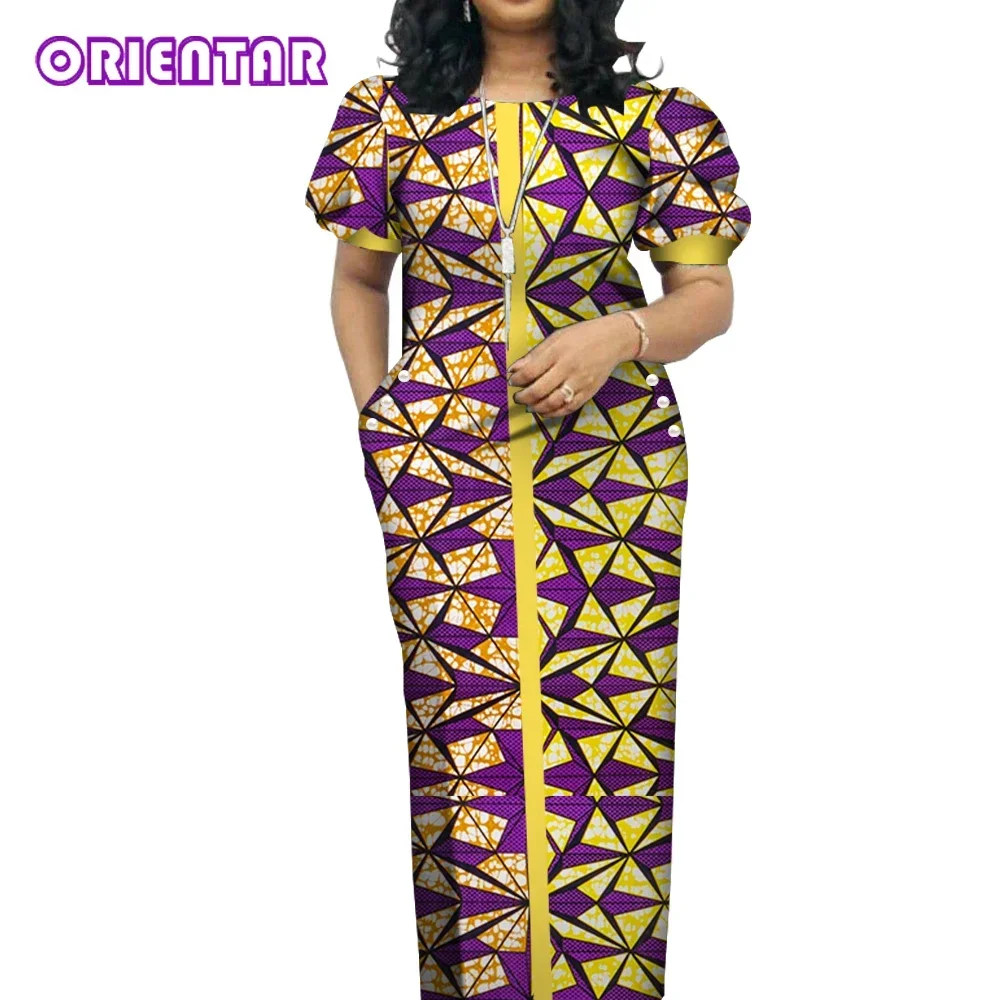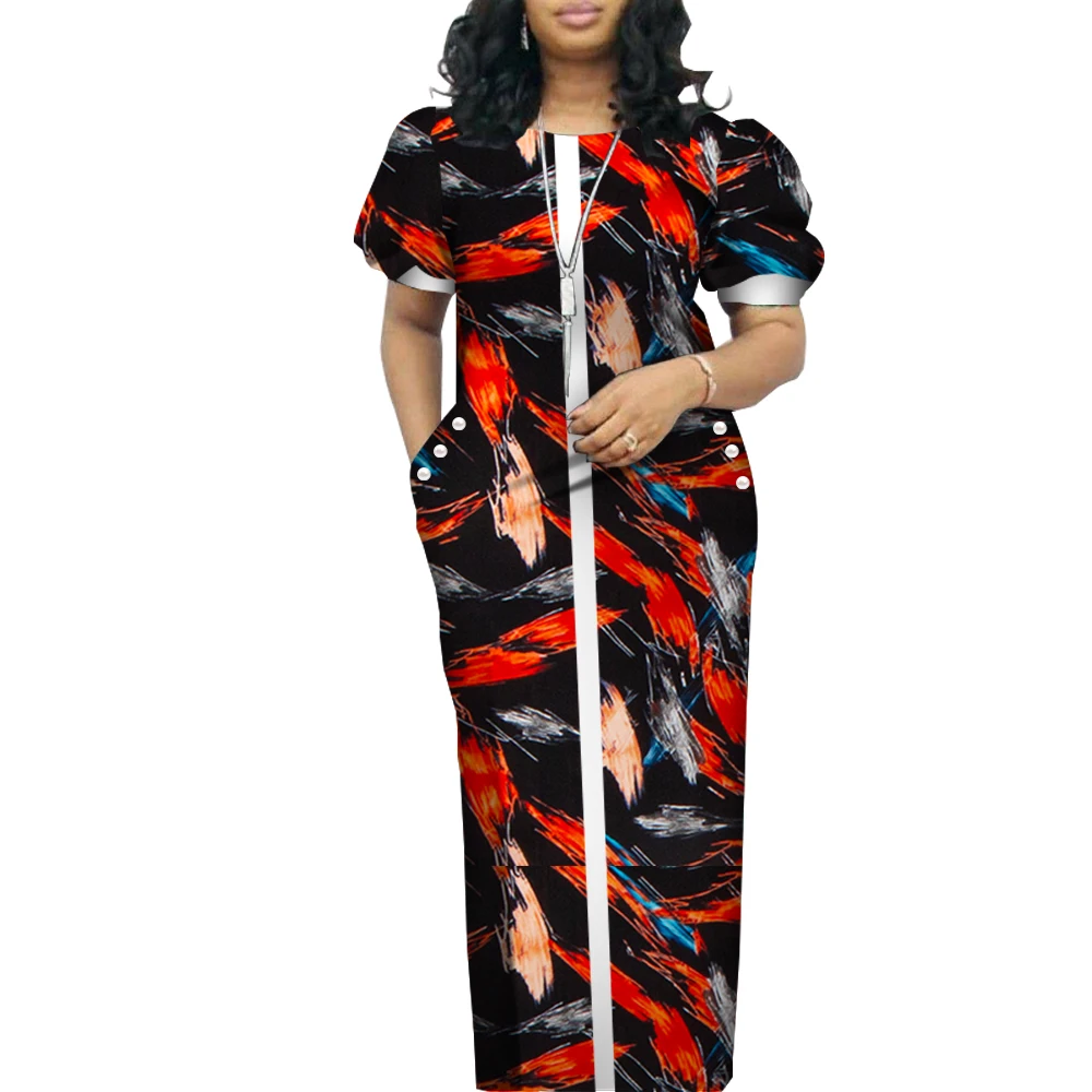 Elegant Women African Dress O-neck Short Puff Sleeve Long Maxi Dresses African Print Clothing Bazin Riche Plus Size Dress WY4542