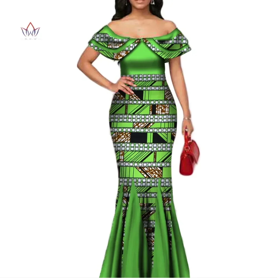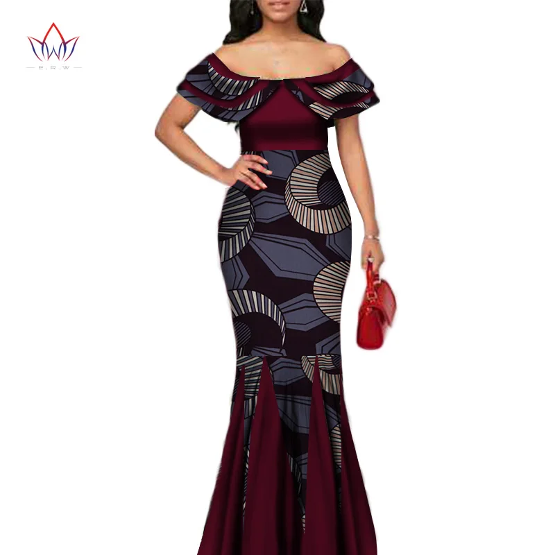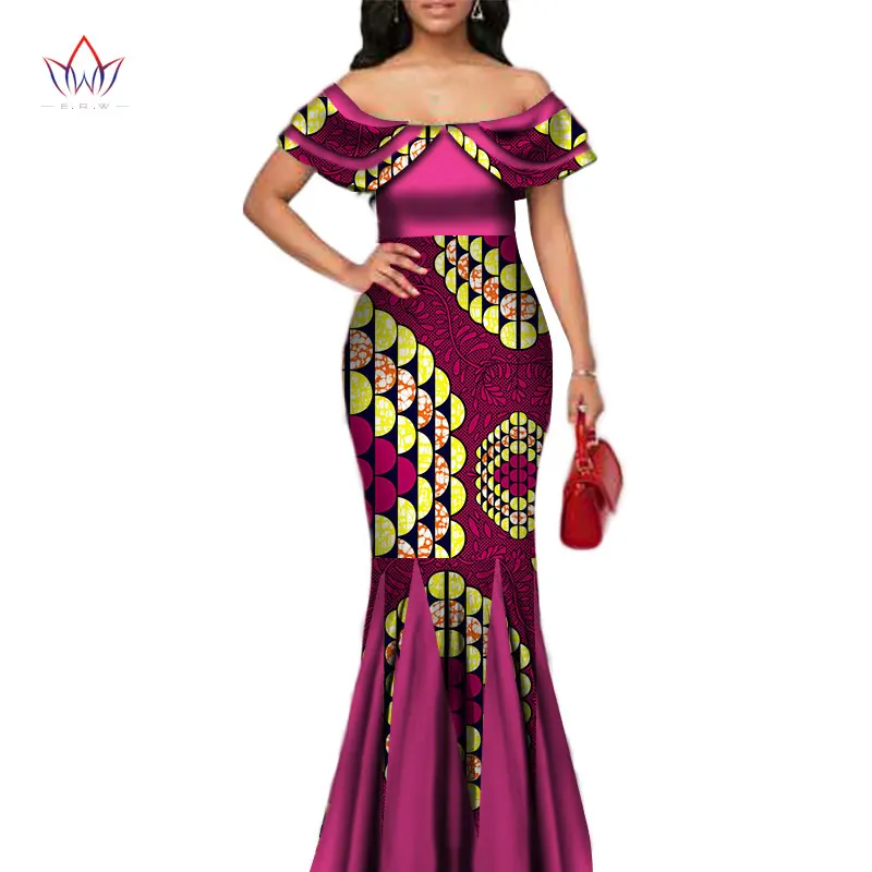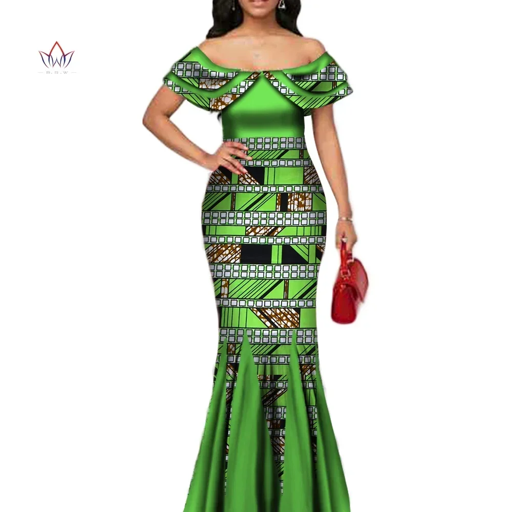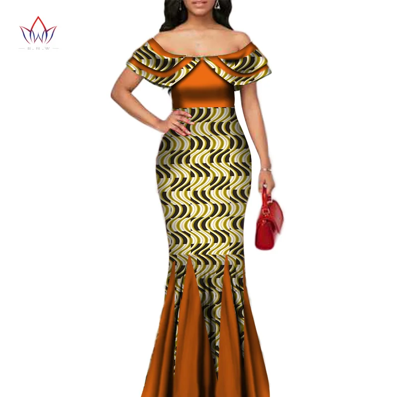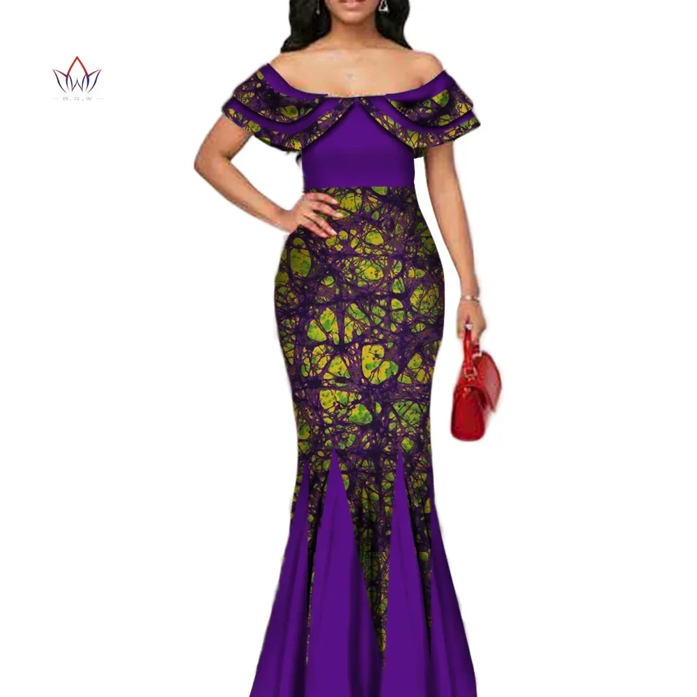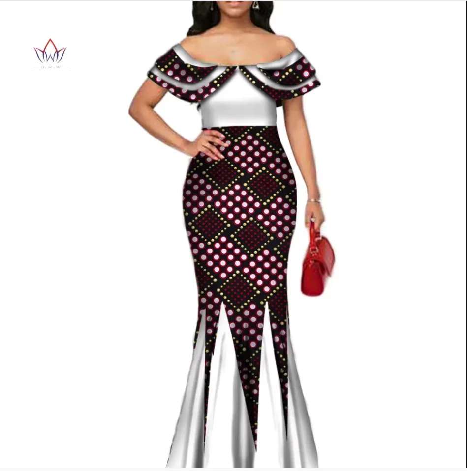 Fashion African Print Long Mermaid Dress for Women Bazin Rich Patchwork Peter Pan Colla Dresses African Design Clothing WY3272