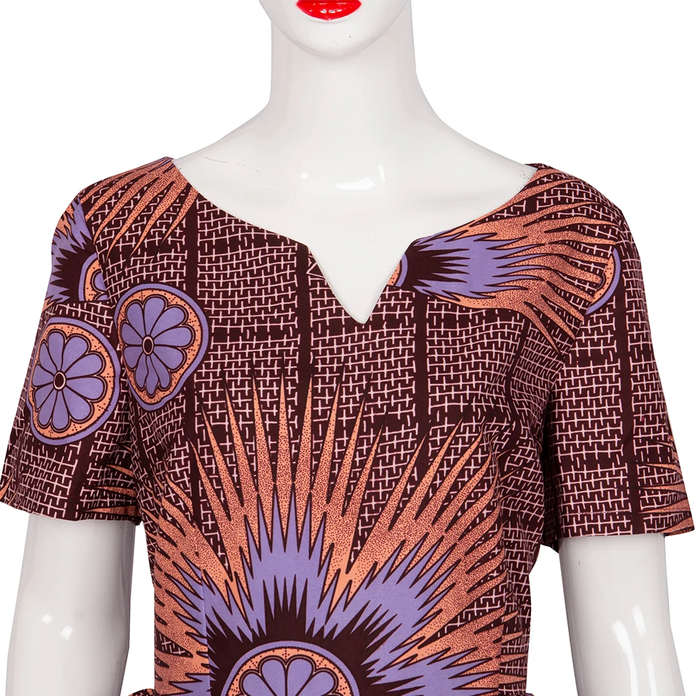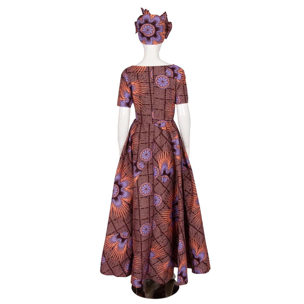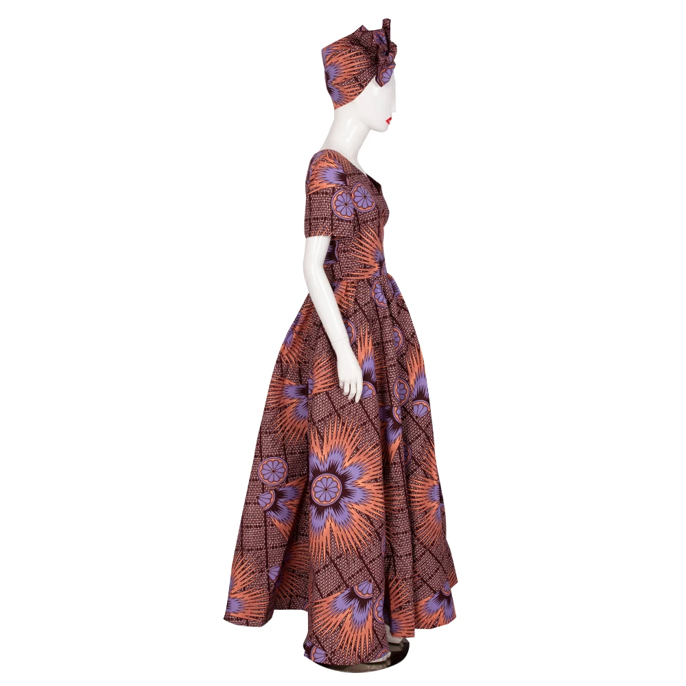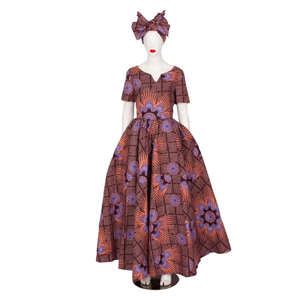 Fashion Women Clothes African Dresses Ankara Print V-neck Maix Long Dresses with Head Scarf Dashiki Women Outfit WY749